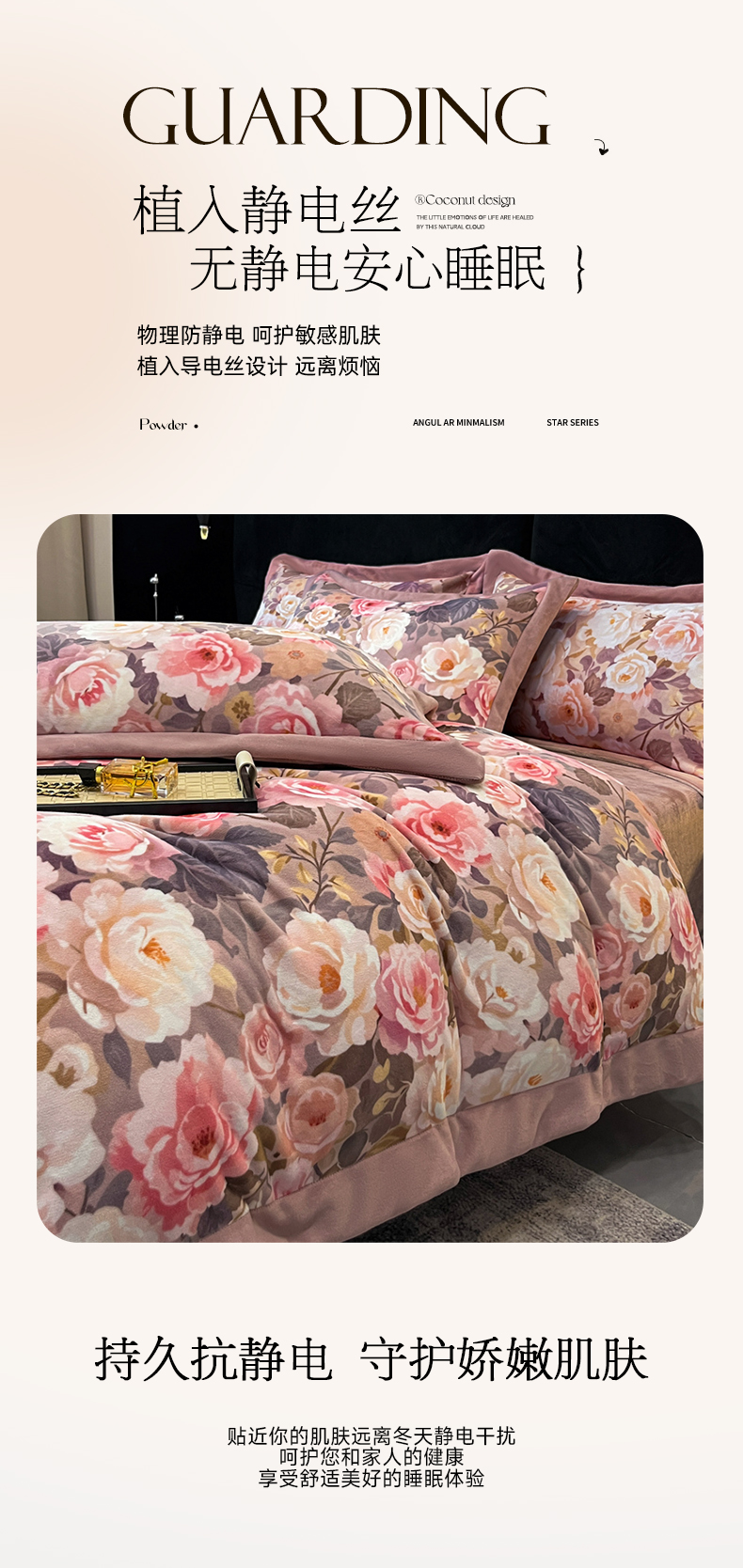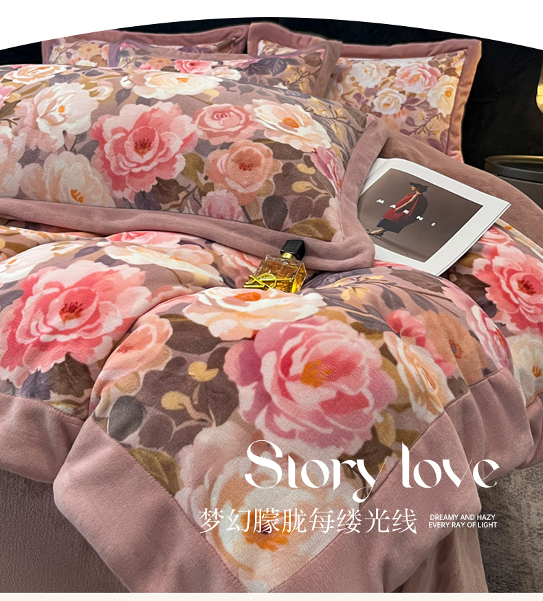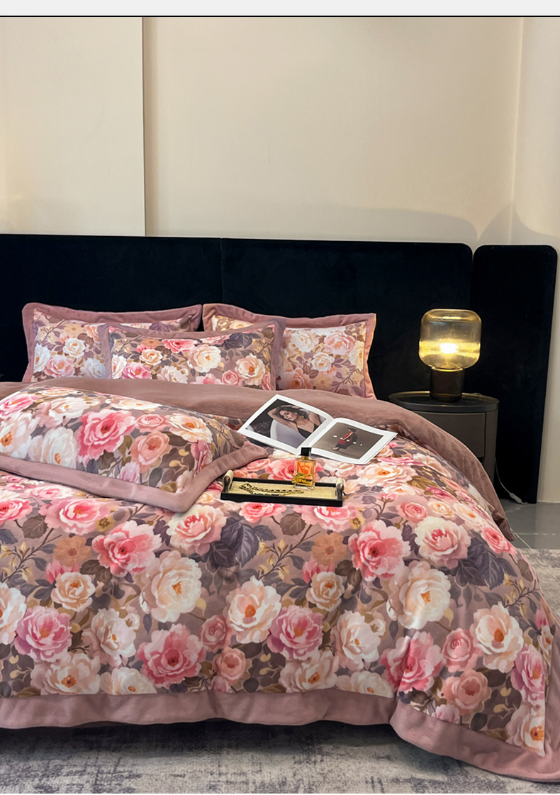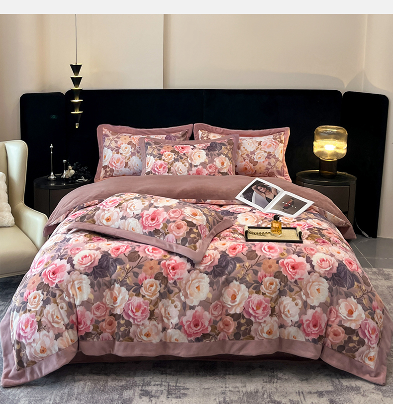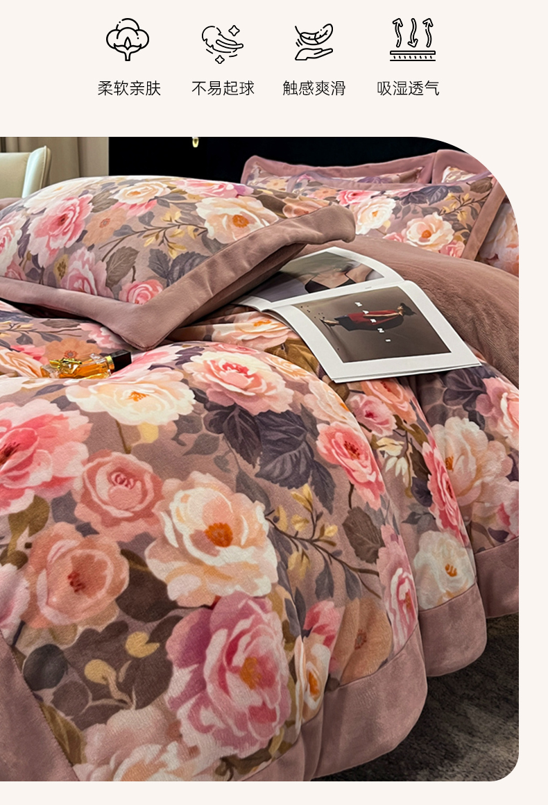 诺梵家纺 2025新款8斤加厚保暖金貂绒牛奶绒印花四件套 花枝如梦,花枝如梦