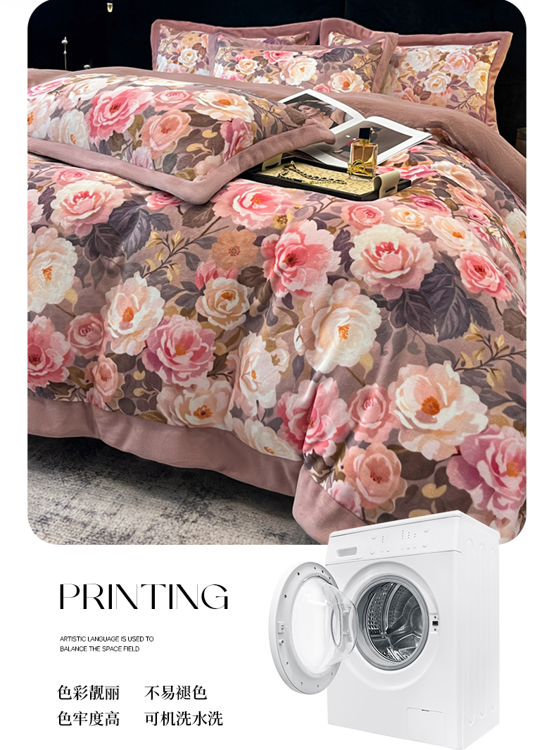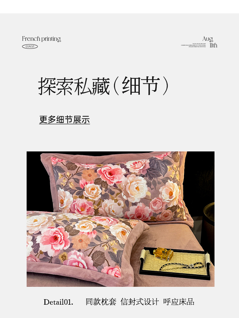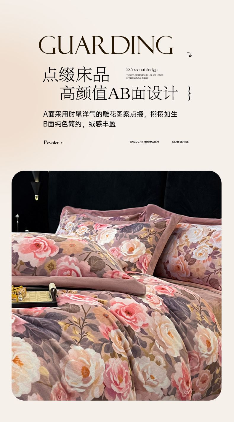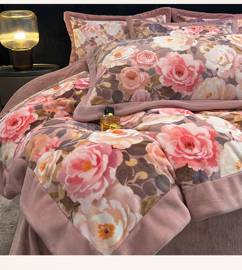 诺梵家纺 2025新款8斤加厚保暖金貂绒牛奶绒印花四件套 花枝如梦,花枝如梦