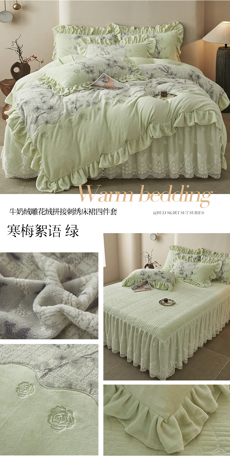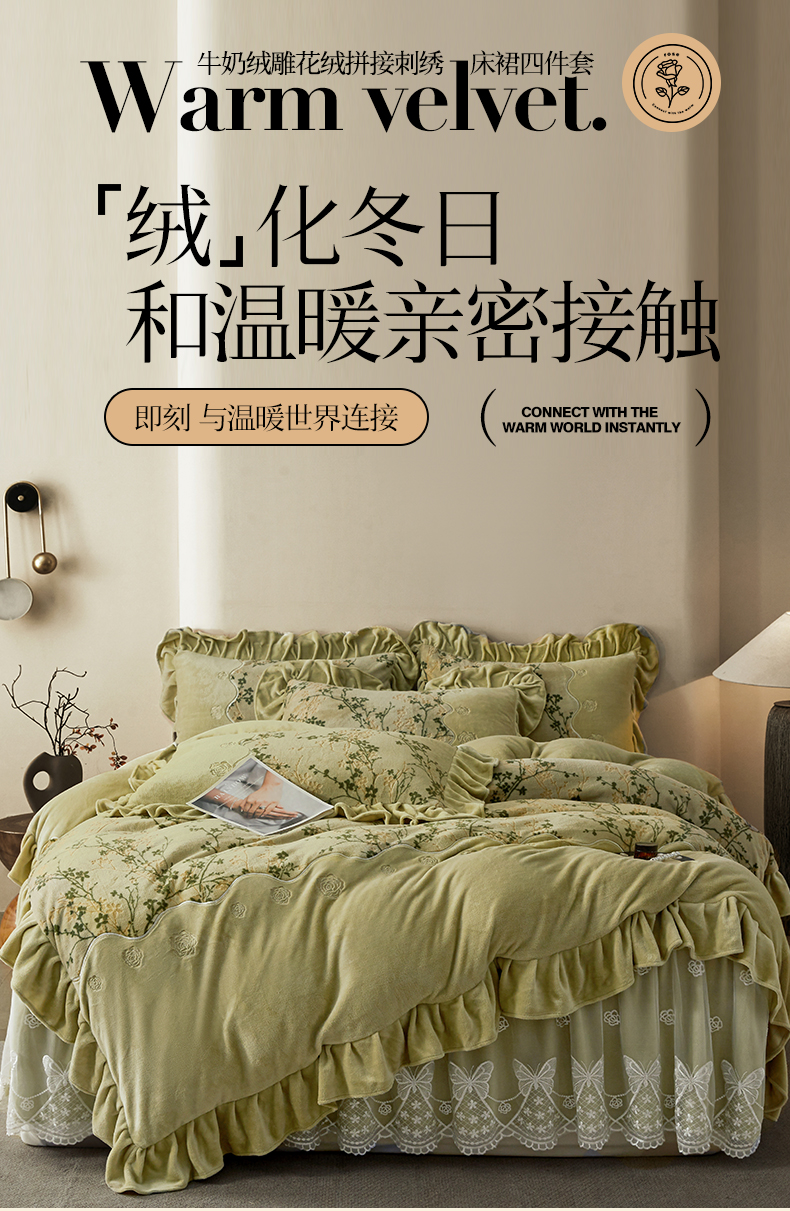 (总)宜凡家纺 2025新款兔绒提花牛奶绒夹棉床裙四件套,爱心 少女粉,爱心 粉紫,爱心 驼色,蝶舞 大红,蝶舞 米色,蝶舞 浅紫,蝶舞 玉色,简爱 苍青,简爱 豆沙紫,简爱 玉色,樱桃 苍青,樱桃 豆沙紫,樱桃 奶油白