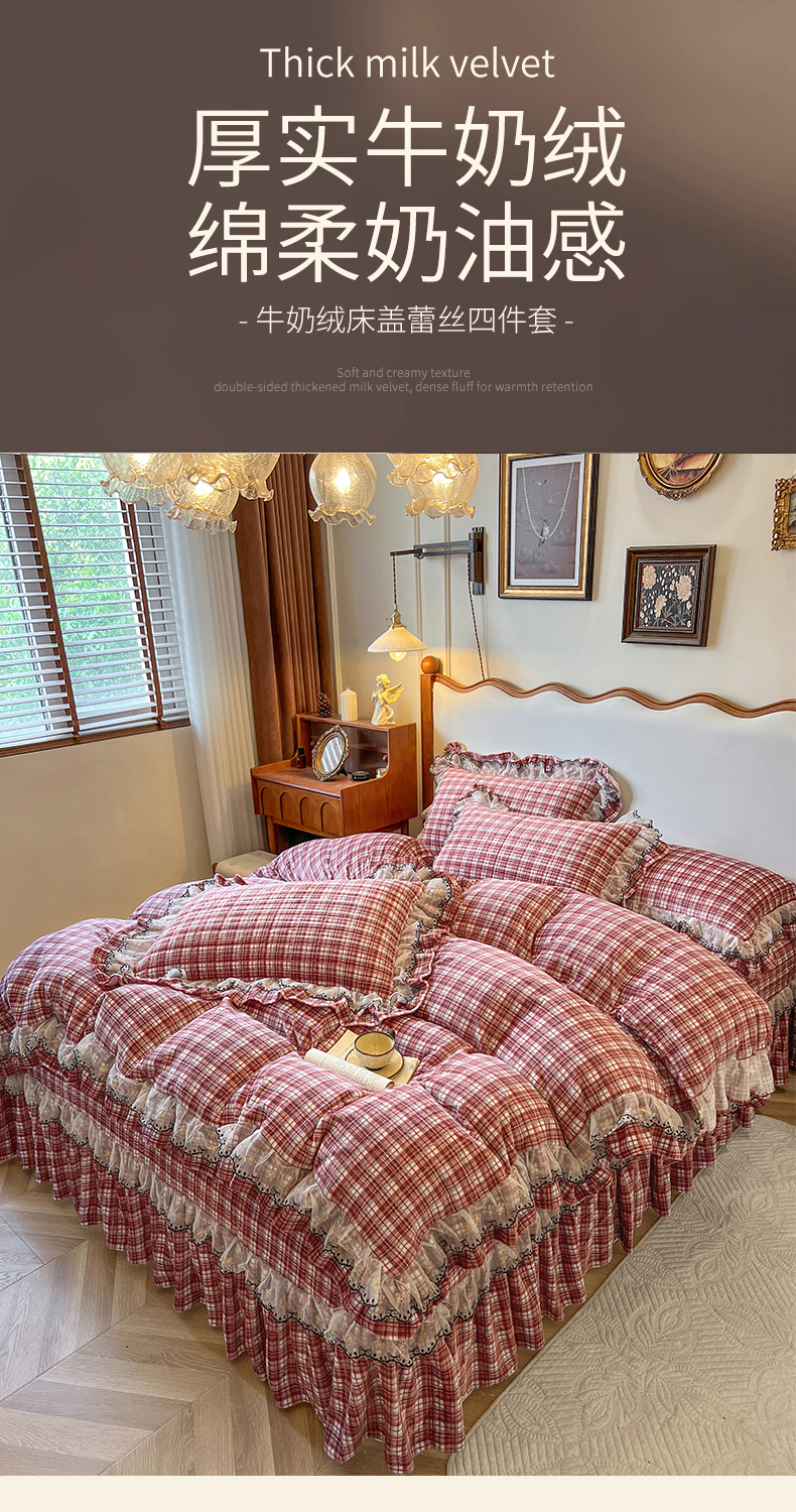 (总)网红馆(ck家纺) 2025新款牛奶绒花边床盖四件套-甜蜜蜜,甜蜜蜜-粉,甜蜜蜜-咖,甜蜜蜜-绿,甜蜜蜜-米,甜蜜蜜-紫
