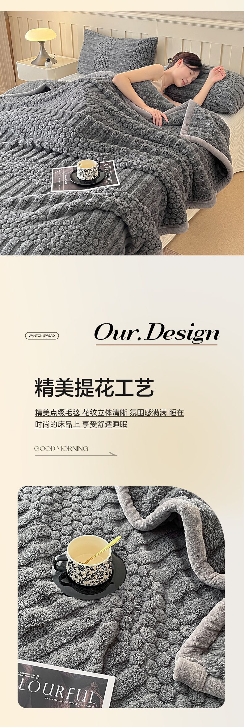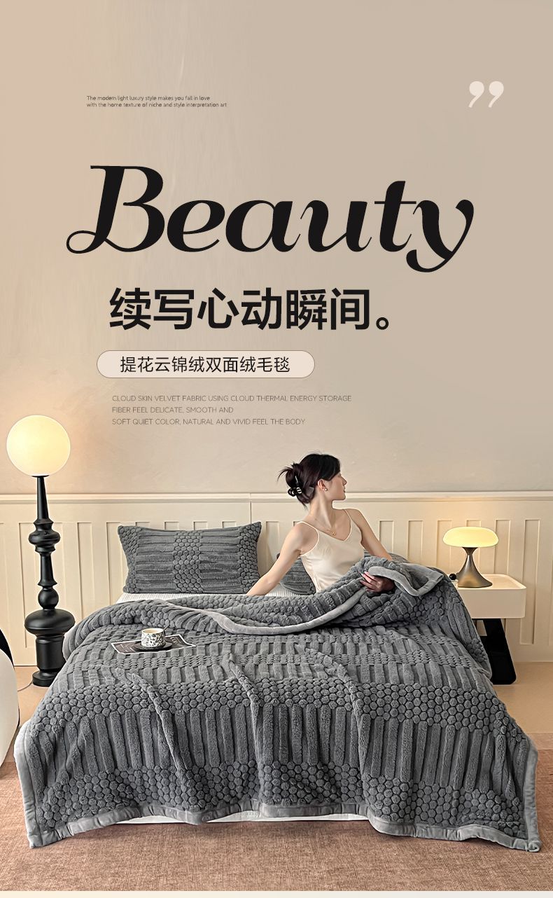 (总)欧邦 2025新款提花暖阳绒羊羔绒毛毯多功能盖毯-梦境系列,梦境-粉玉,梦境-幻白,梦境-米驼,梦境-桑绿,梦境-雾灰