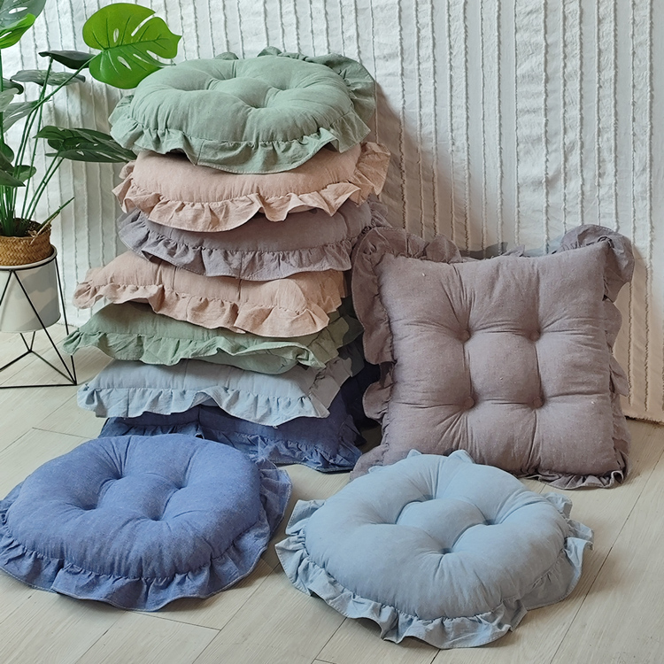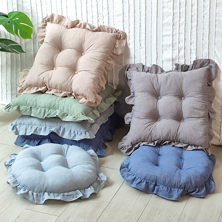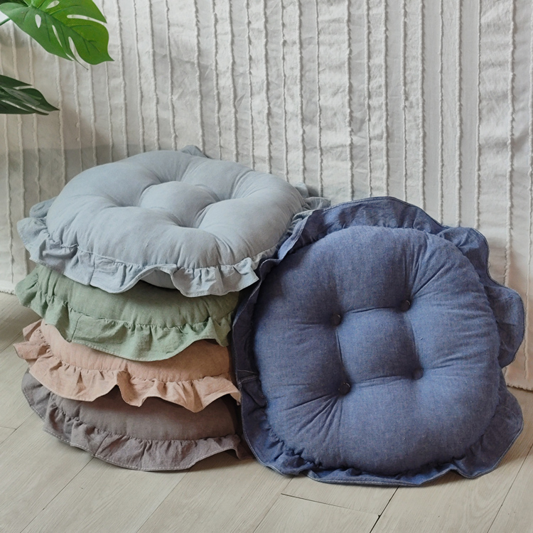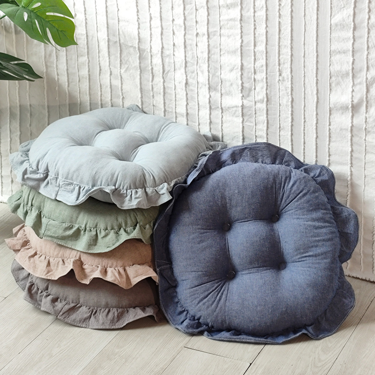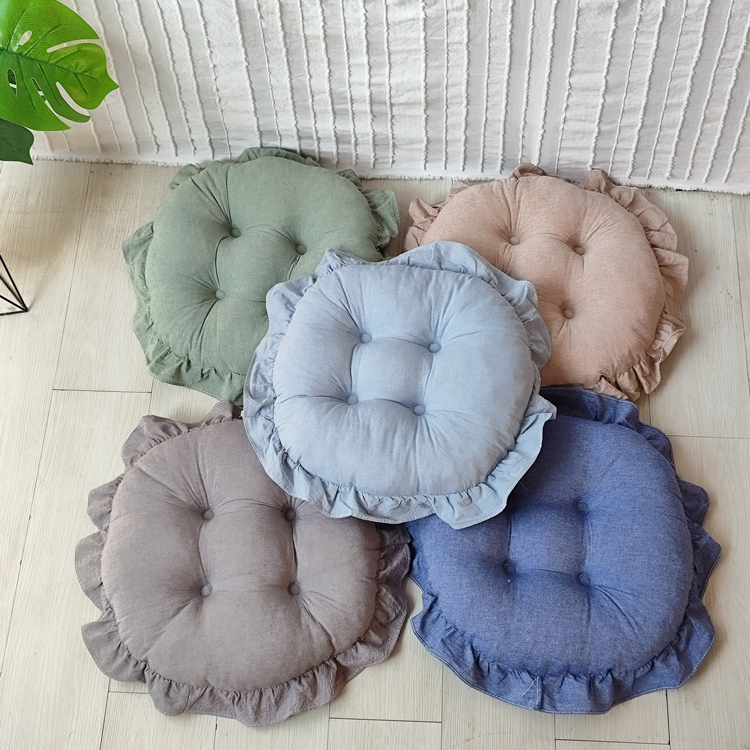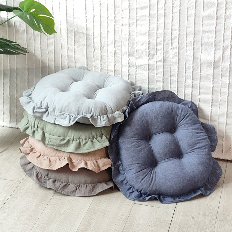 (总)李帅家居 2025新款水洗棉花边坐垫圆形蒲团坐垫黄麻茶道地上客厅阳台飘窗榻榻米加厚拜佛打坐禅修垫