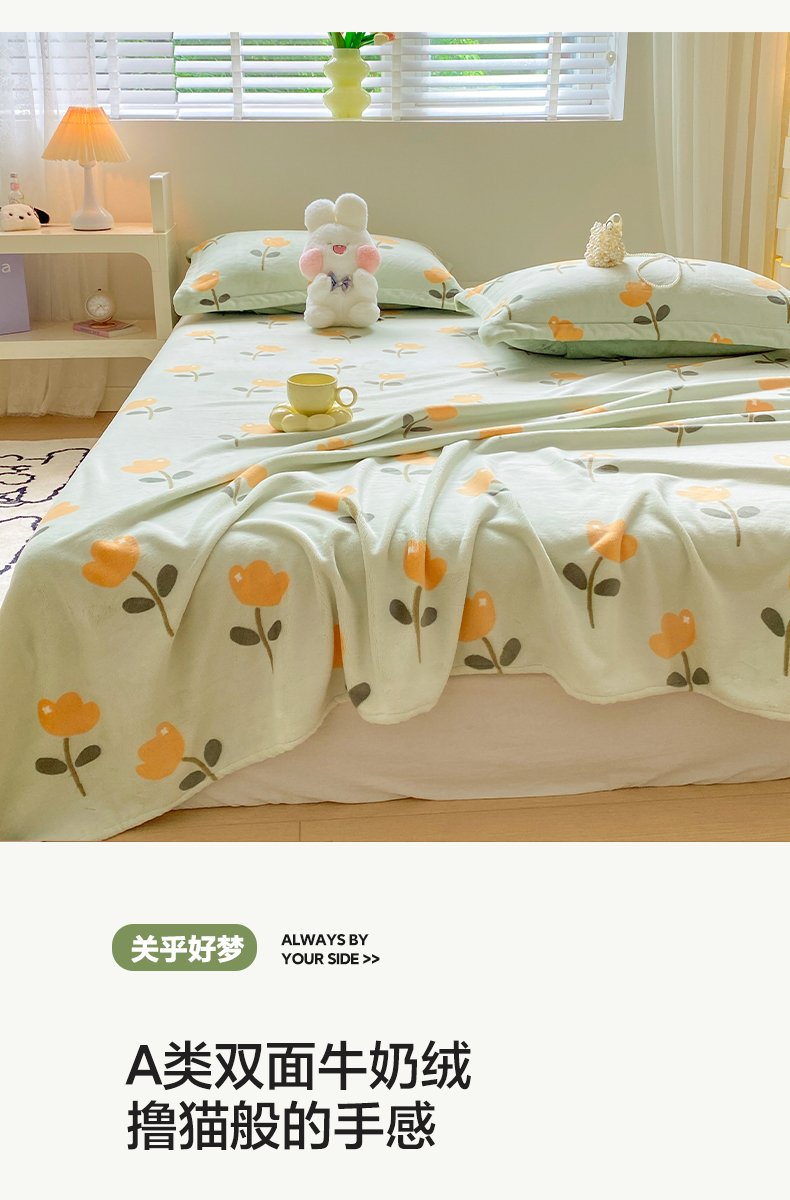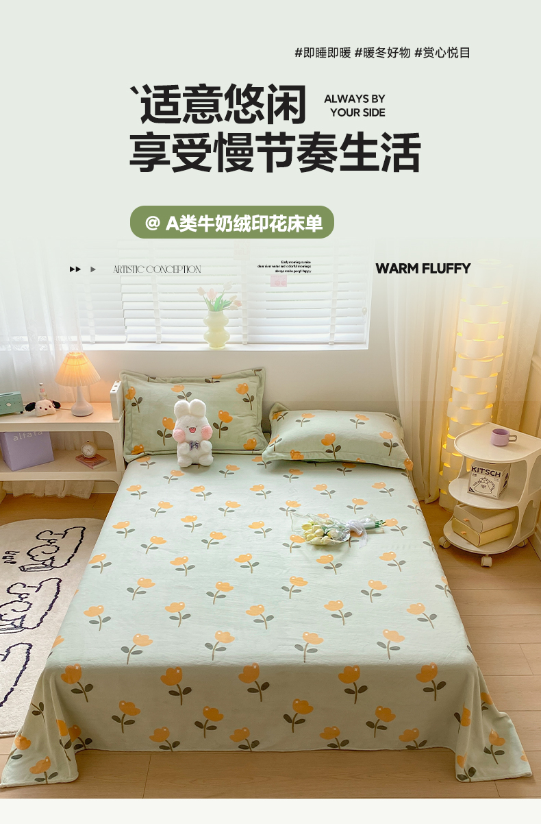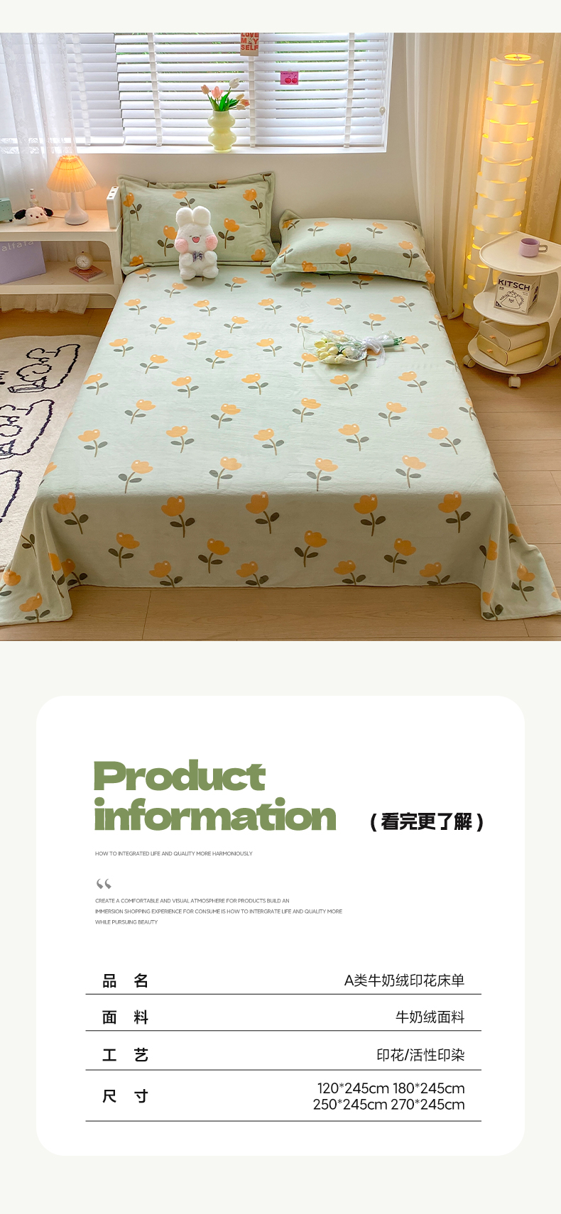 商品名称:金盛纺 2025新款高克重牛奶绒印花系列单床单(可定制) 花仙子