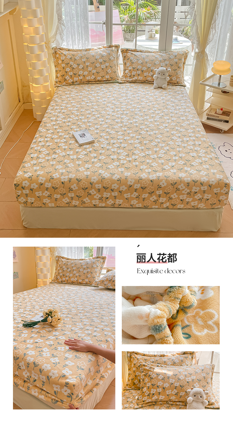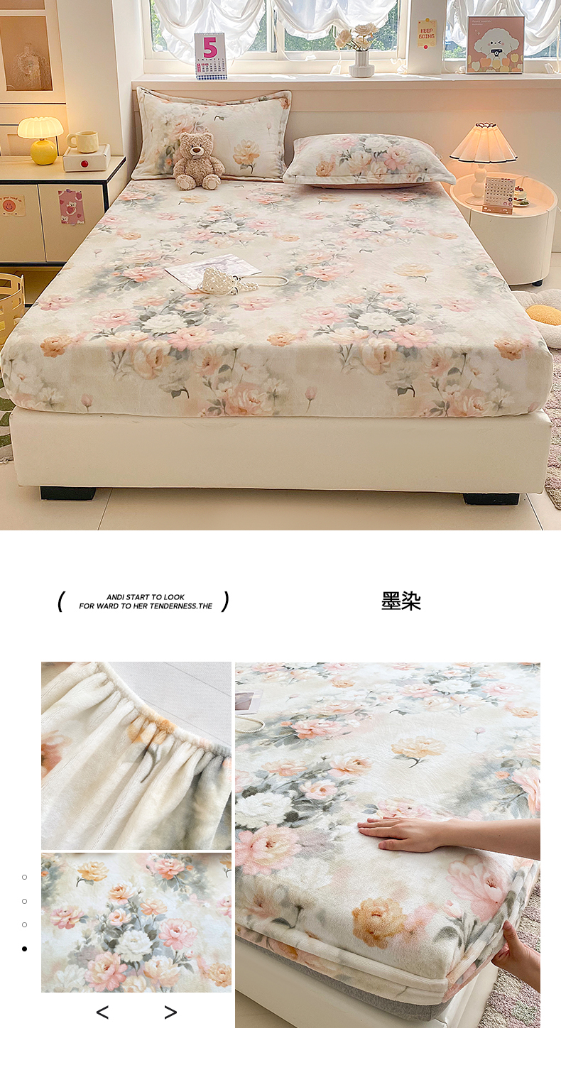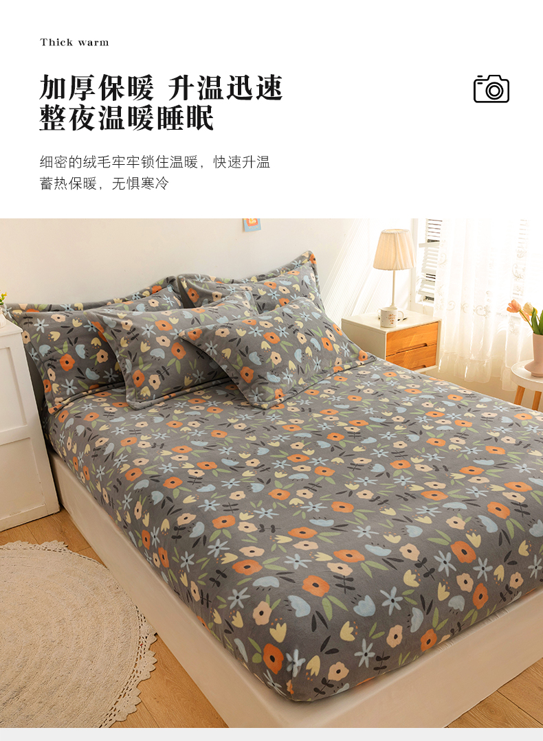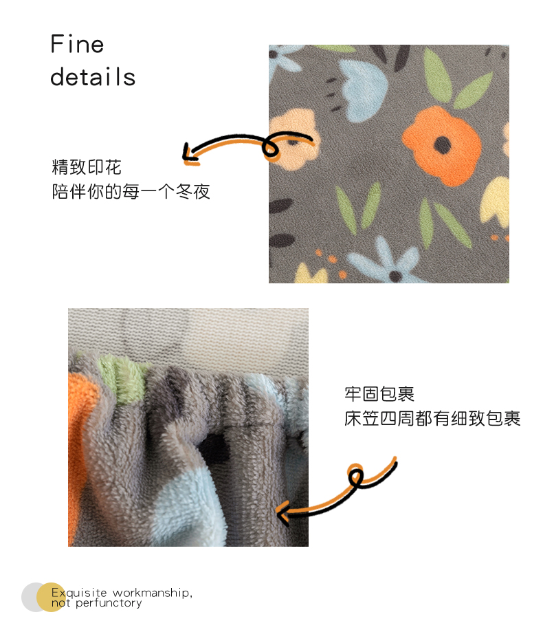 商品名称:金盛纺 2025新款高克重牛奶绒印花系列单床笠(可定制) 繁花(灰)