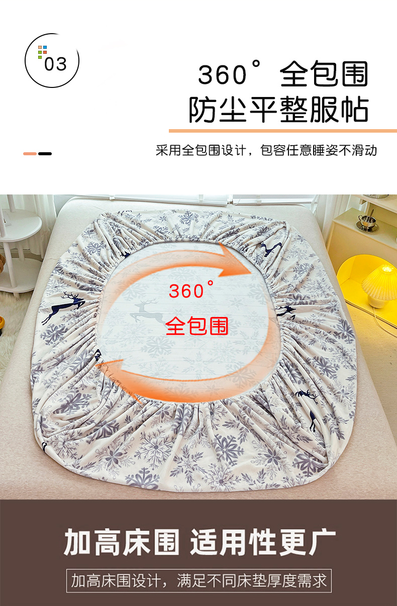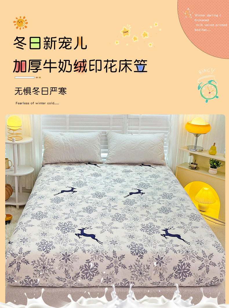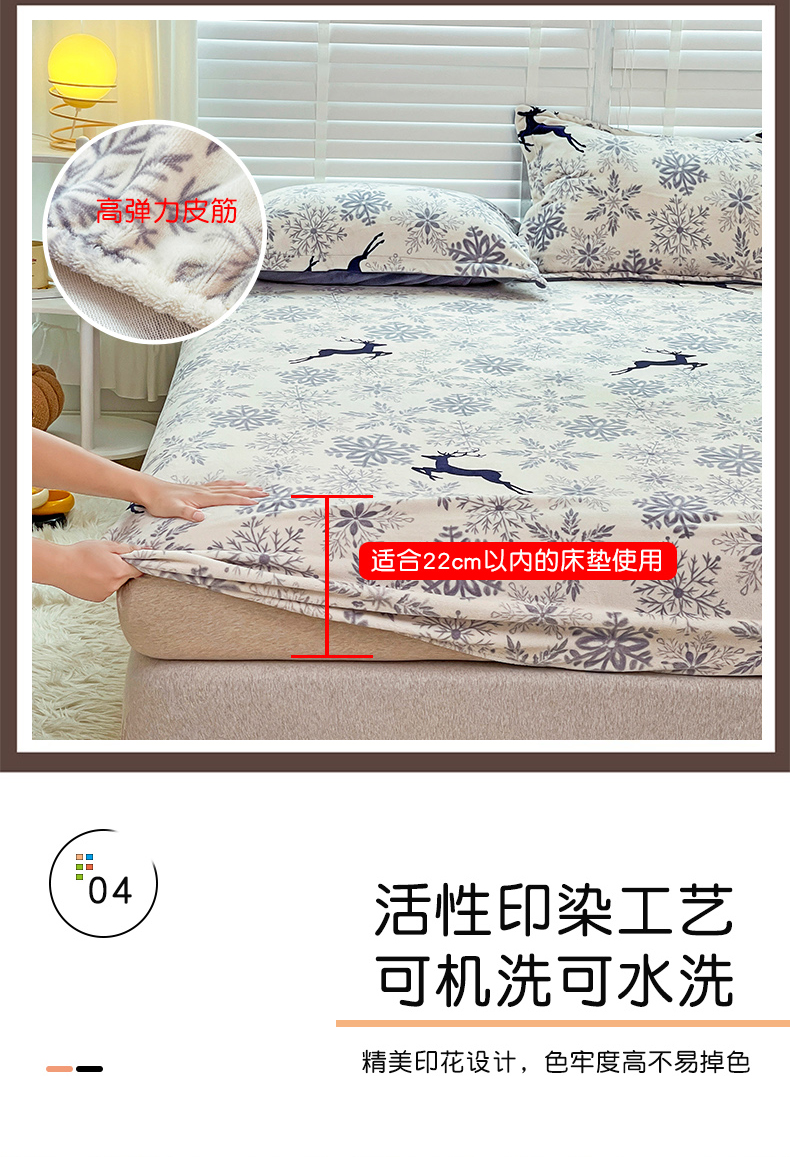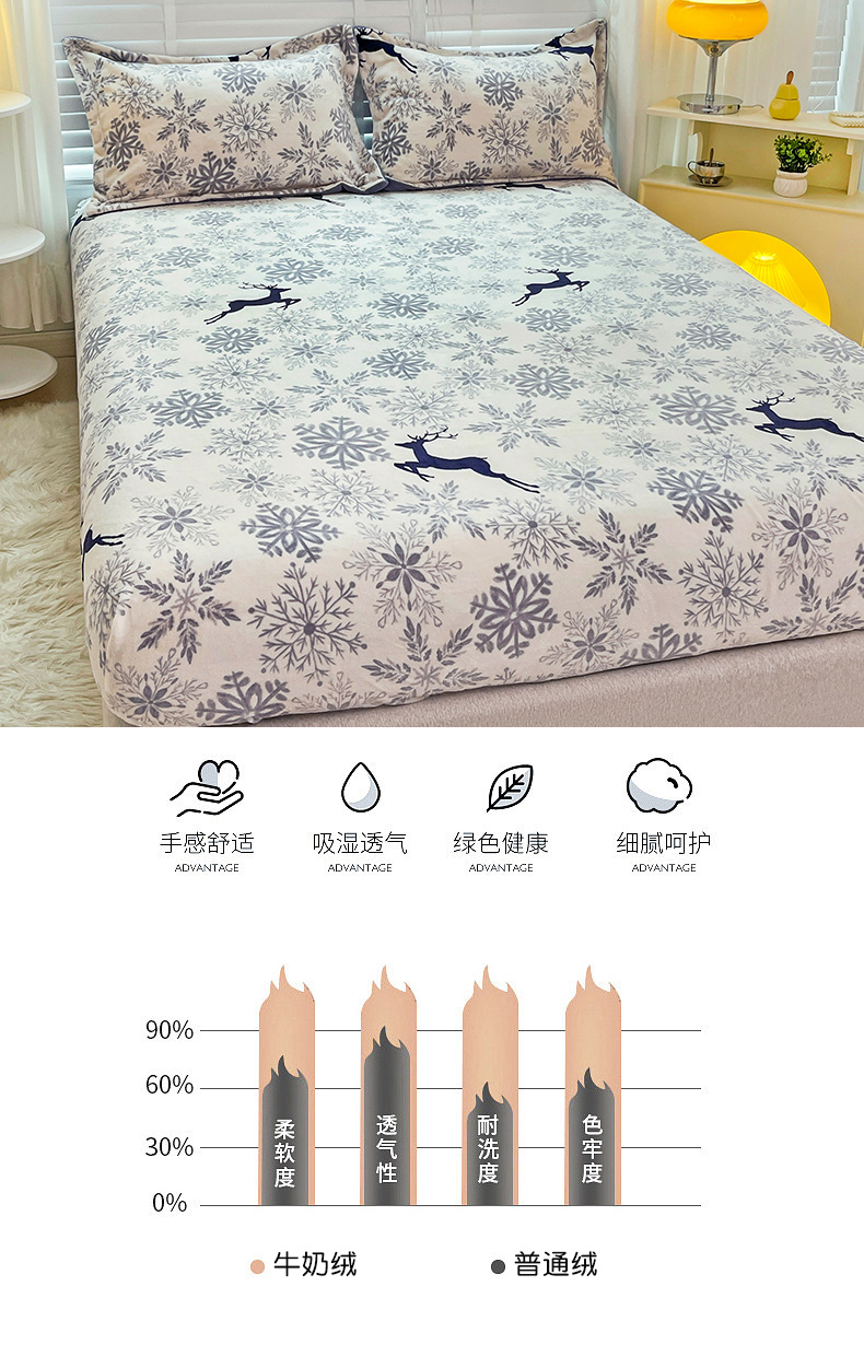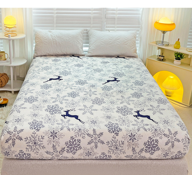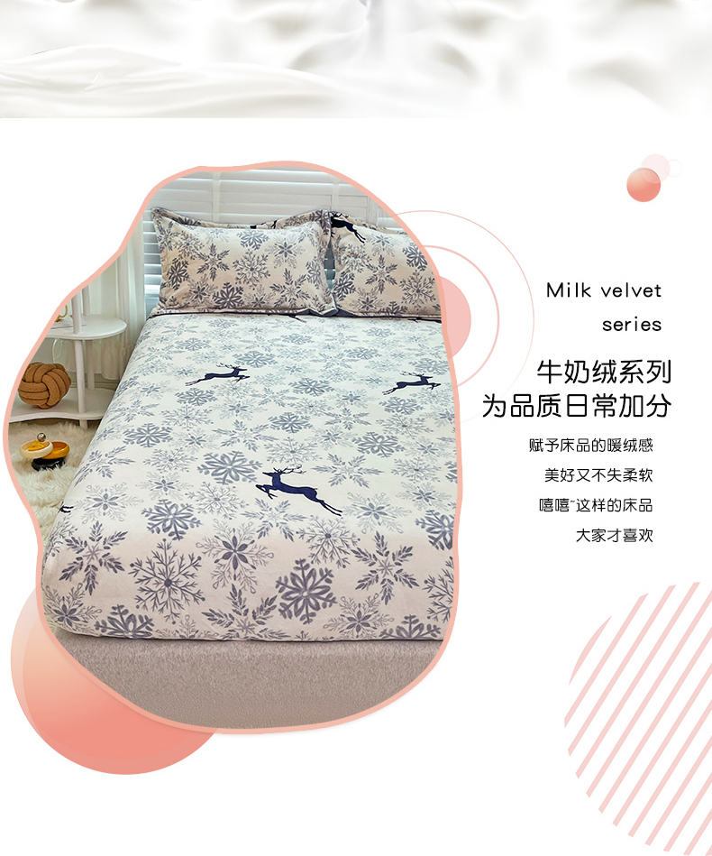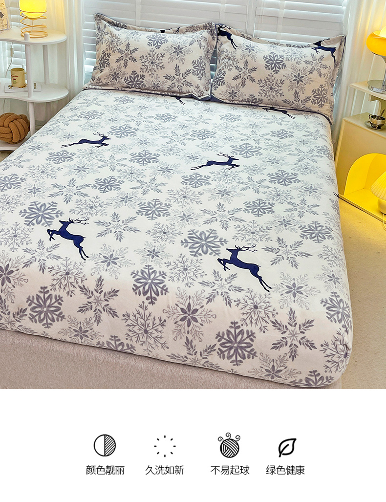 商品名称:金盛纺 2025新款高克重牛奶绒印花系列单床笠(可定制) 圣诞鹿