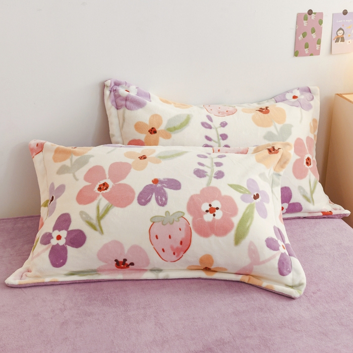 商品名称:金盛纺 2025新款牛奶绒印花单枕套单品枕套枕套单件 桃心草莓