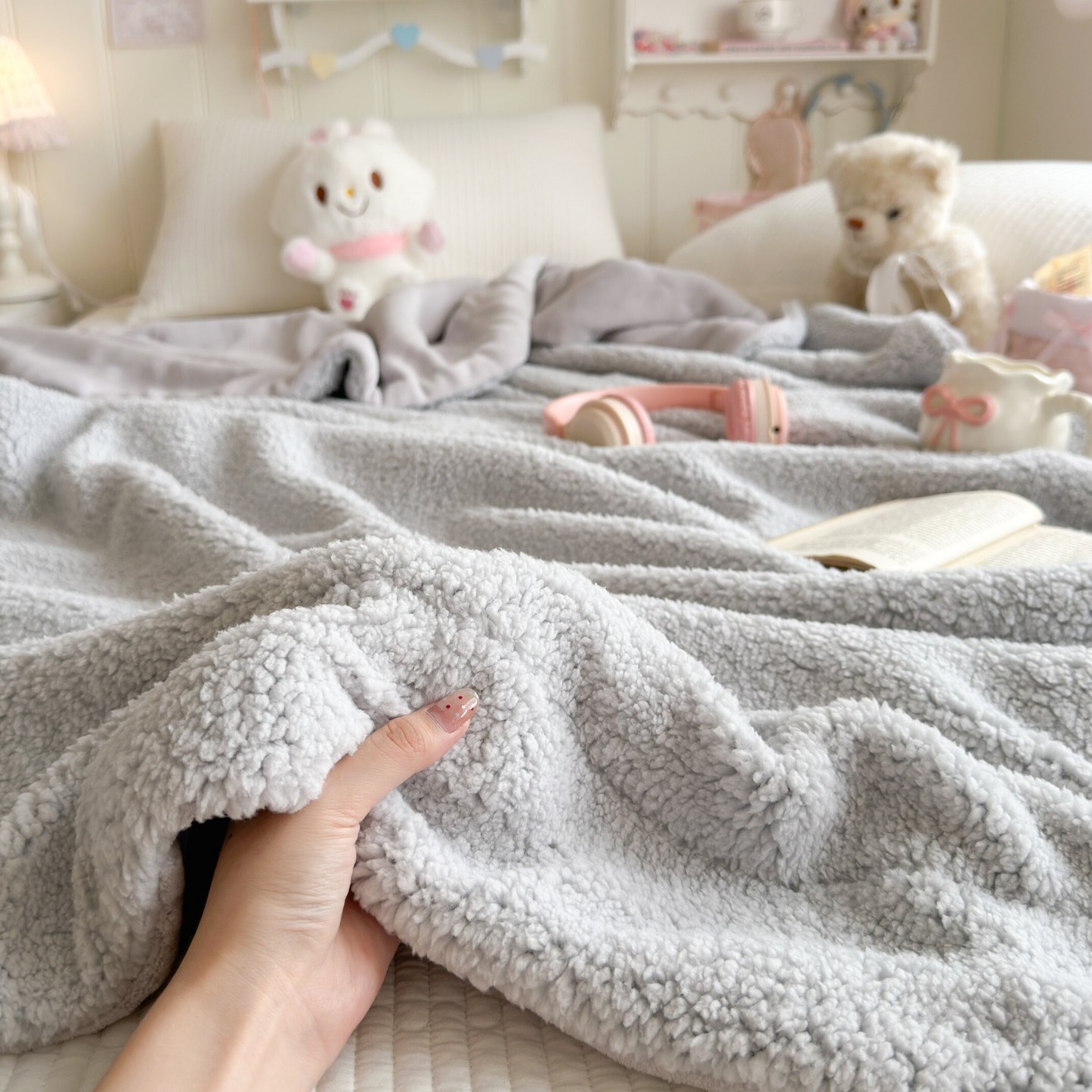 顾里家纺 2025新款韩系糯叽叽纯色羊羔绒毯毯子 甜莓粉