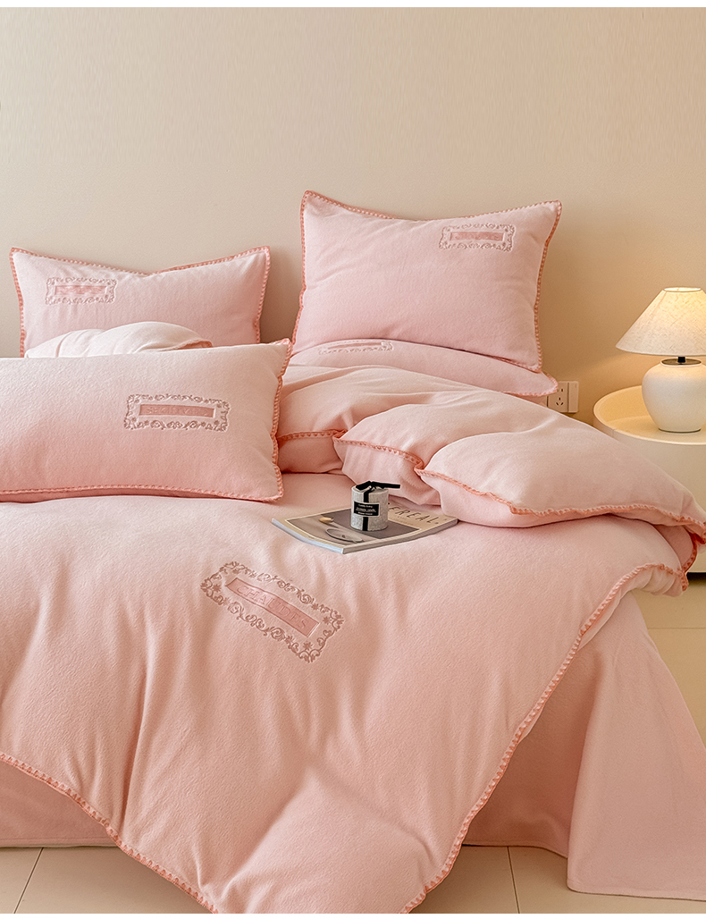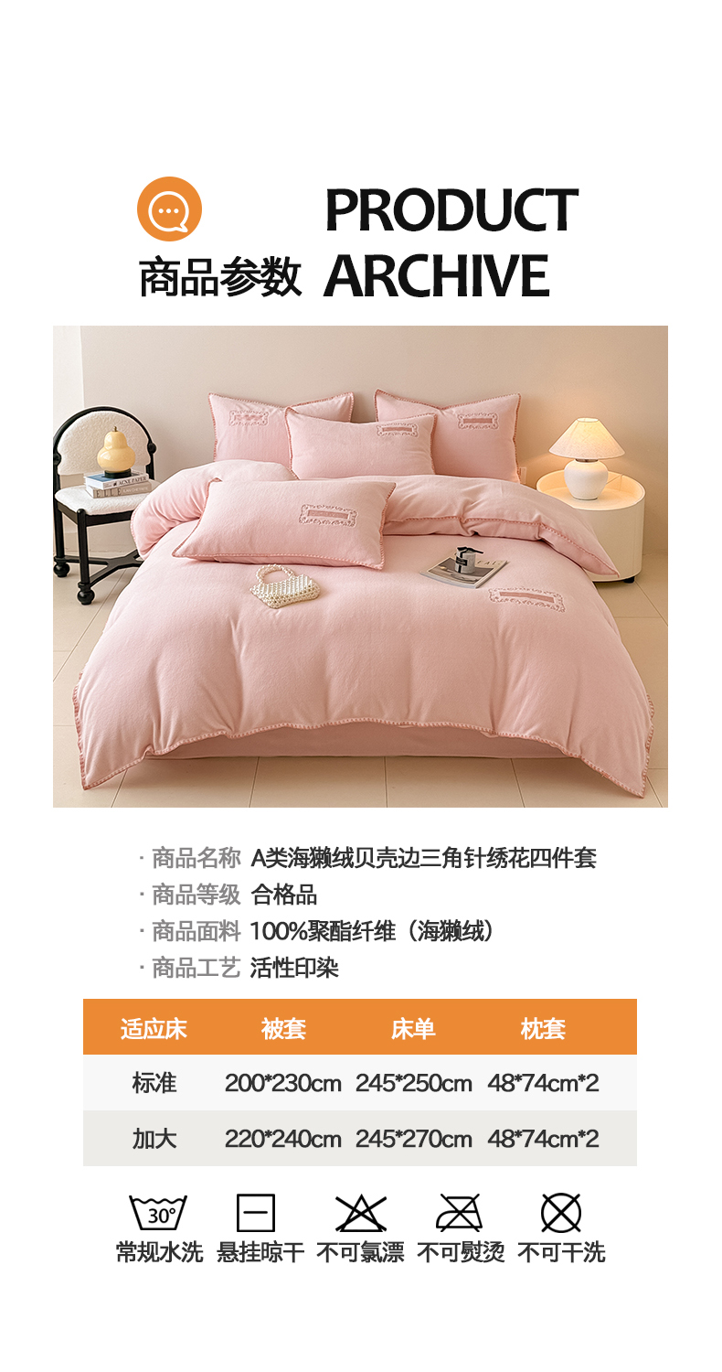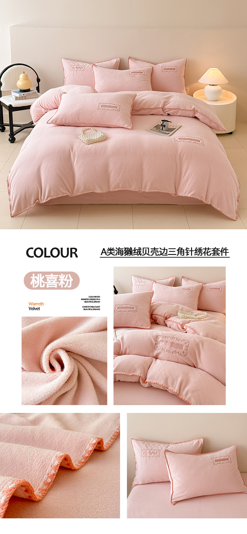 当前位置: 91家纺网 > 商品网购 > 床品套件 > 四件套 > 其它四件套 > 懒猫家纺 2025新款A类贝壳绣纯色海獭绒四件套 桃喜粉