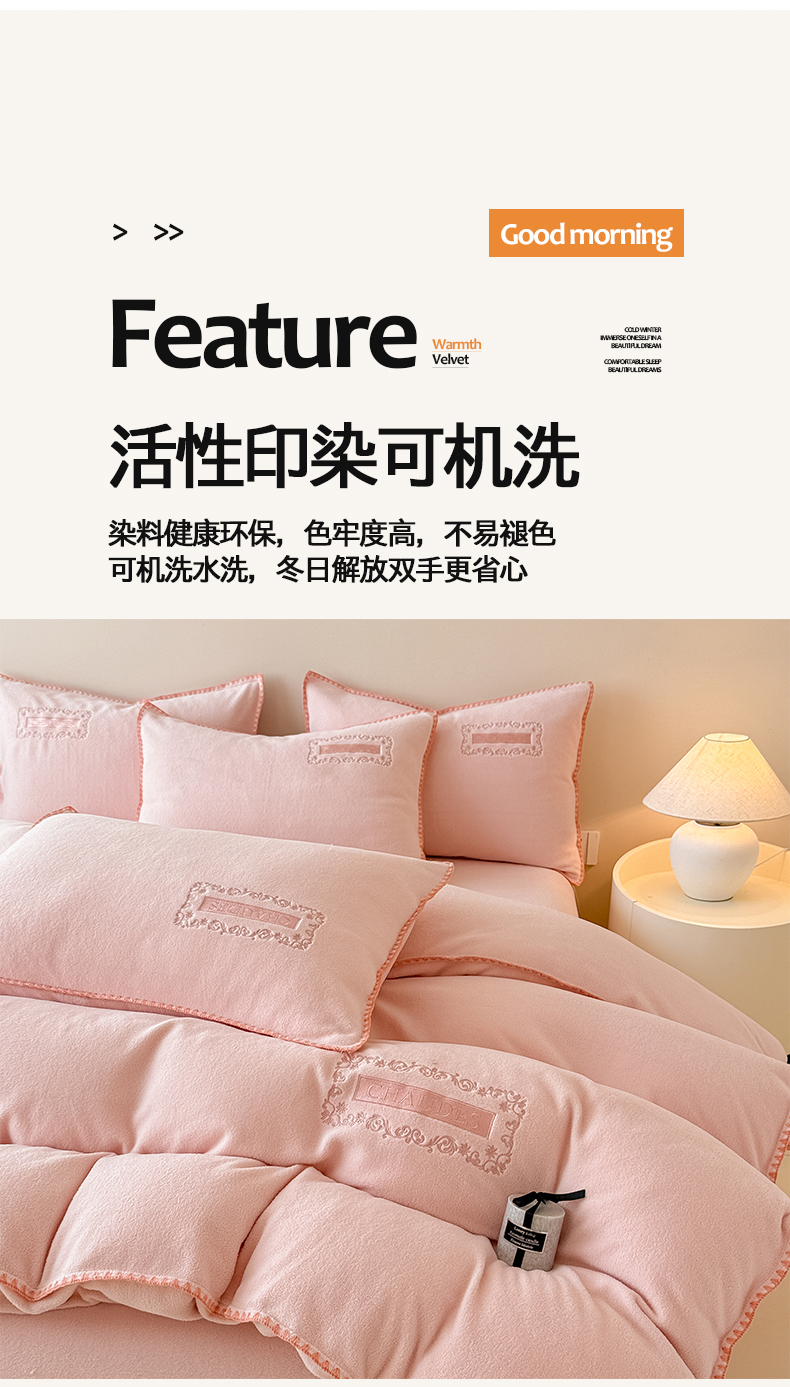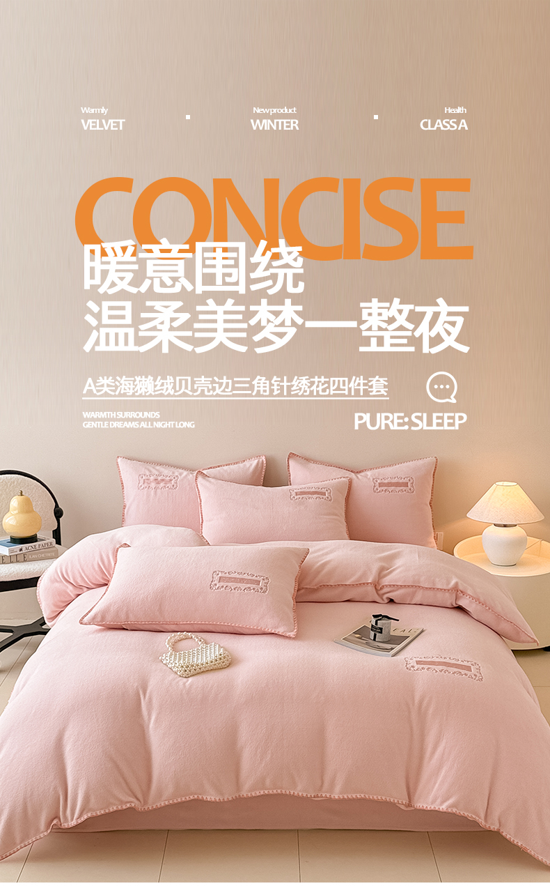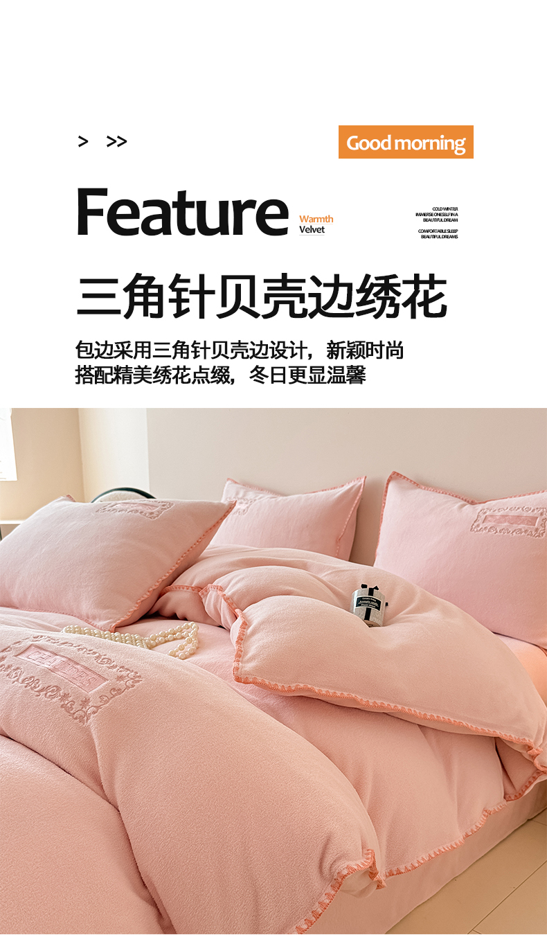 当前位置: 91家纺网 > 商品网购 > 床品套件 > 四件套 > 其它四件套 > 懒猫家纺 2025新款A类贝壳绣纯色海獭绒四件套 桃喜粉
