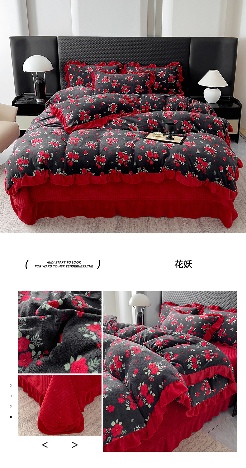 找底底家纺 2025新款花边9-10斤牛奶绒床盖款四件套 花妖