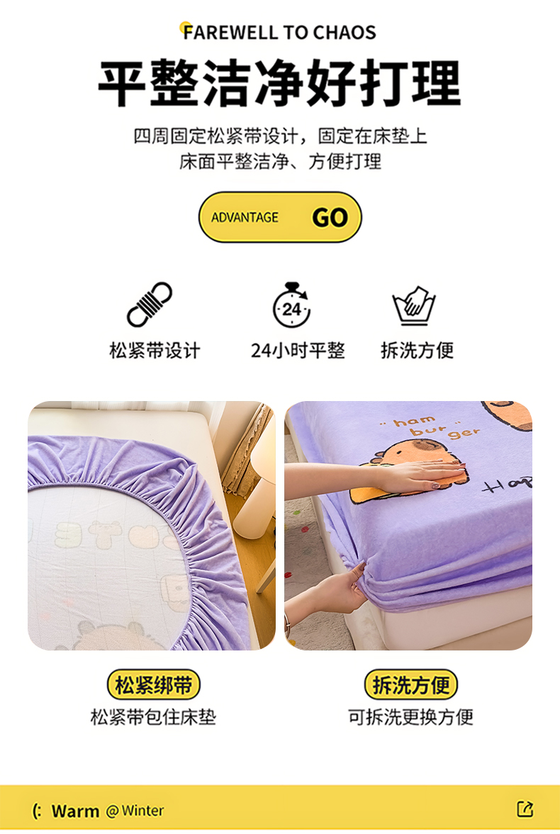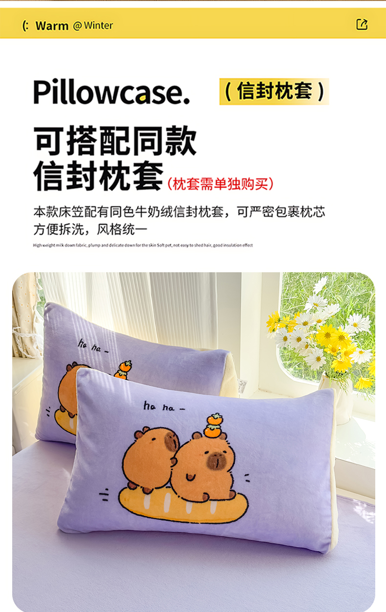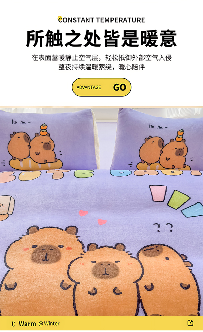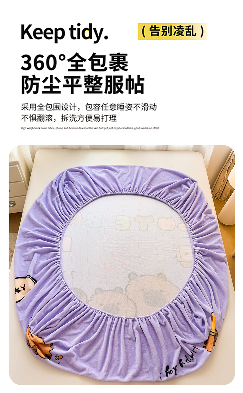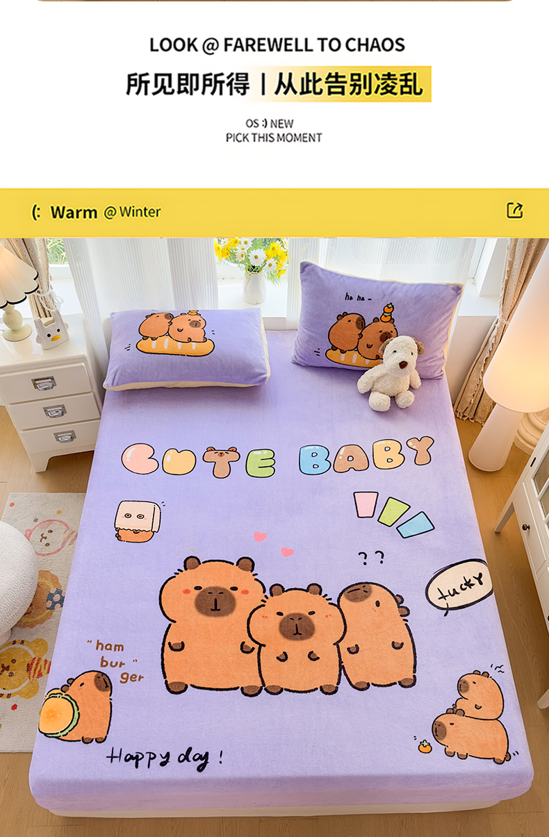 商品名称:浩诚 2025新款大版原创设计卡皮巴拉高克重牛奶绒单床笠 紫色巴拉