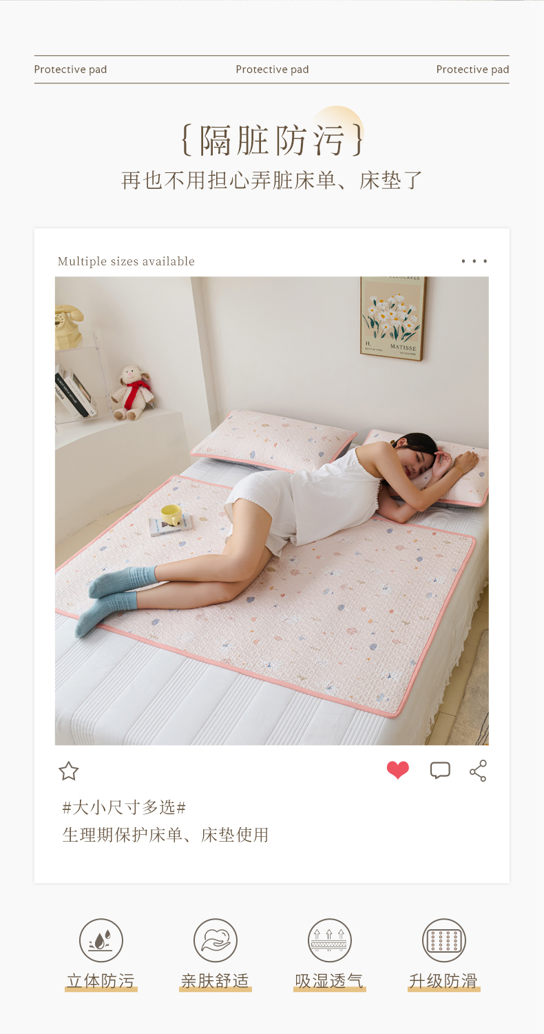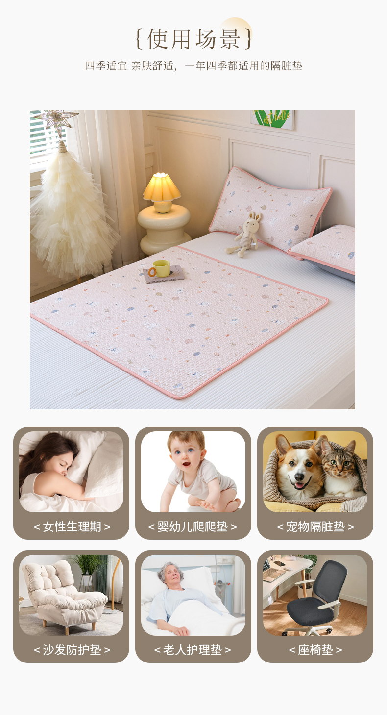 当前位置: 91家纺网 > 商品网购 > 床垫/床褥 > 普通床垫 > 拾小柒 2025年新款全棉双层纱隔脏姨妈垫护理垫床护垫 萌趣森林粉-不防水款