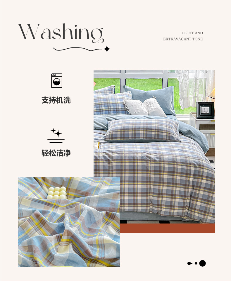 (总)柠萌家居 2026新款色织水洗棉四件套单被套,粉极细条,粉紫条,黄咖条,灰极细条,蓝咖条,绿极细条,绿紫条,米极细条,驼红条