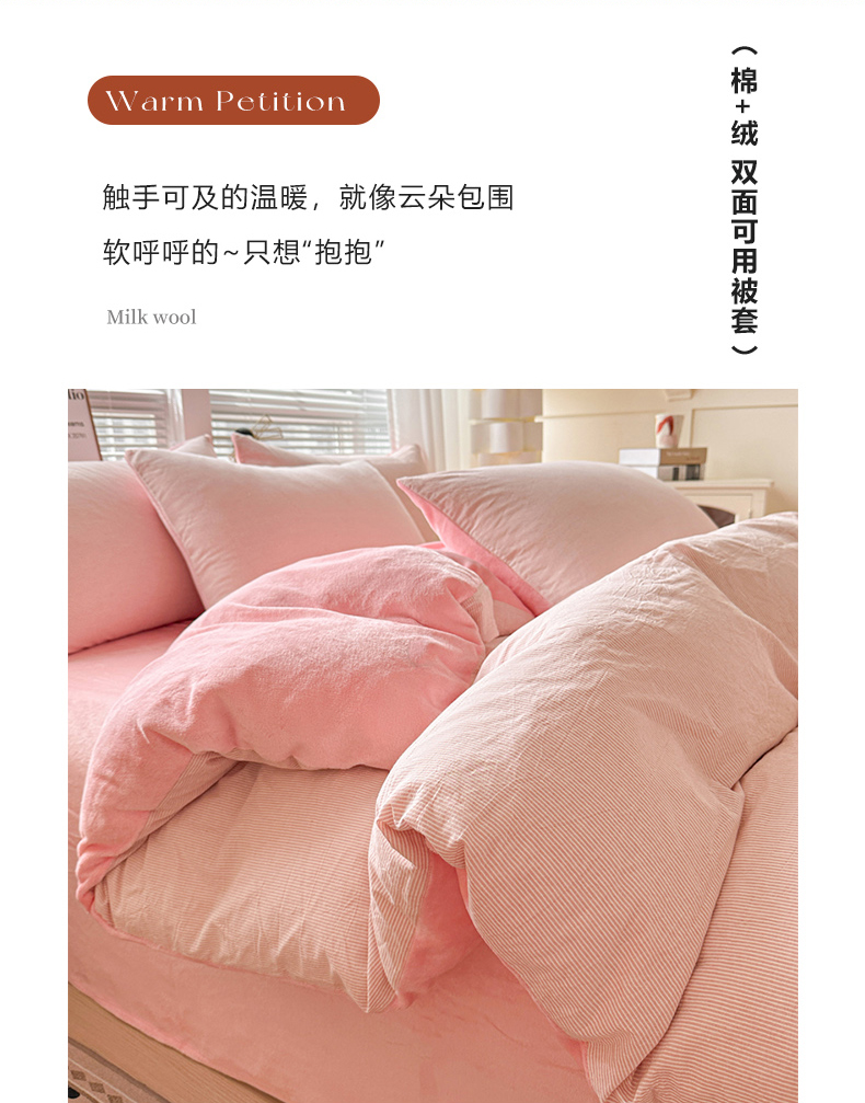 • 91家纺网 家纺一手货源 找家纺 柠萌家居 2025新款无印良品风双拼全棉色织水洗棉加牛奶绒单品被套简约风全棉拼牛奶绒单被套 棉+绒粉密条