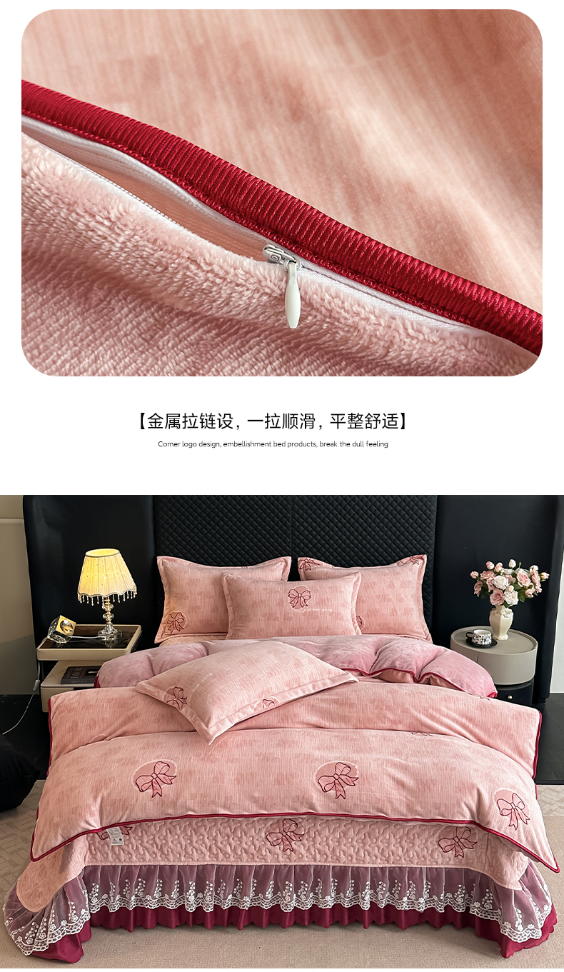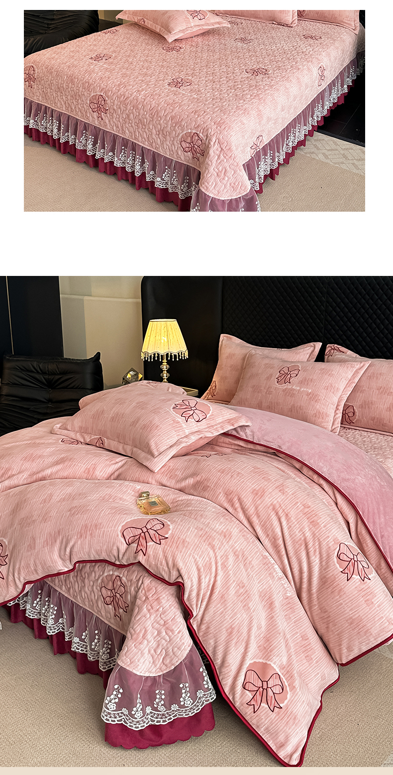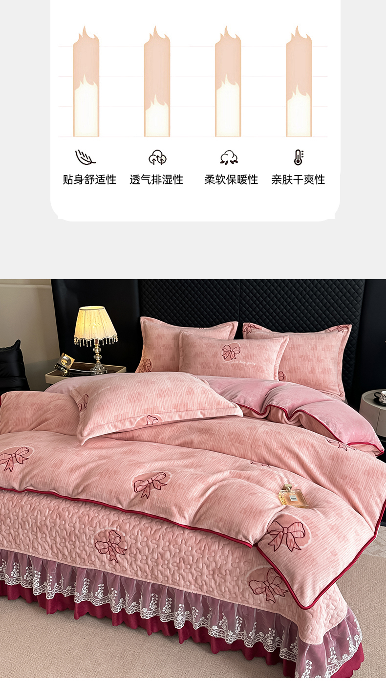 栩裕纺织 2025新款加厚牛奶绒床盖四件套 同心结