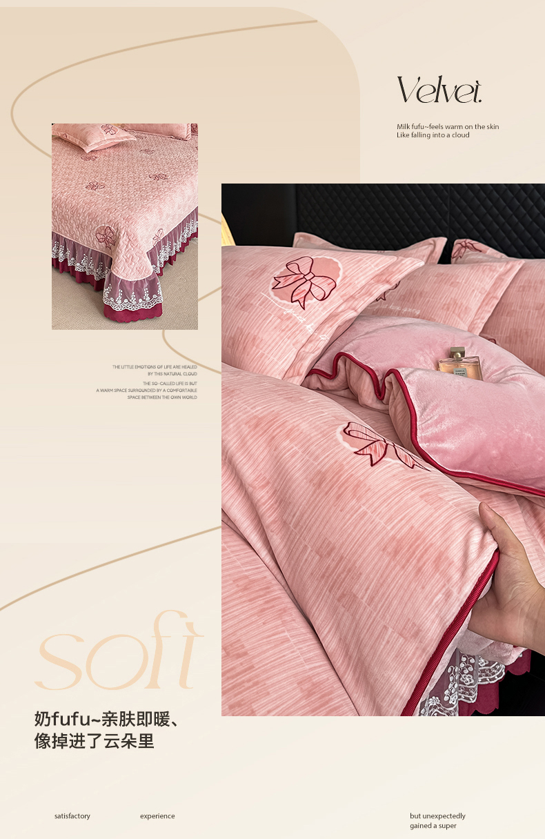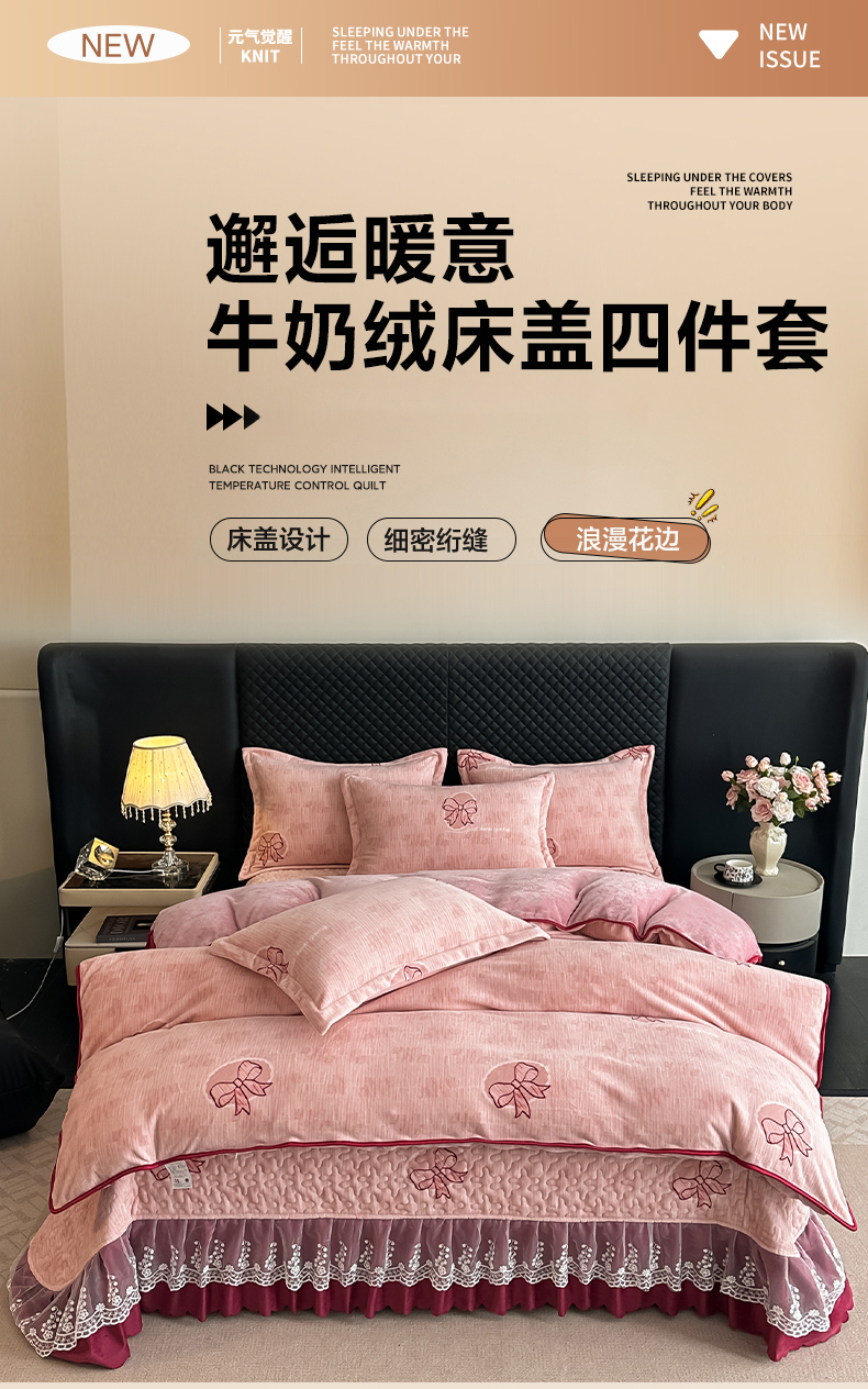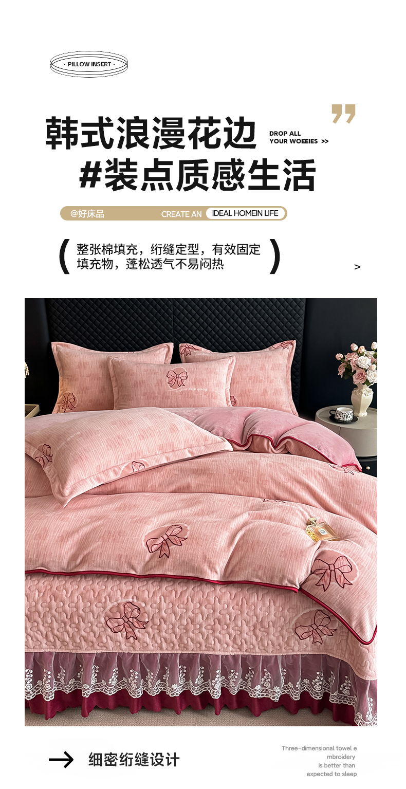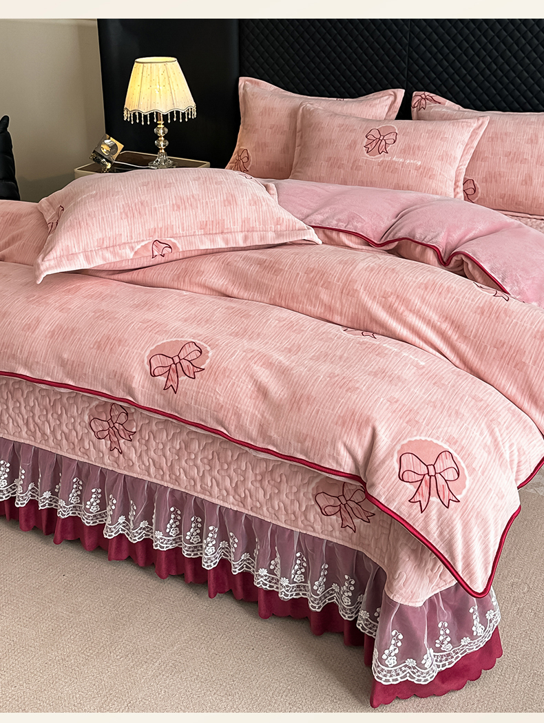 栩裕纺织 2025新款加厚牛奶绒床盖四件套 同心结