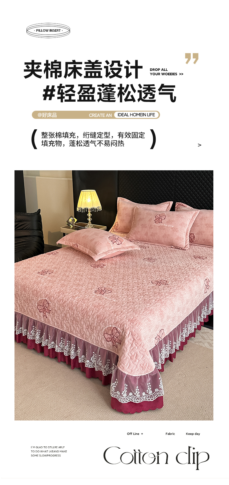(总)栩裕纺织 2026新款全棉双层纱棉花边榻榻米炕盖款,波点粉,波点灰,波点绿,波点米,波点杏,波点紫,组合图仅供参考