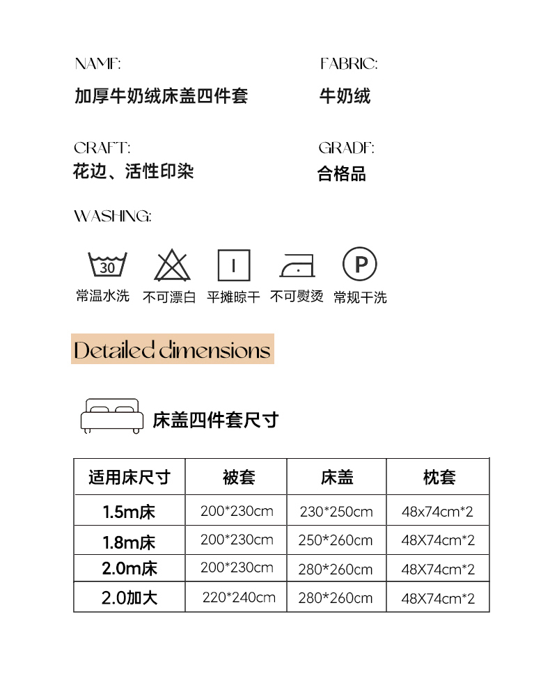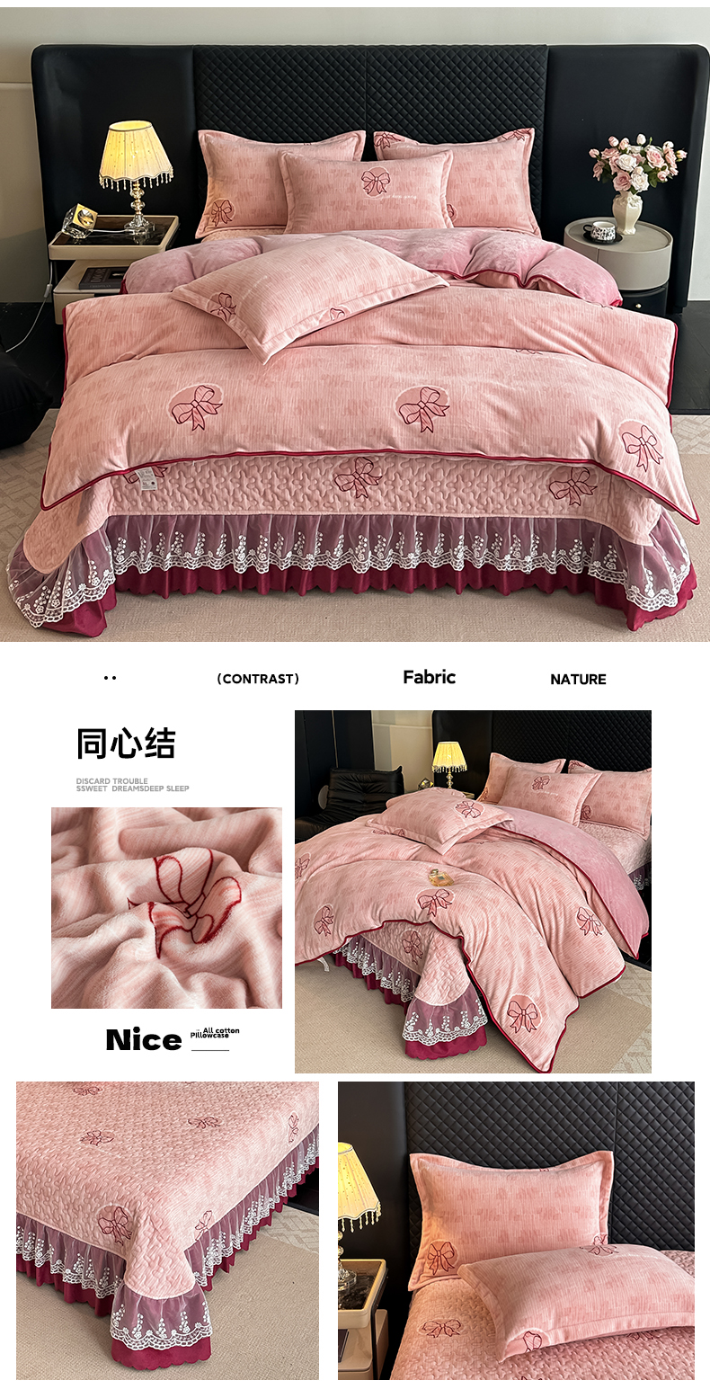 商品名称:栩裕纺织 2025新款加厚牛奶绒床盖四件套 同心结