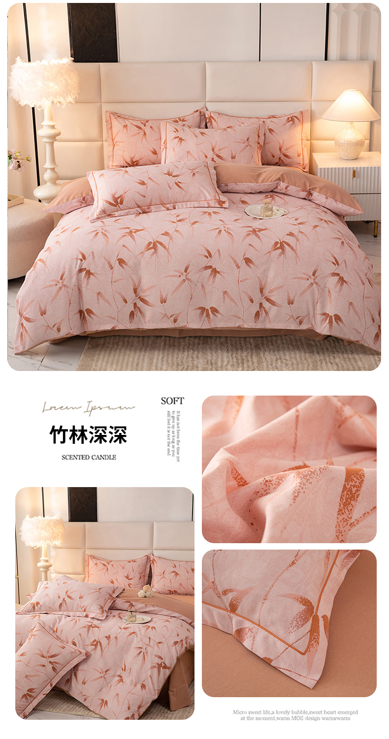 商品名称:幸嘉轩 2025新款全棉纯棉喷气加厚磨毛四件套-系列五 竹林深深