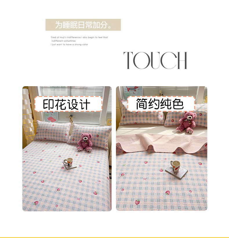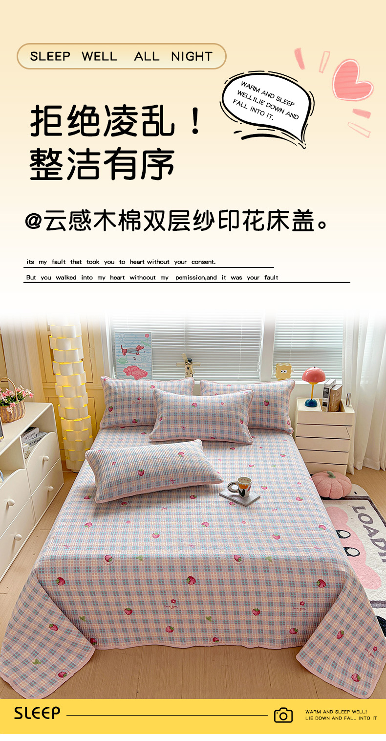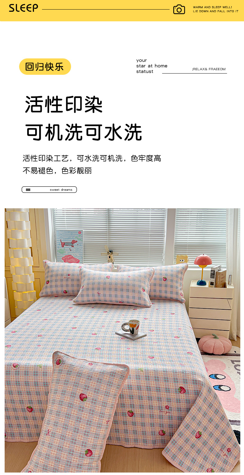 当前位置: 91家纺网 > 商品网购 > 床品套件 > 三件套 > 暖芯优选 2025新款木棉印花床盖三件套 格子草莓