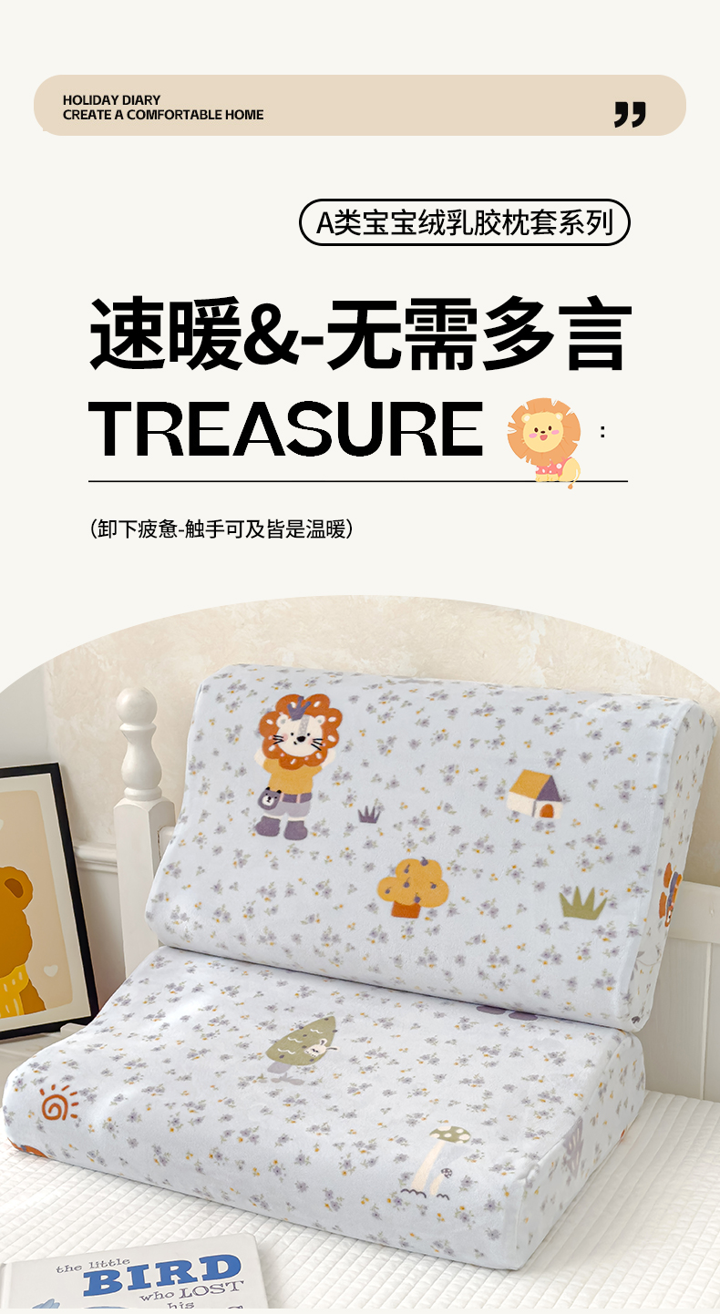 商品名称:良佐生活 2025新款宝宝绒乳胶枕套 小狮子乐园-蓝