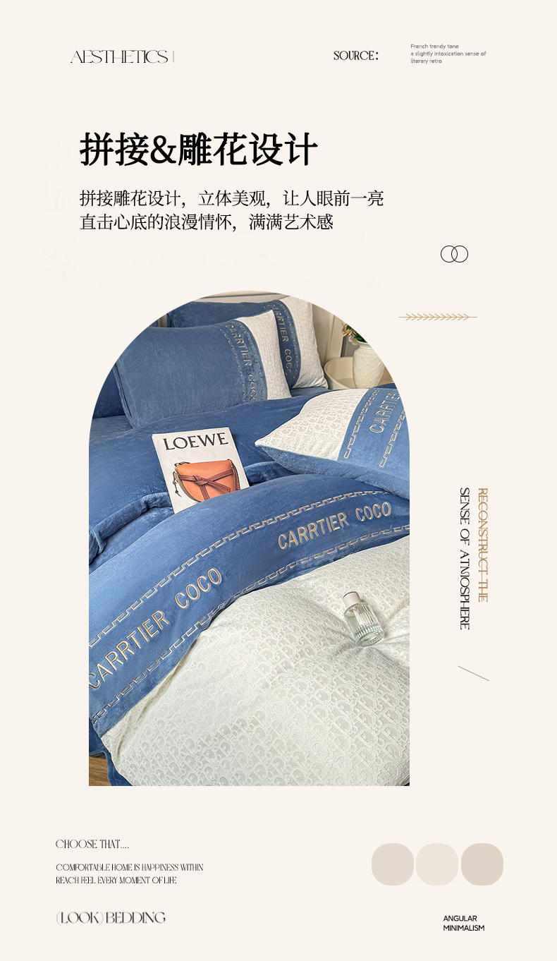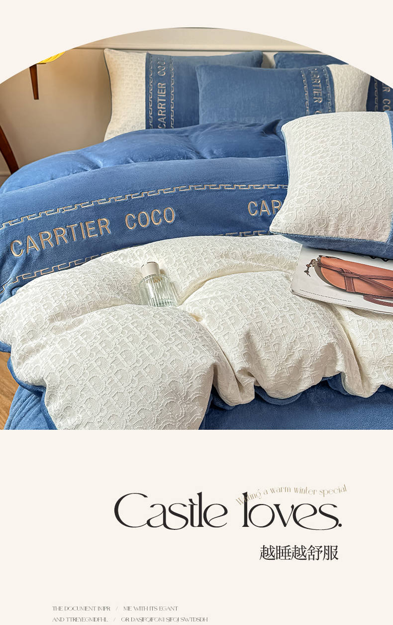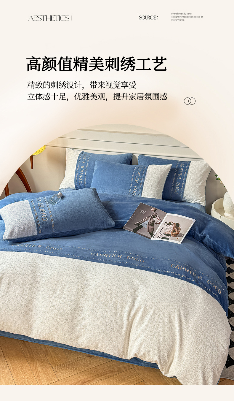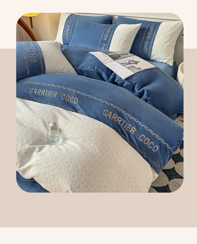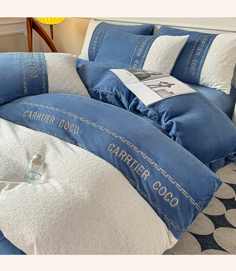 当前位置: 91家纺网 > 商品网购 > 床品套件 > 四件套 > 牛奶绒四件套 > 灰鲸 2025新款牛奶绒拼接刺绣雕花套件-露娜 露娜-宾利蓝