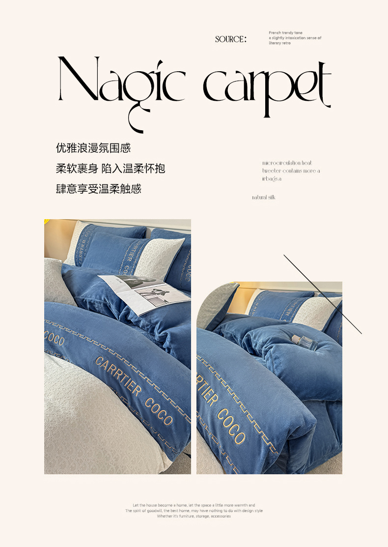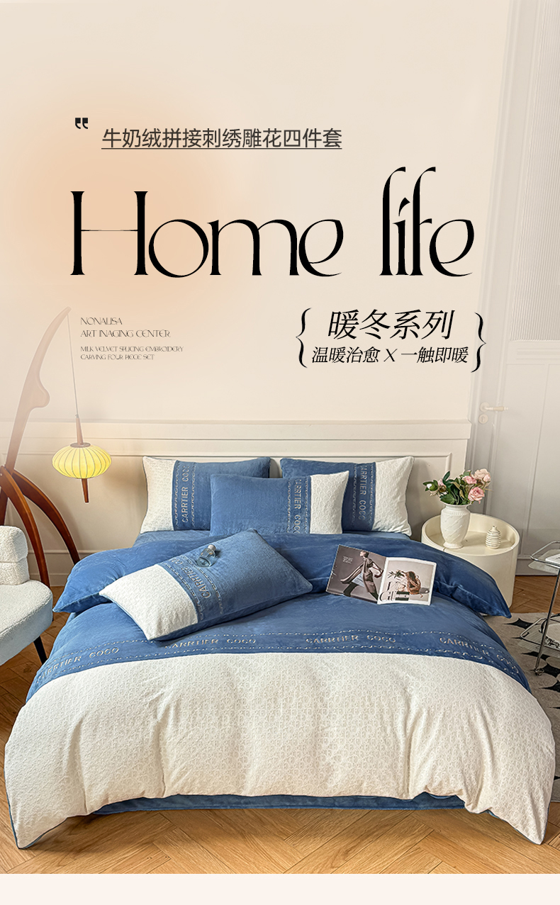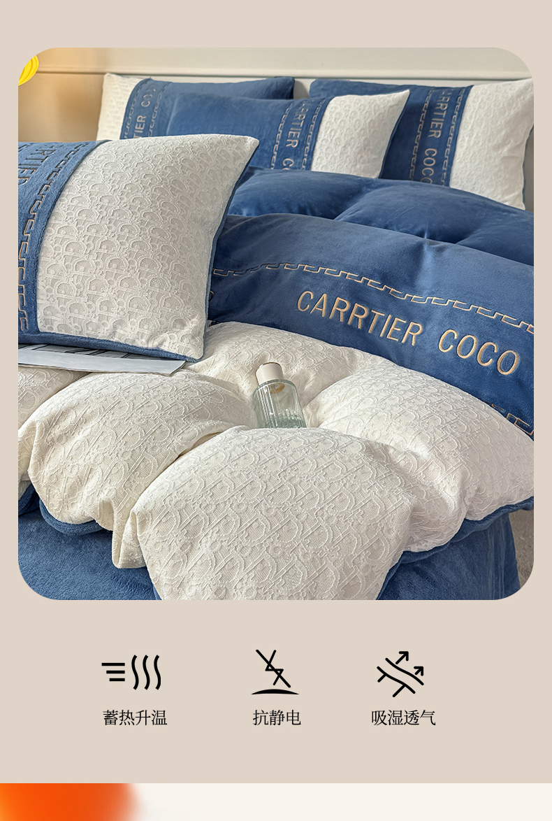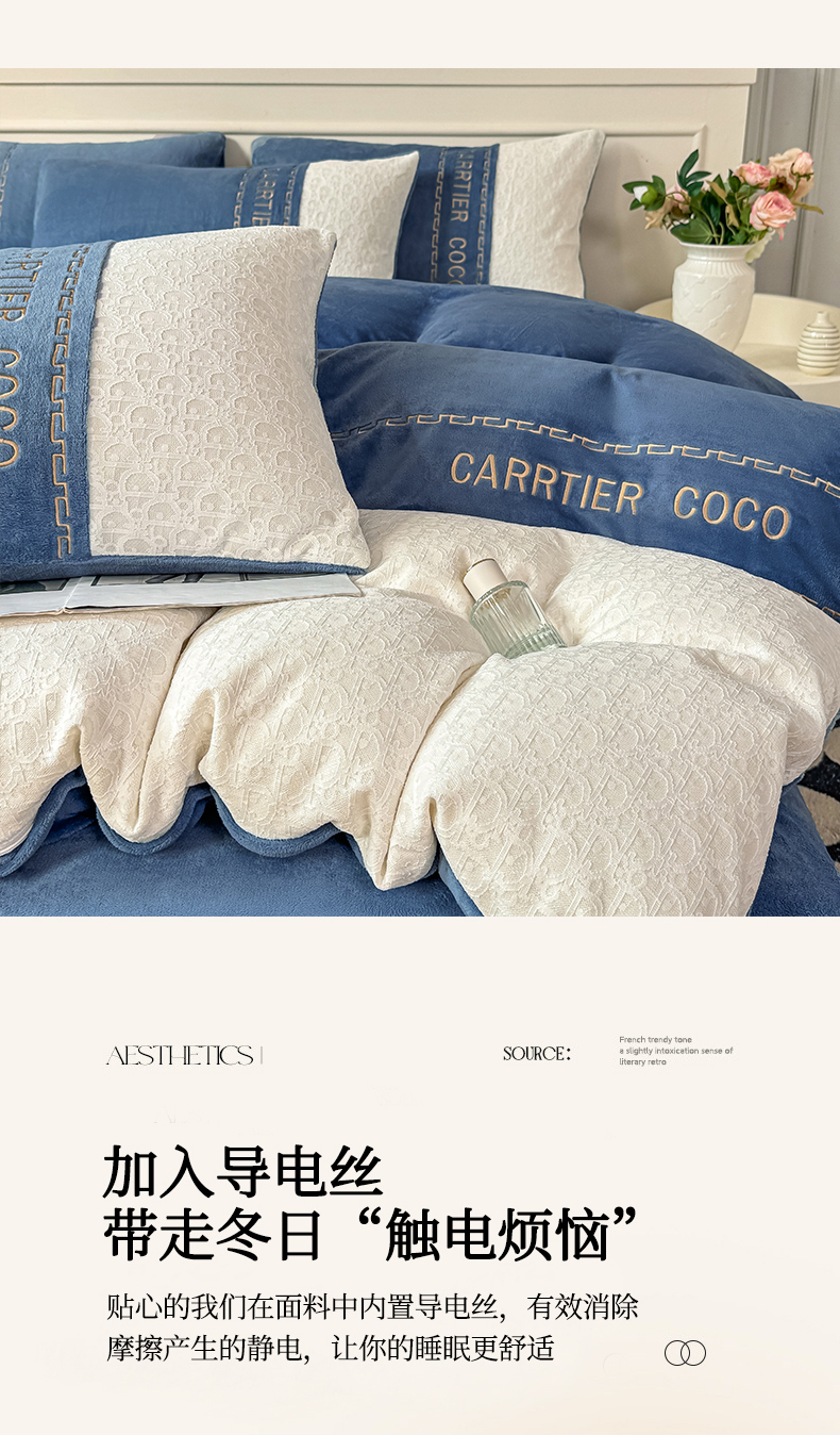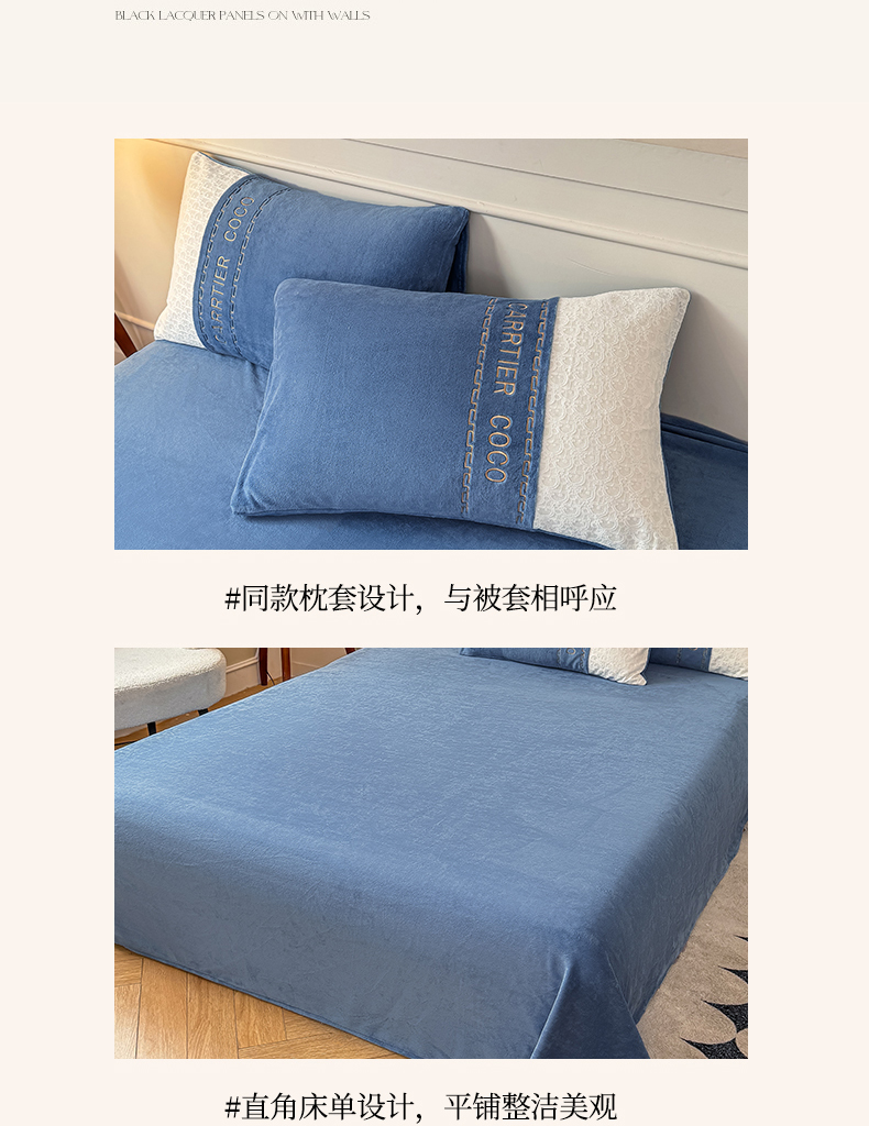 当前位置: 91家纺网 > 商品网购 > 床品套件 > 四件套 > 牛奶绒四件套 > 灰鲸 2025新款牛奶绒拼接刺绣雕花套件-露娜 露娜-宾利蓝