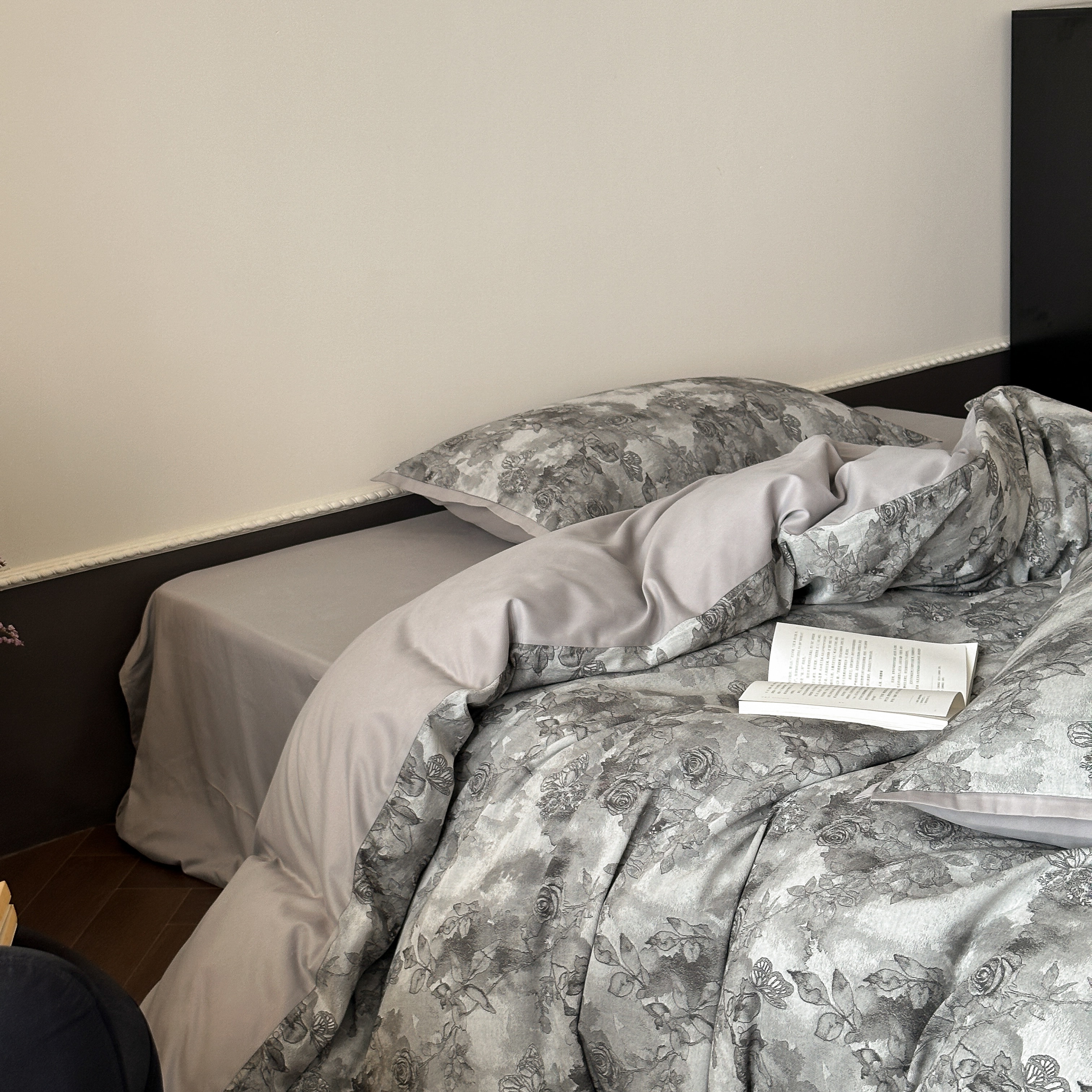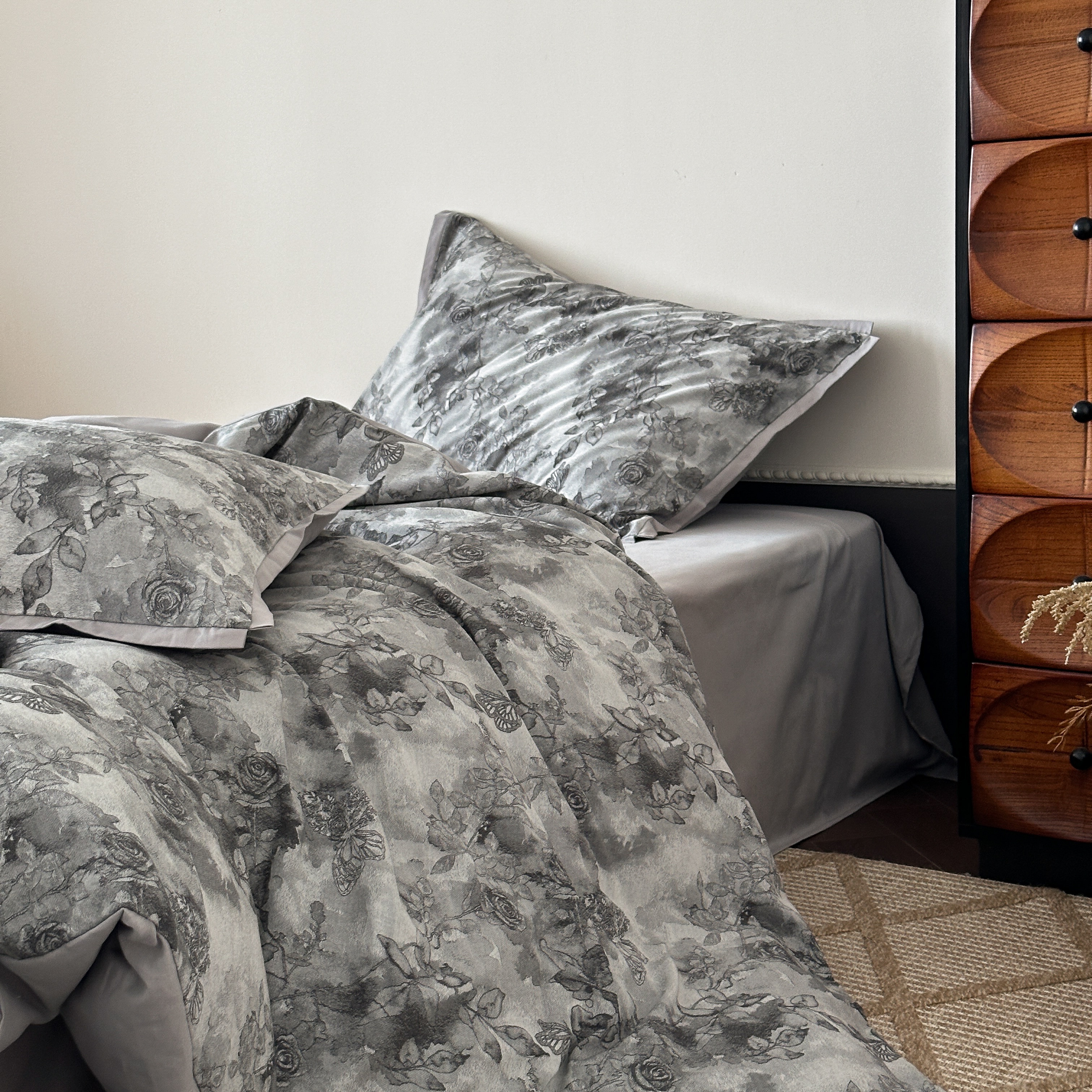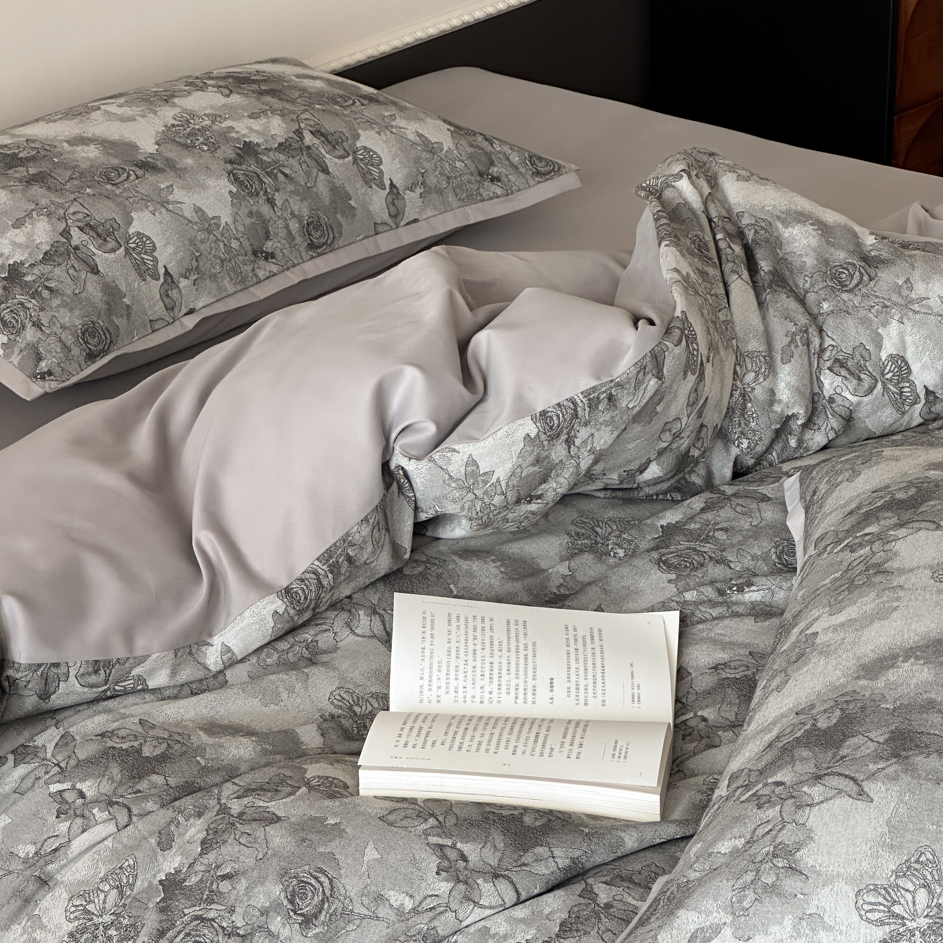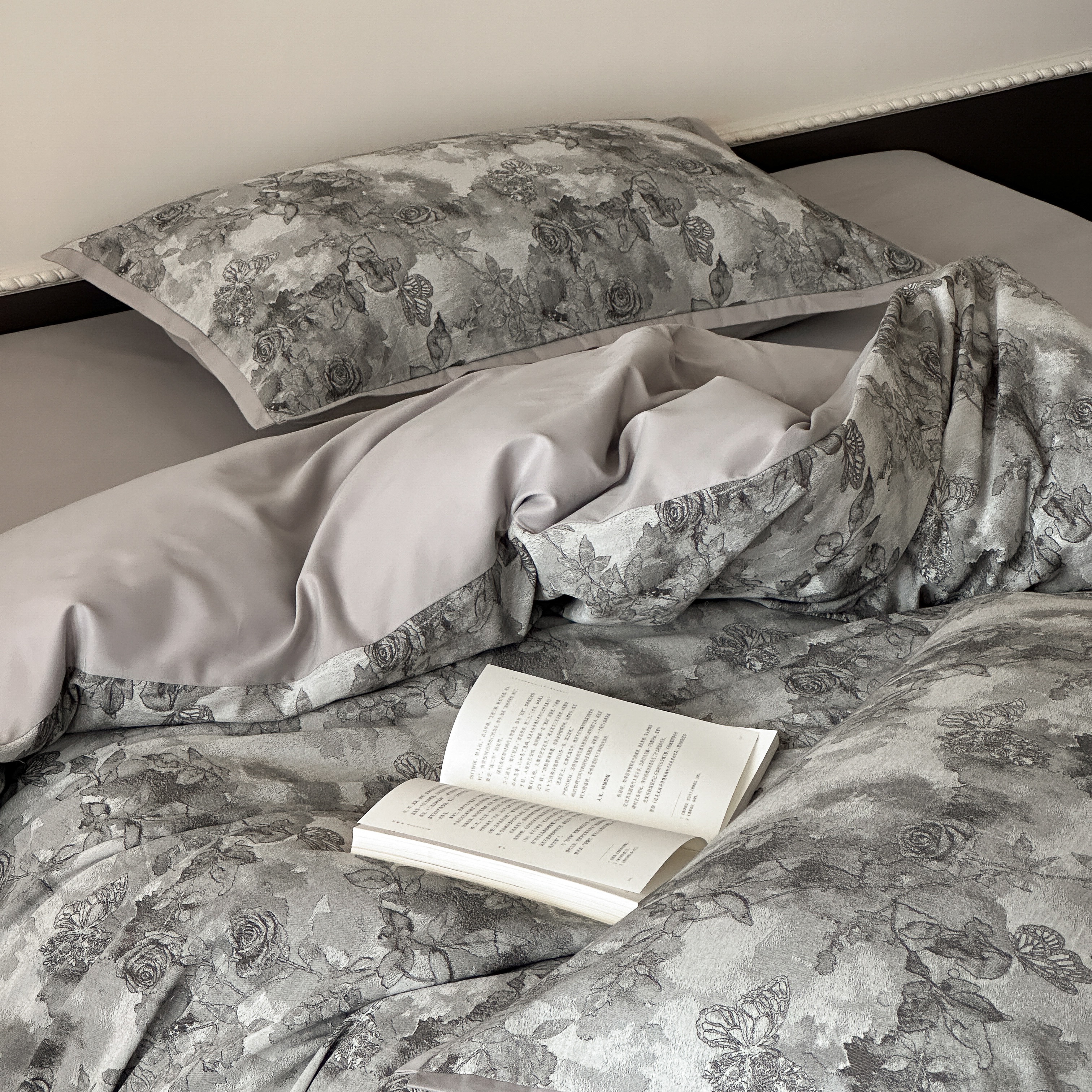 商品名称:旷野 2025新款双色提花100支磨毛四件套-薄雾玫瑰 薄雾玫瑰-乌木灰