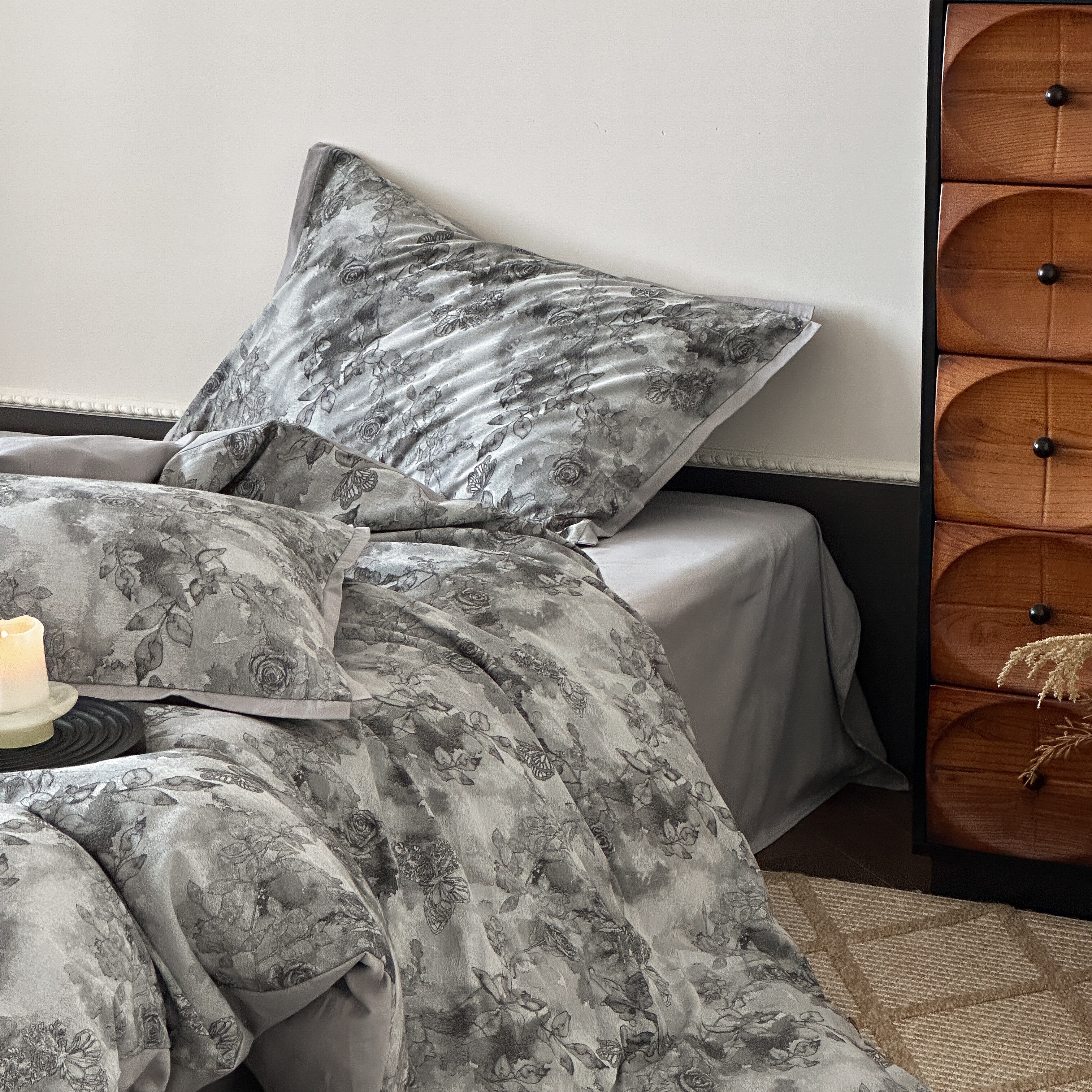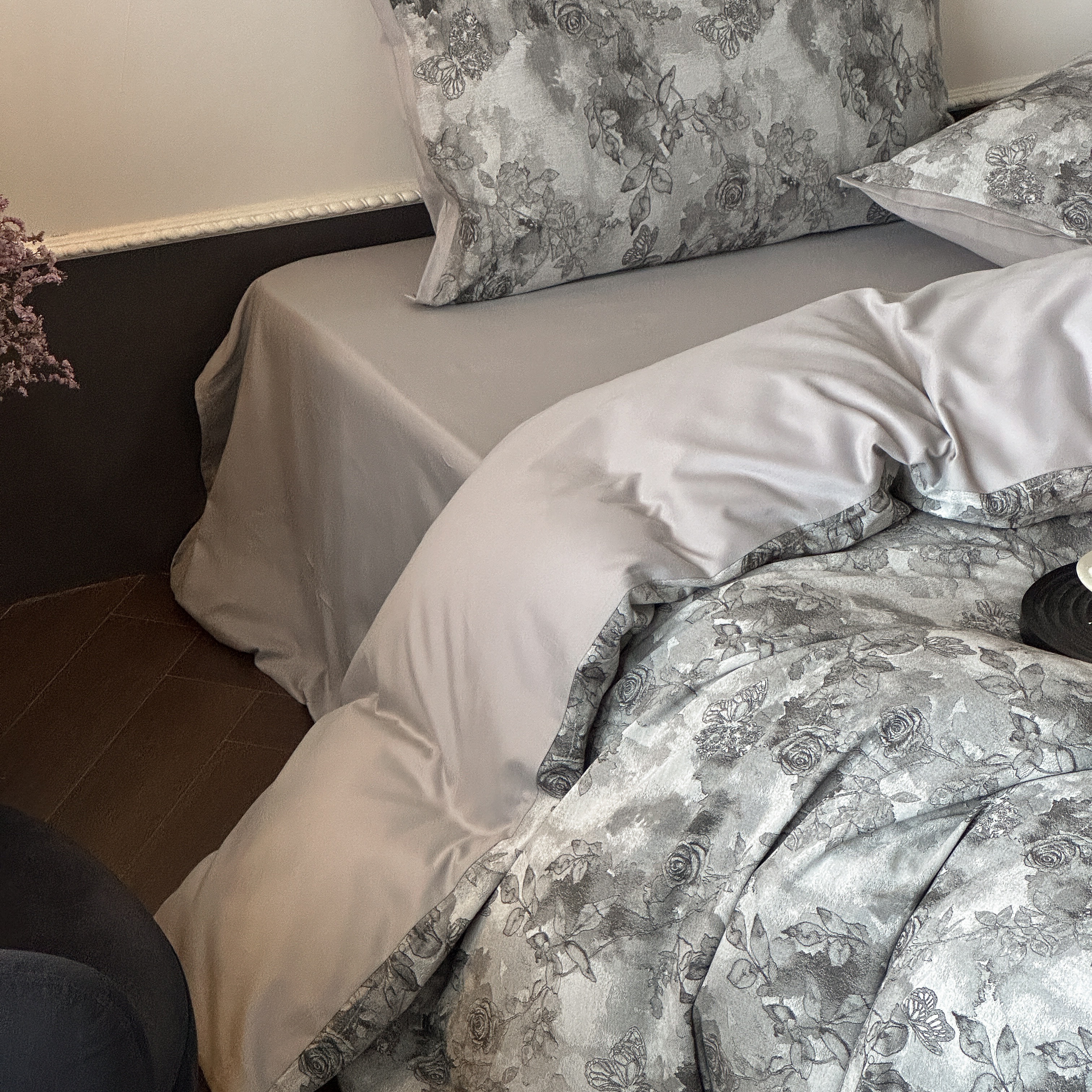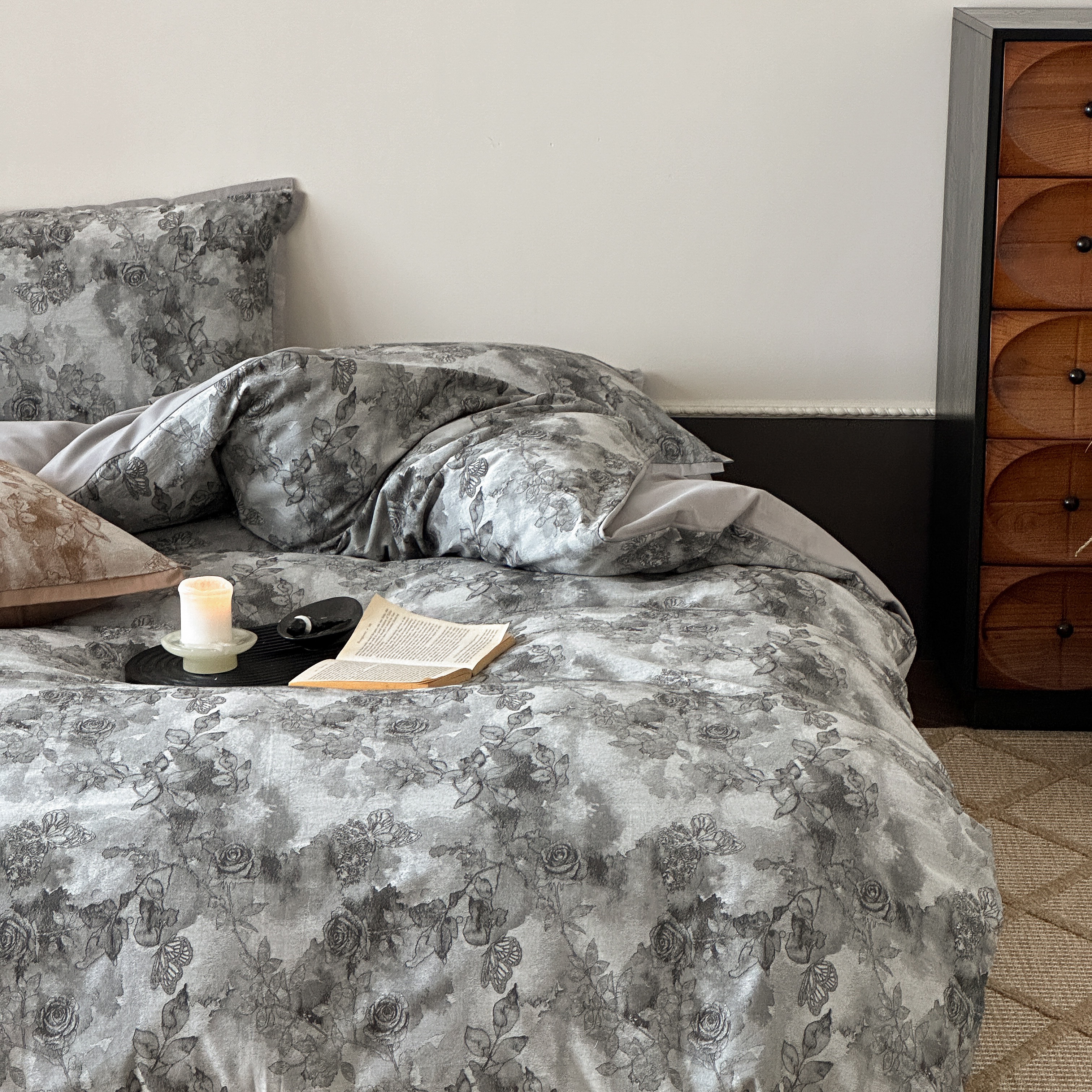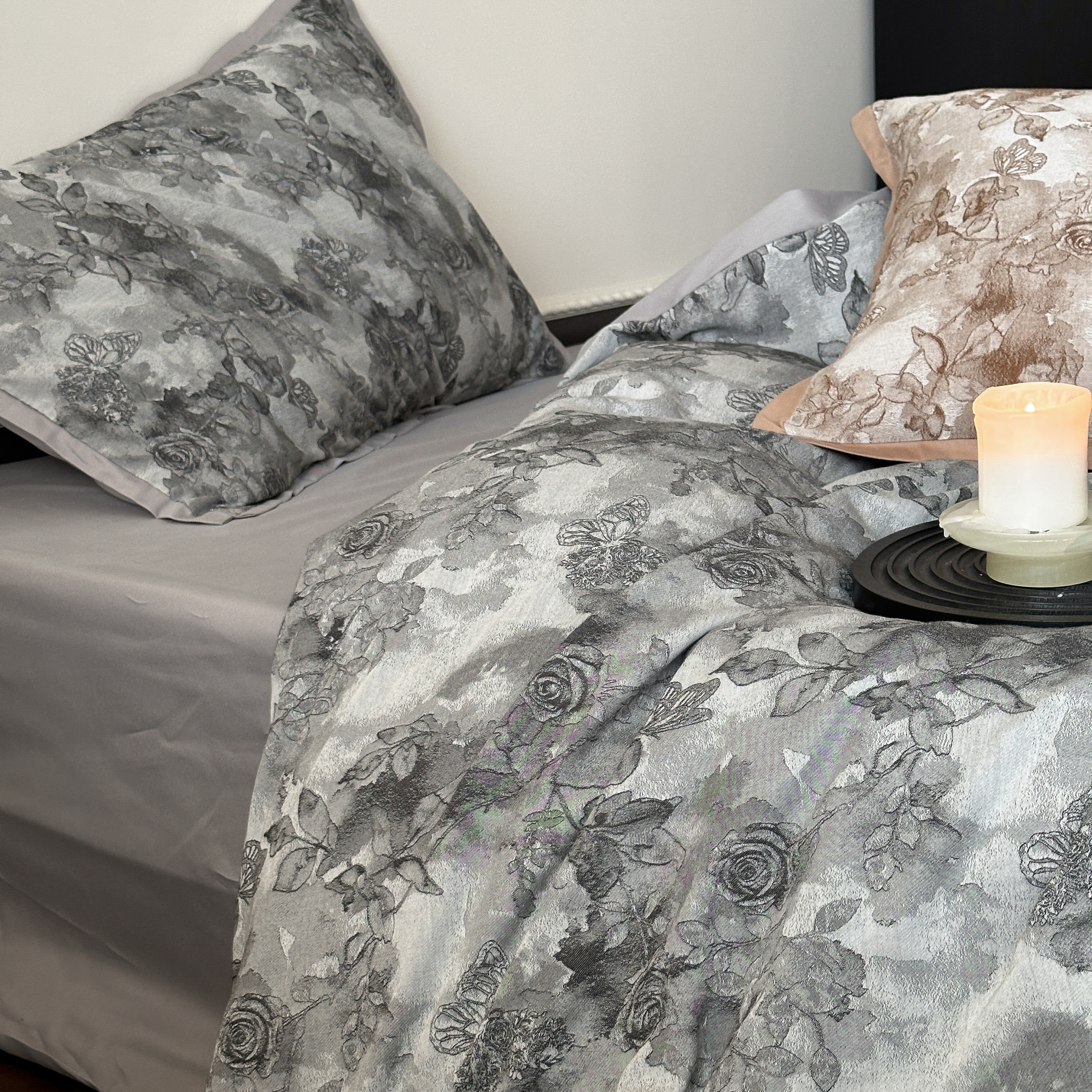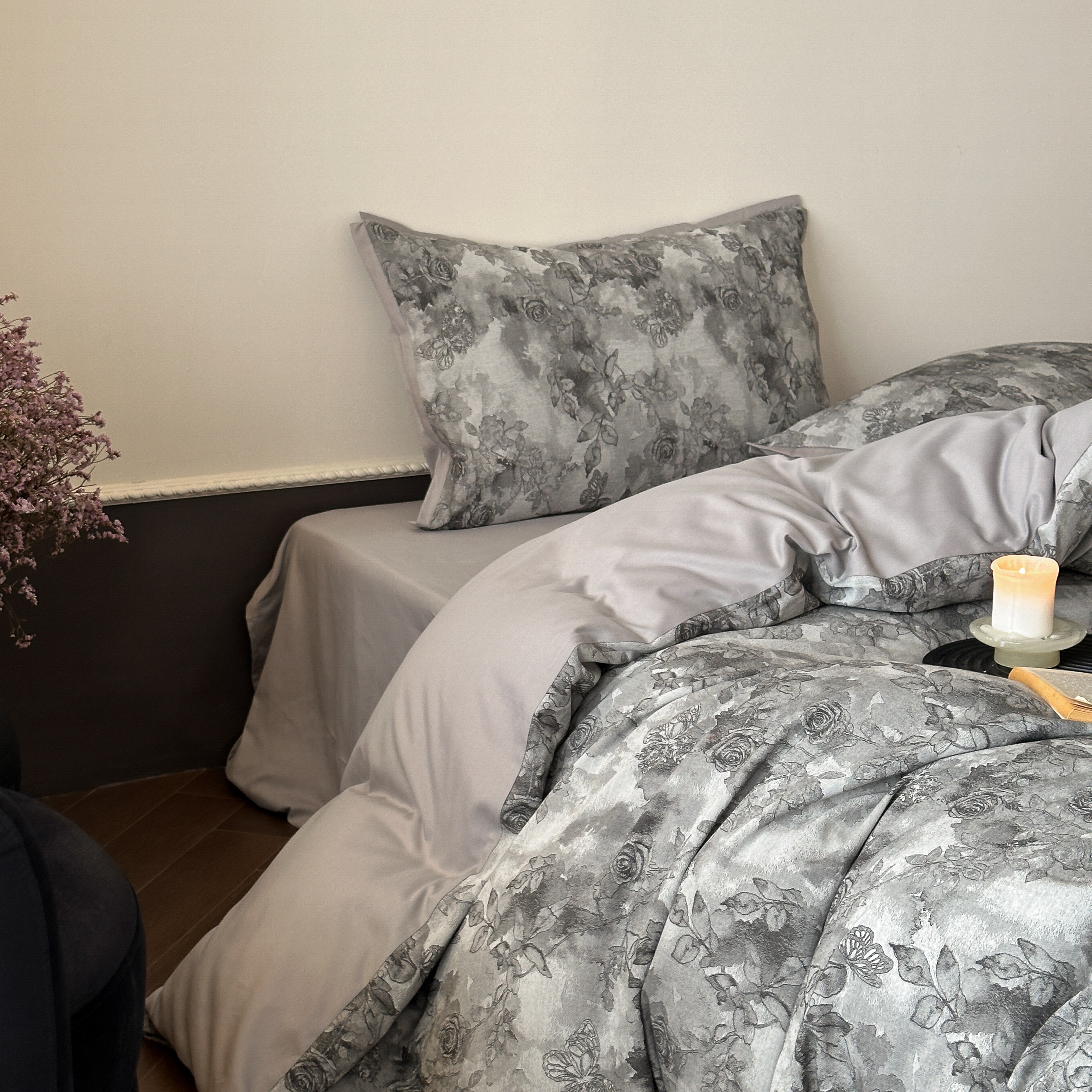 商品名称:旷野 2025新款双色提花100支磨毛四件套-薄雾玫瑰 薄雾玫瑰-乌木灰