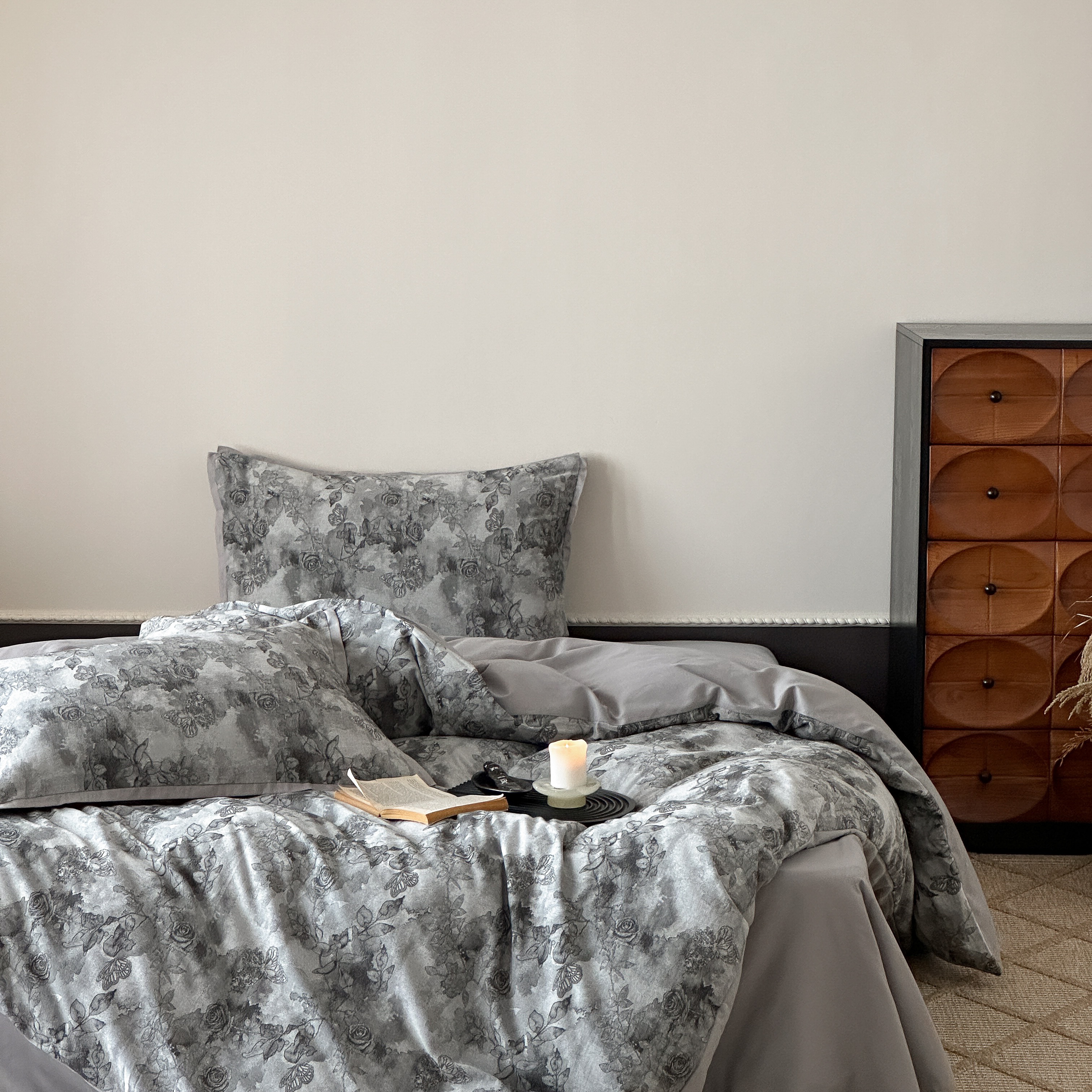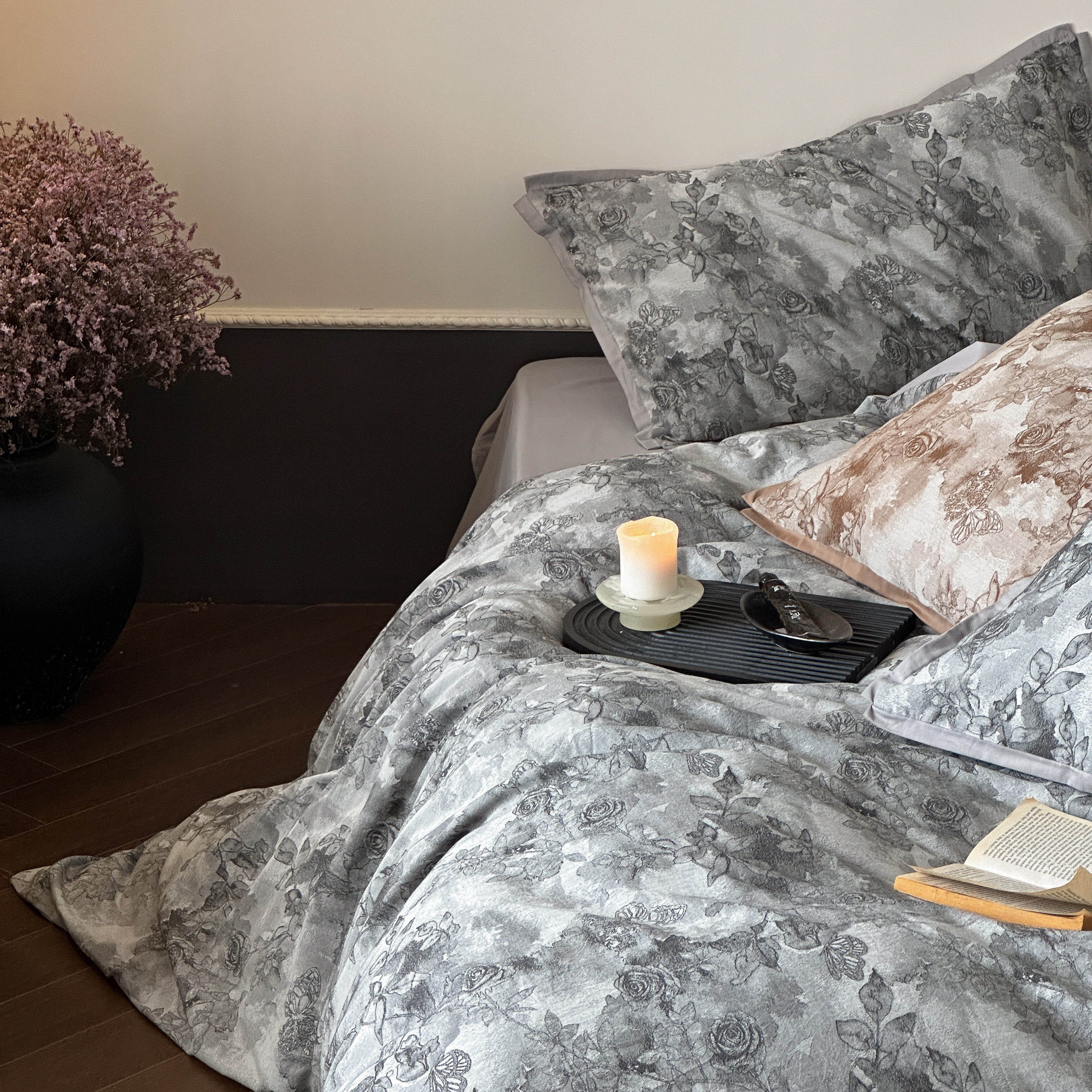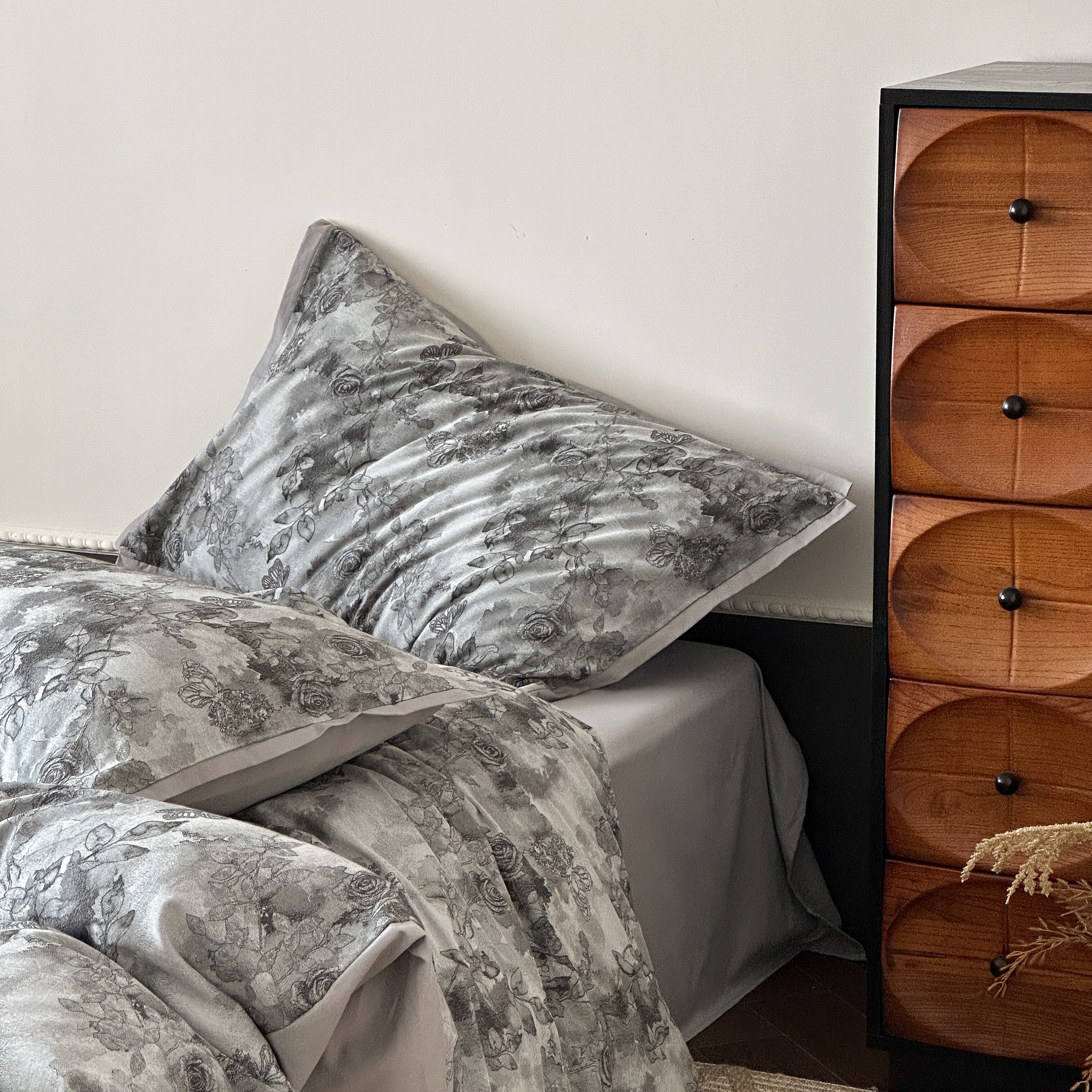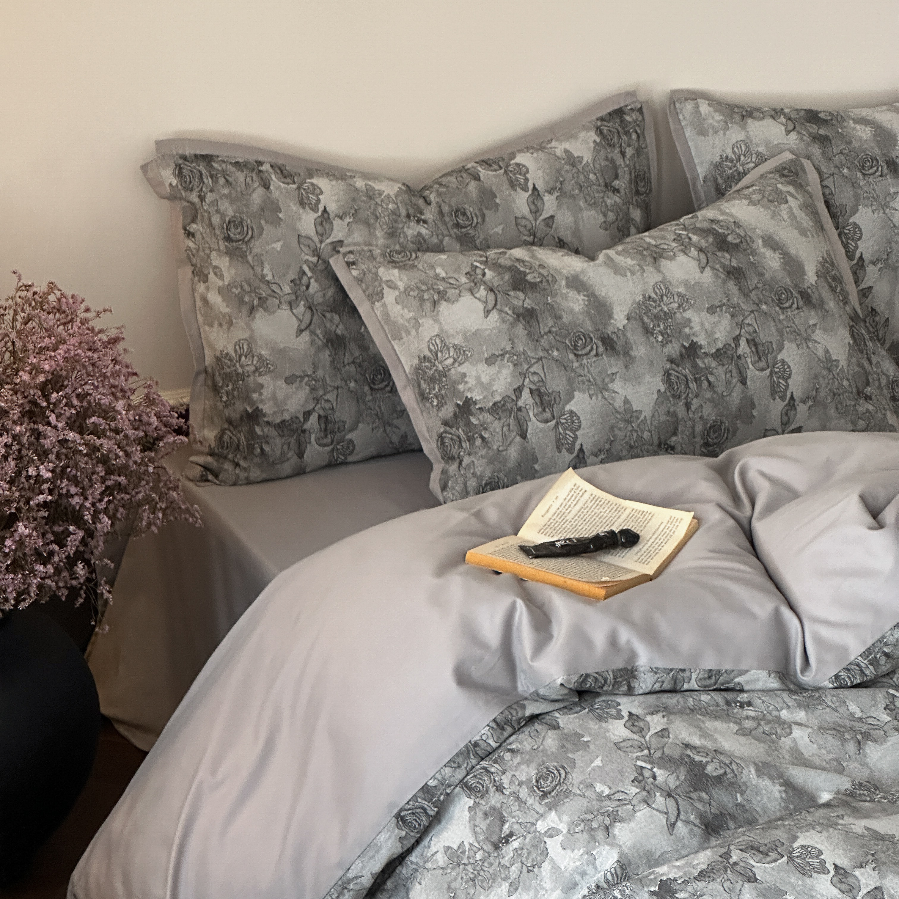 商品名称:旷野 2025新款双色提花100支磨毛四件套-薄雾玫瑰 薄雾玫瑰-乌木灰