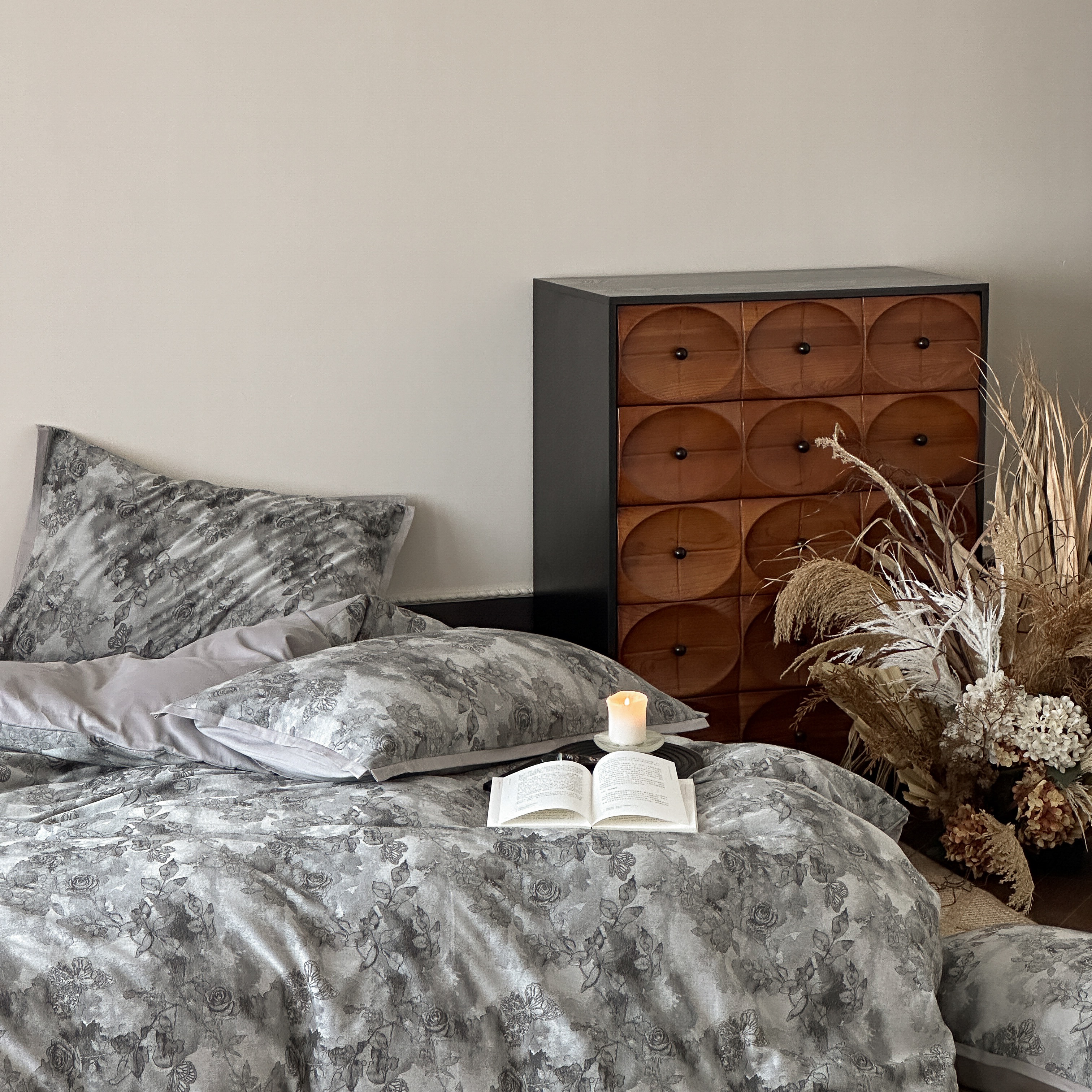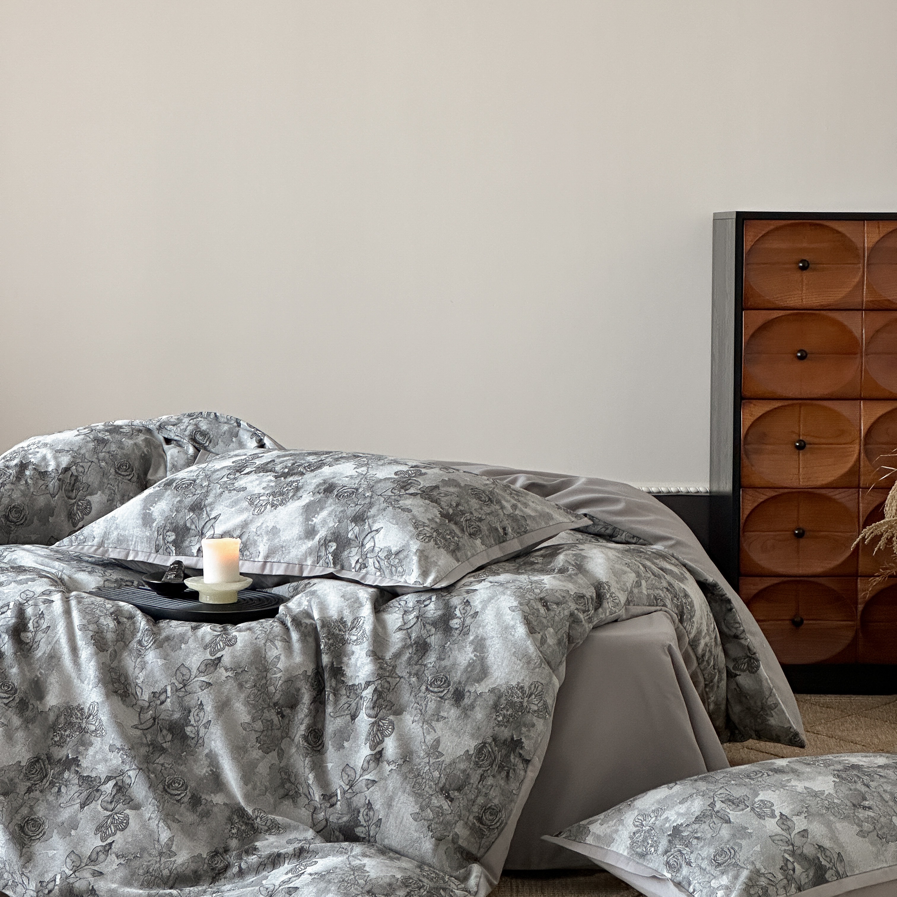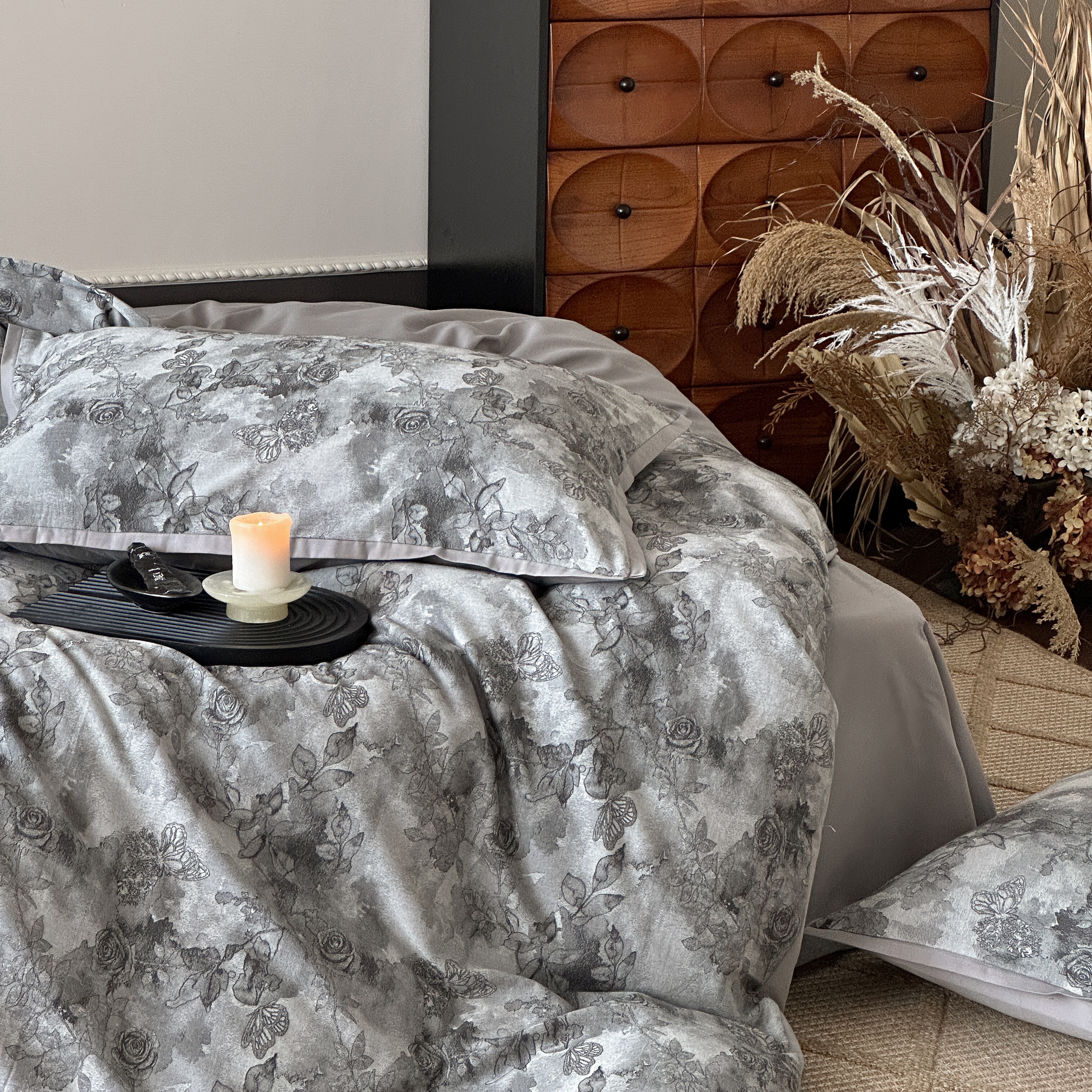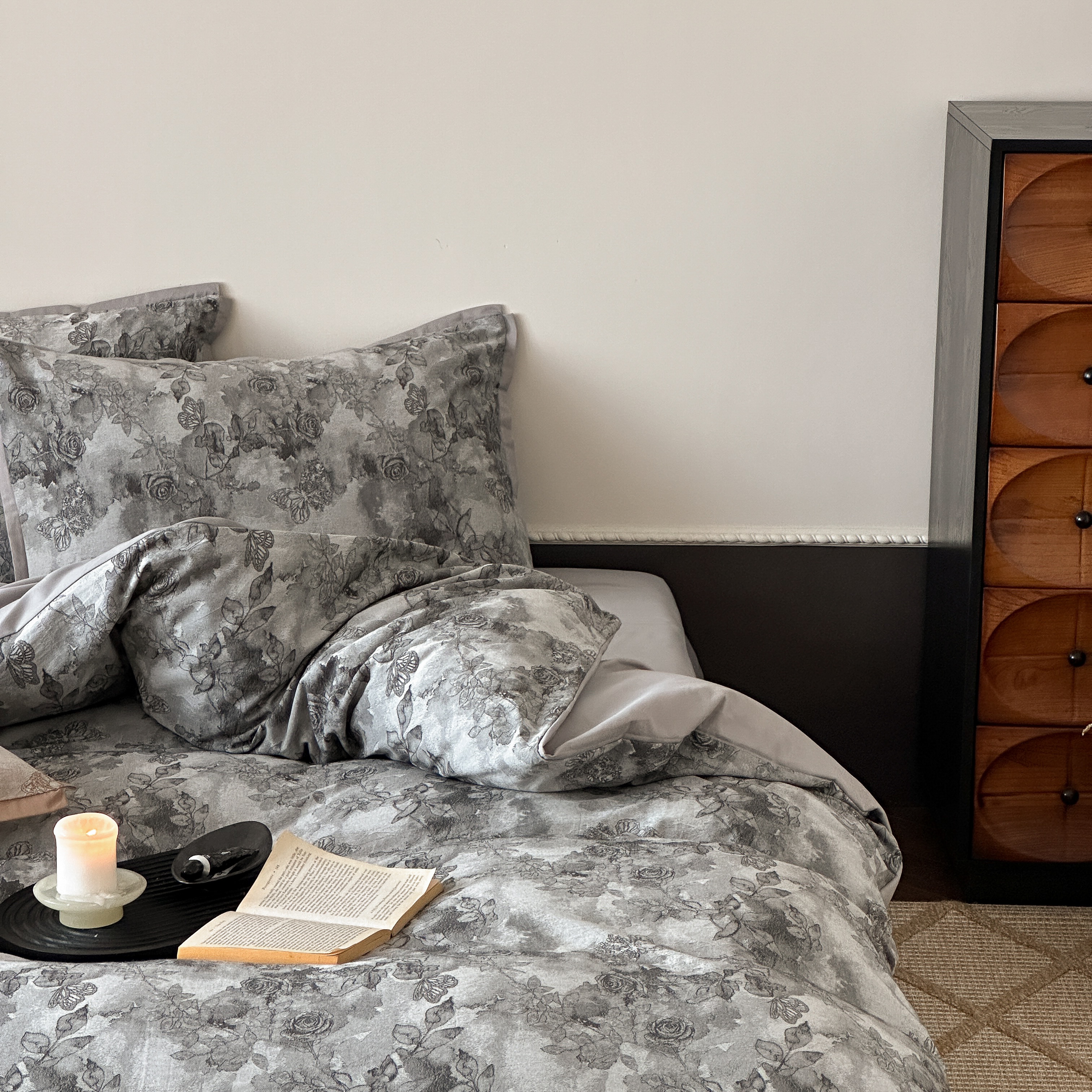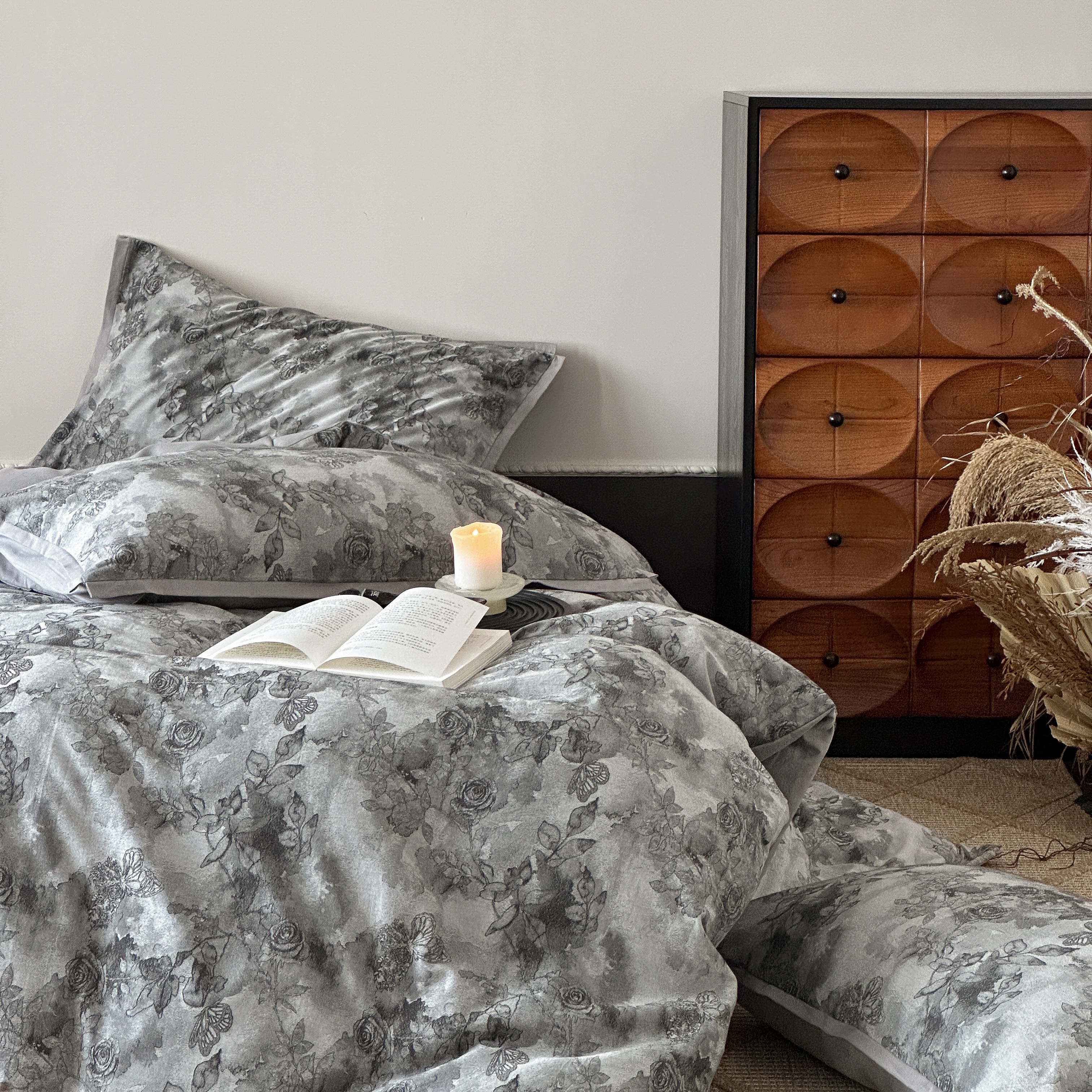 商品名称:旷野 2025新款双色提花100支磨毛四件套-薄雾玫瑰 薄雾玫瑰-乌木灰