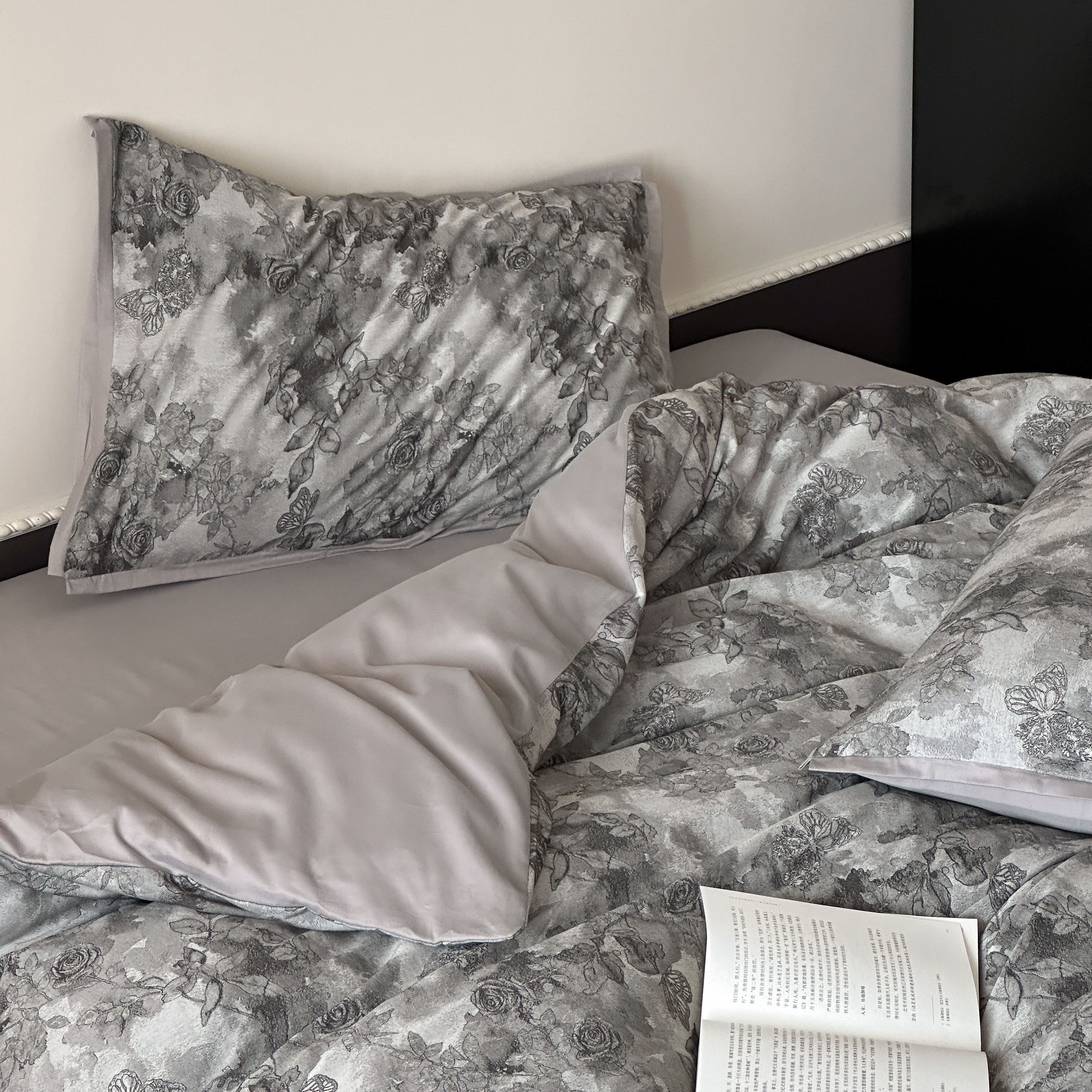 (总)旷野 2024双层纱碎花蕾丝拼接款四件套--柏林花事,柏林花事-粉,柏林花事-黑,柏林花事-奶咖