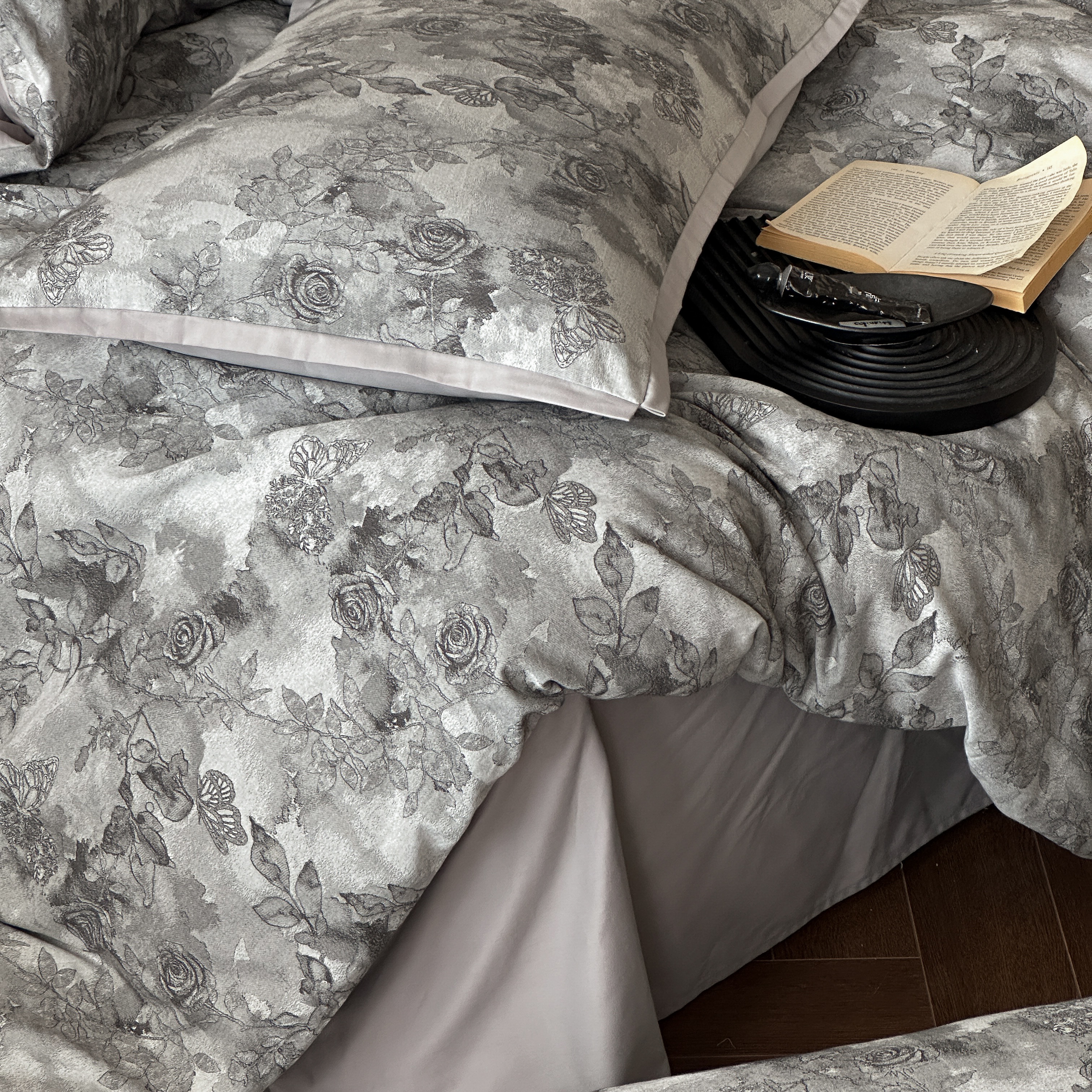 (总)旷野 2025新款空气层提花皱皱纱碎花边工艺款四件套-蝶梦,蝶梦