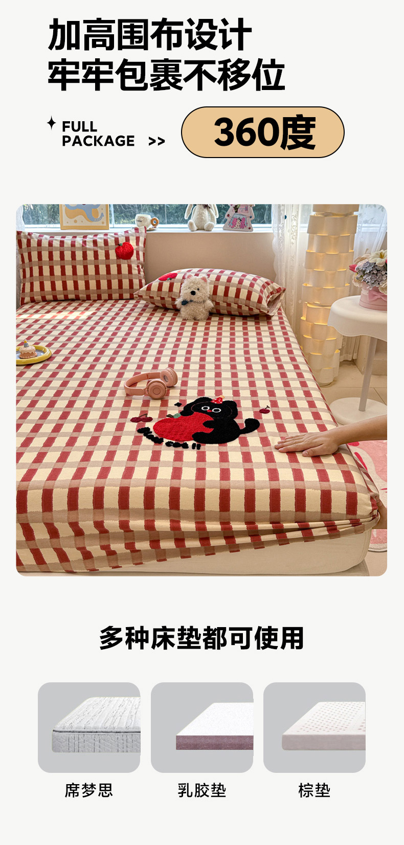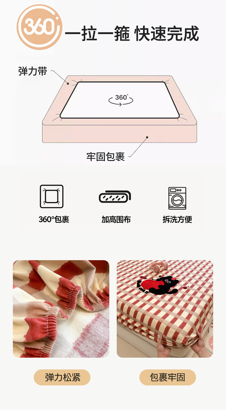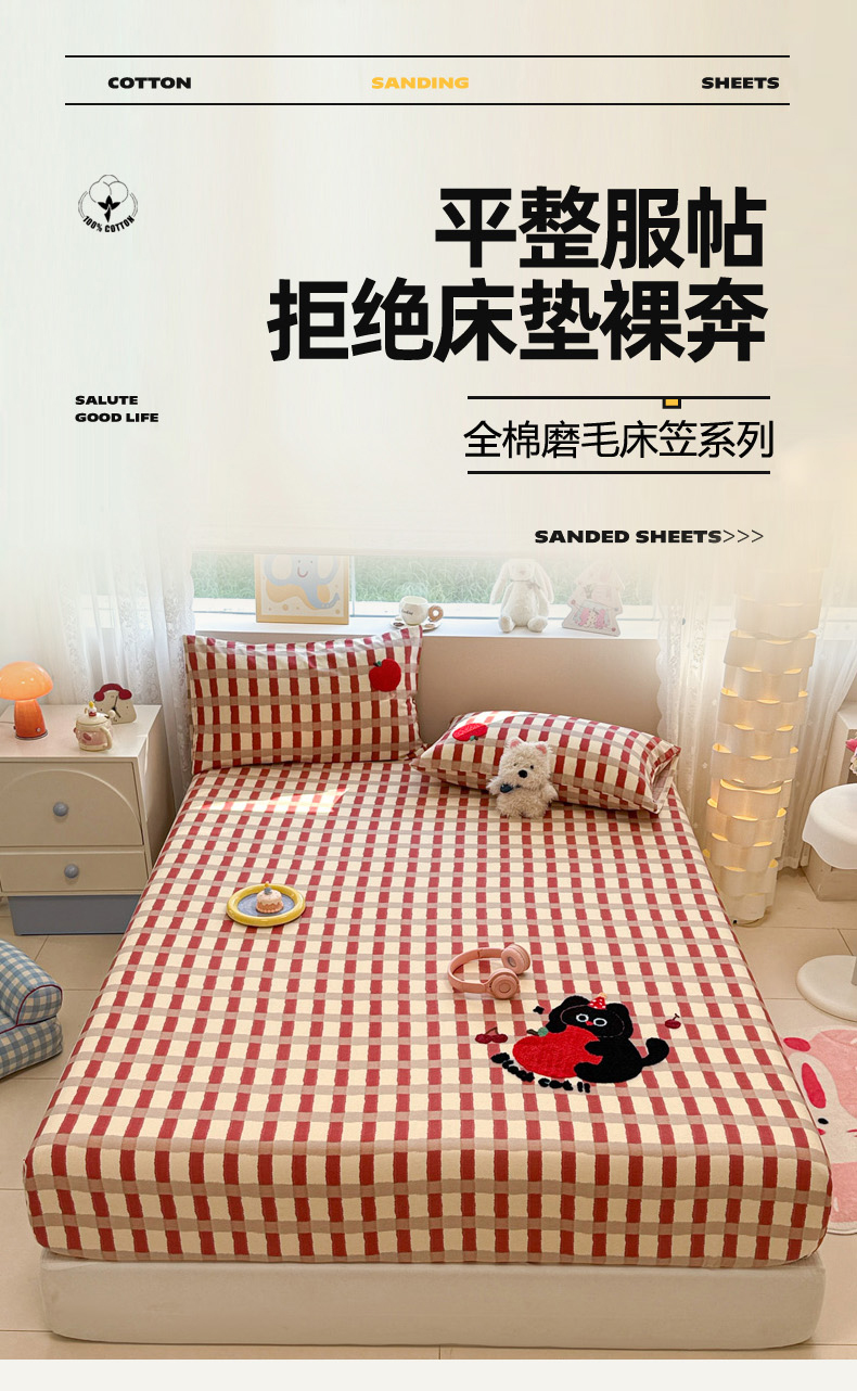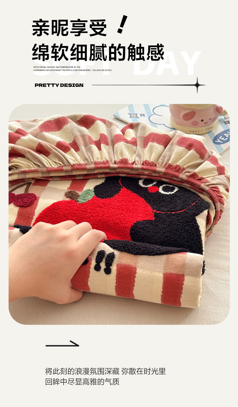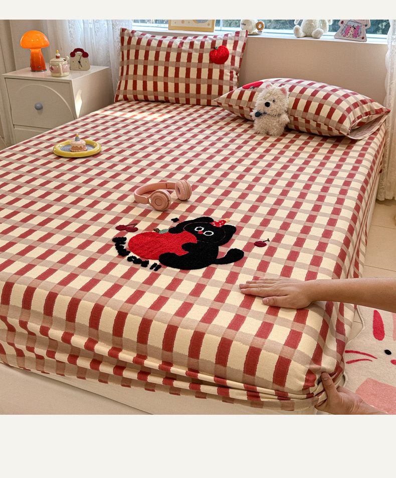慕尚家纺 2025新款全棉磨毛毛巾绣单床笠 床笠单件 黑猫警长