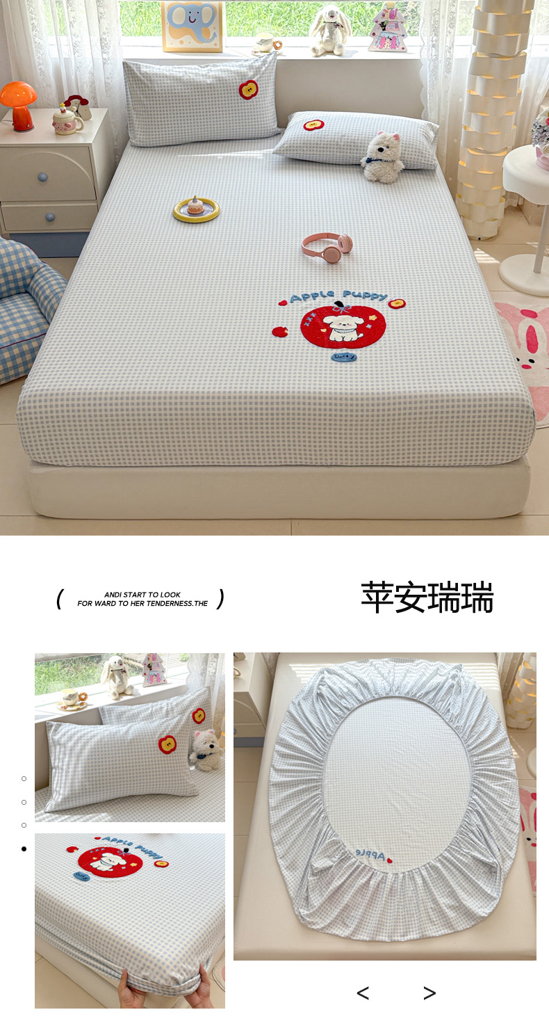 (总)慕尚家纺 2025新款全棉印花学生三件套套件,艾米熊,彩色爱心狗,铃兰花,美食派对,萌宠乐园,书生猫咪,桃心狗,汪可爱,旺旺,樱桃