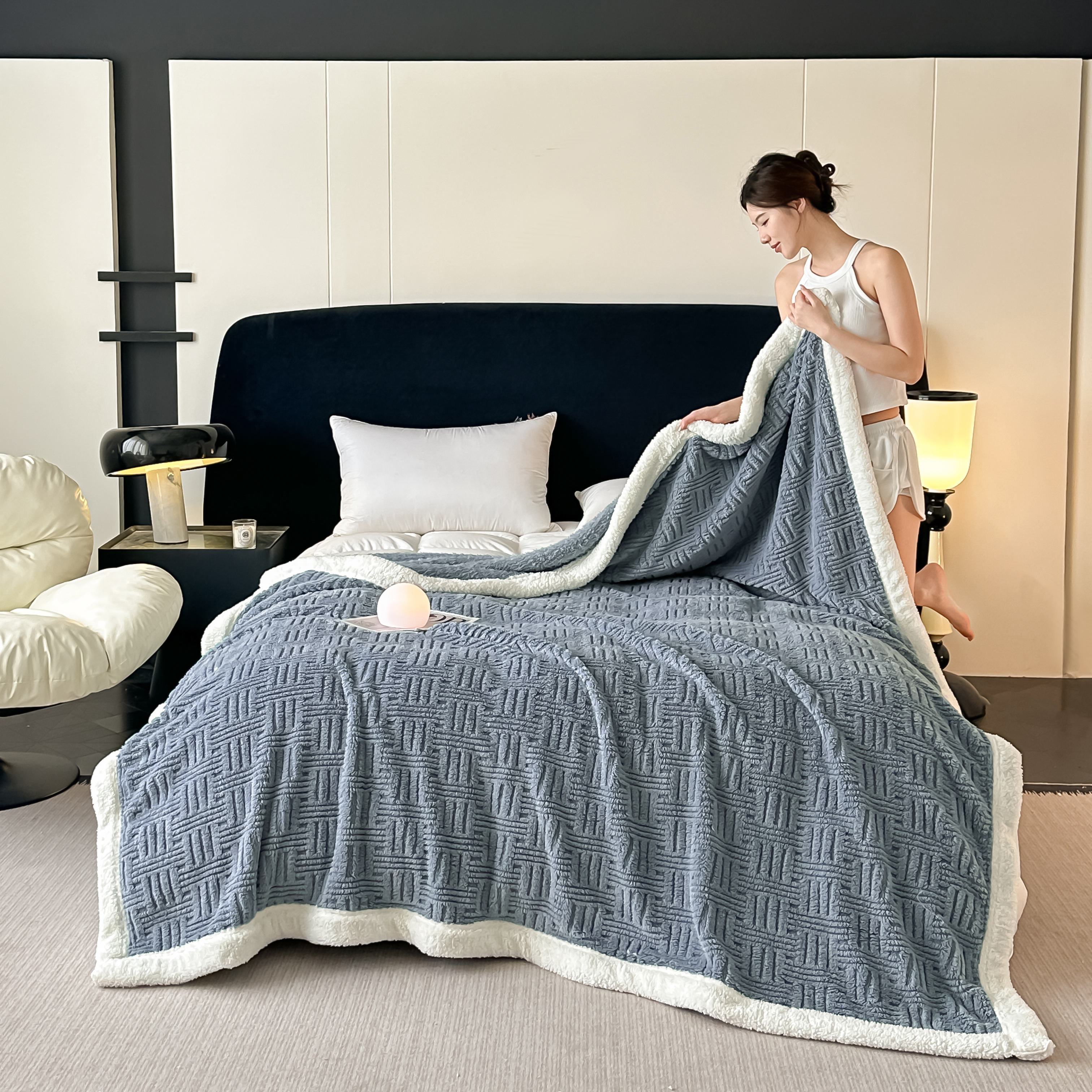 (总)永耀家纺 2025新款牛奶绒冬被羊羔绒被子跨境外贸电商直播网销供货,灰色,蓝色