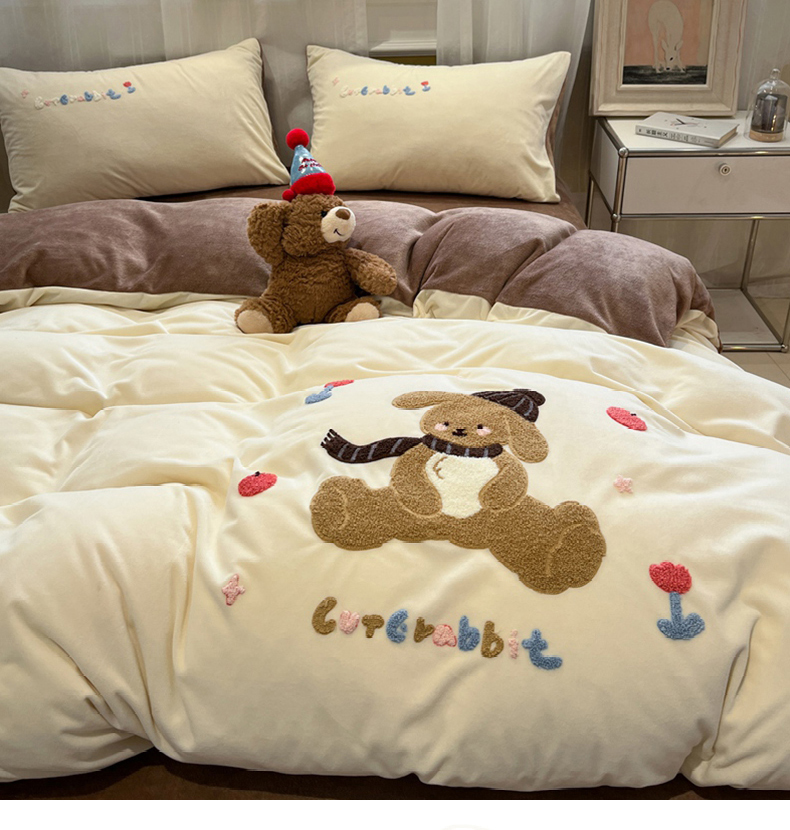 (总)麦空家居 2025新款高克重A类A版宝宝绒B版牛奶绒毛巾绣三件套四件套,小象-深驼,巴比兔-奶白,巴比兔-浅蓝,哈基咪-奶白,哈基咪-香槟,哈欠熊-奶白,哈欠熊-浅蓝,派对熊猫-浅蓝,派对熊猫-香槟,糖心女孩-橙意粉,糖心女孩-香草灰,小象-香槟