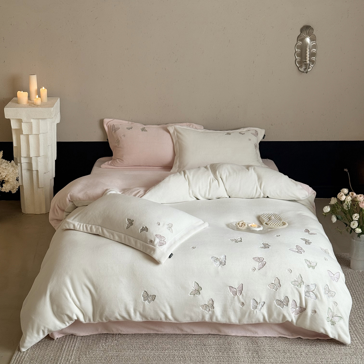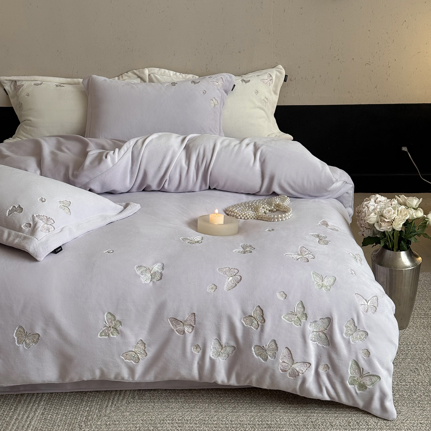 当前位置: 91家纺网 > 商品网购 > 床品套件 > 四件套 > 牛奶绒四件套 > 鹿班家居 2025新款冬季高克重牛奶绒精密刺绣系列四件套-温柔浅梦(标准会员-10元) 温柔浅梦-白色