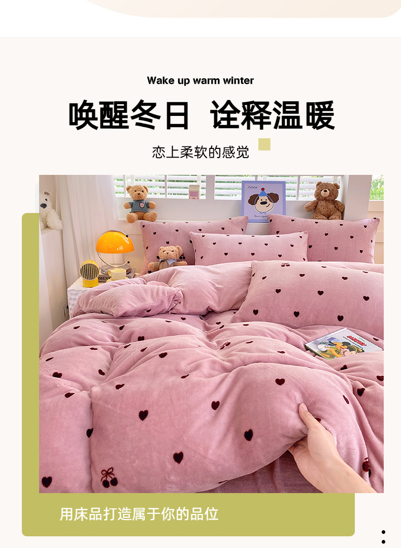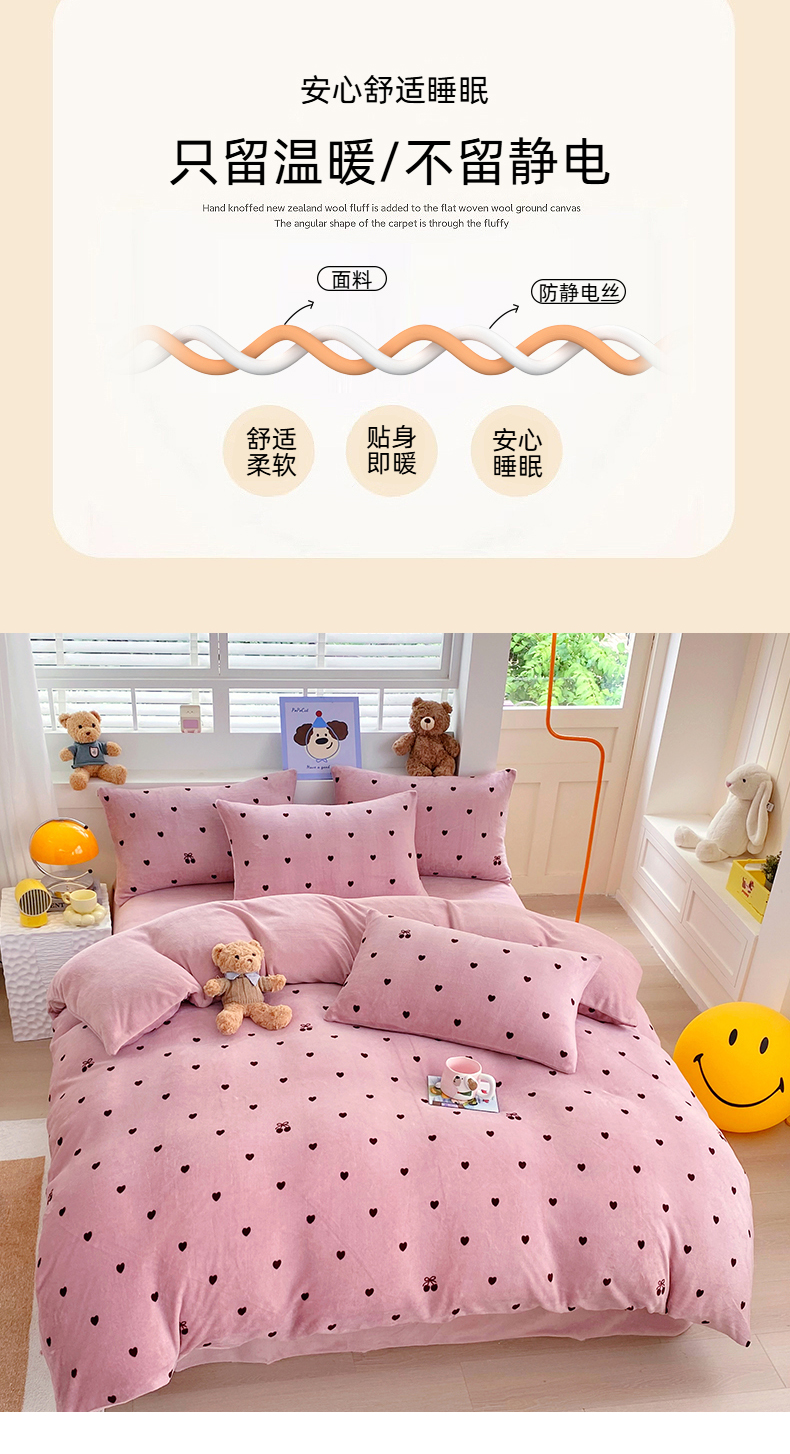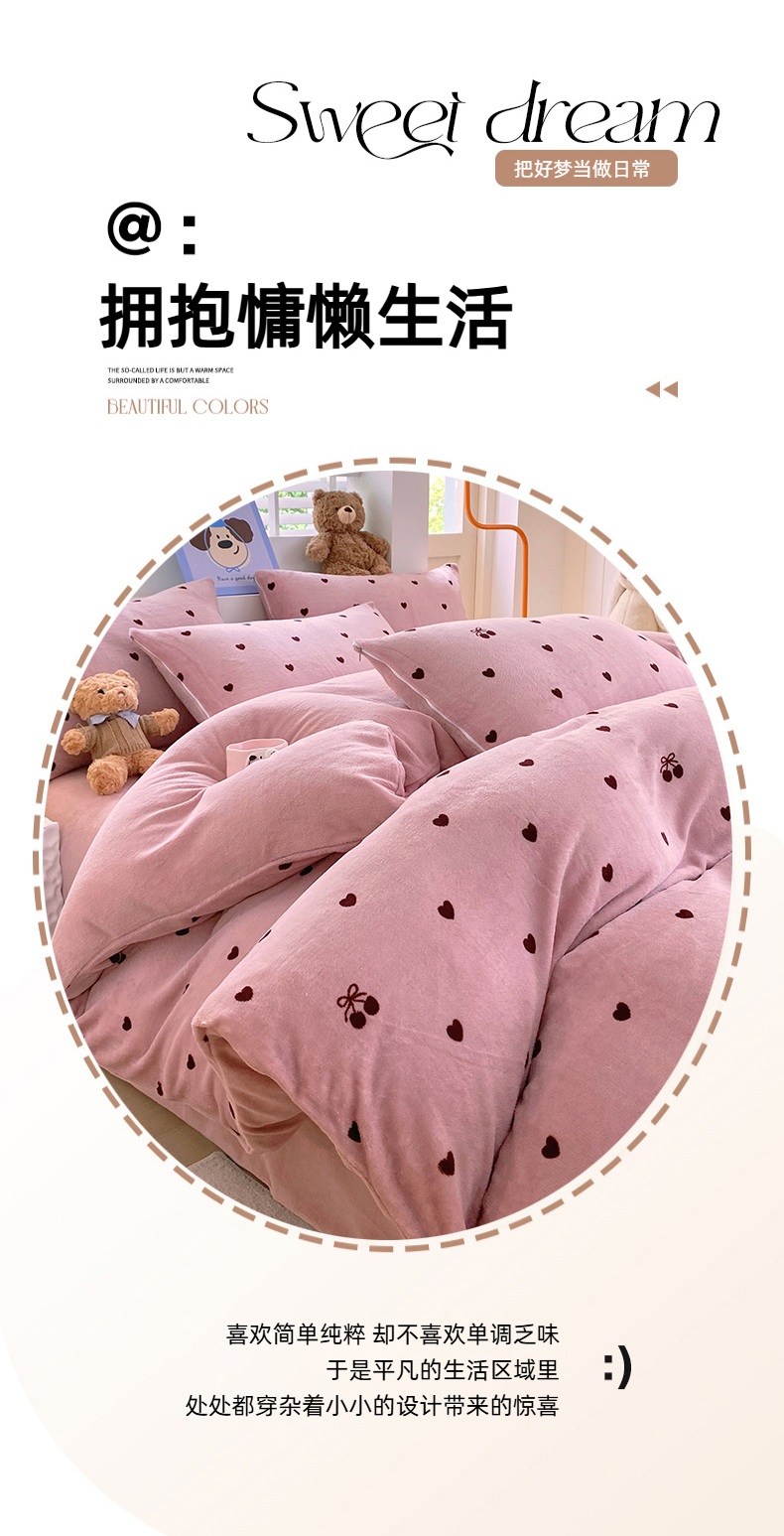 当前位置: 91家纺网 > 商品网购 > 床品套件 > 四件套 > 牛奶绒四件套 > YYDS网供 2025新款ins风牛奶绒四件套萌趣卡通三件套花卉单被套秋冬软fufu防静电 爱心樱桃草莓
