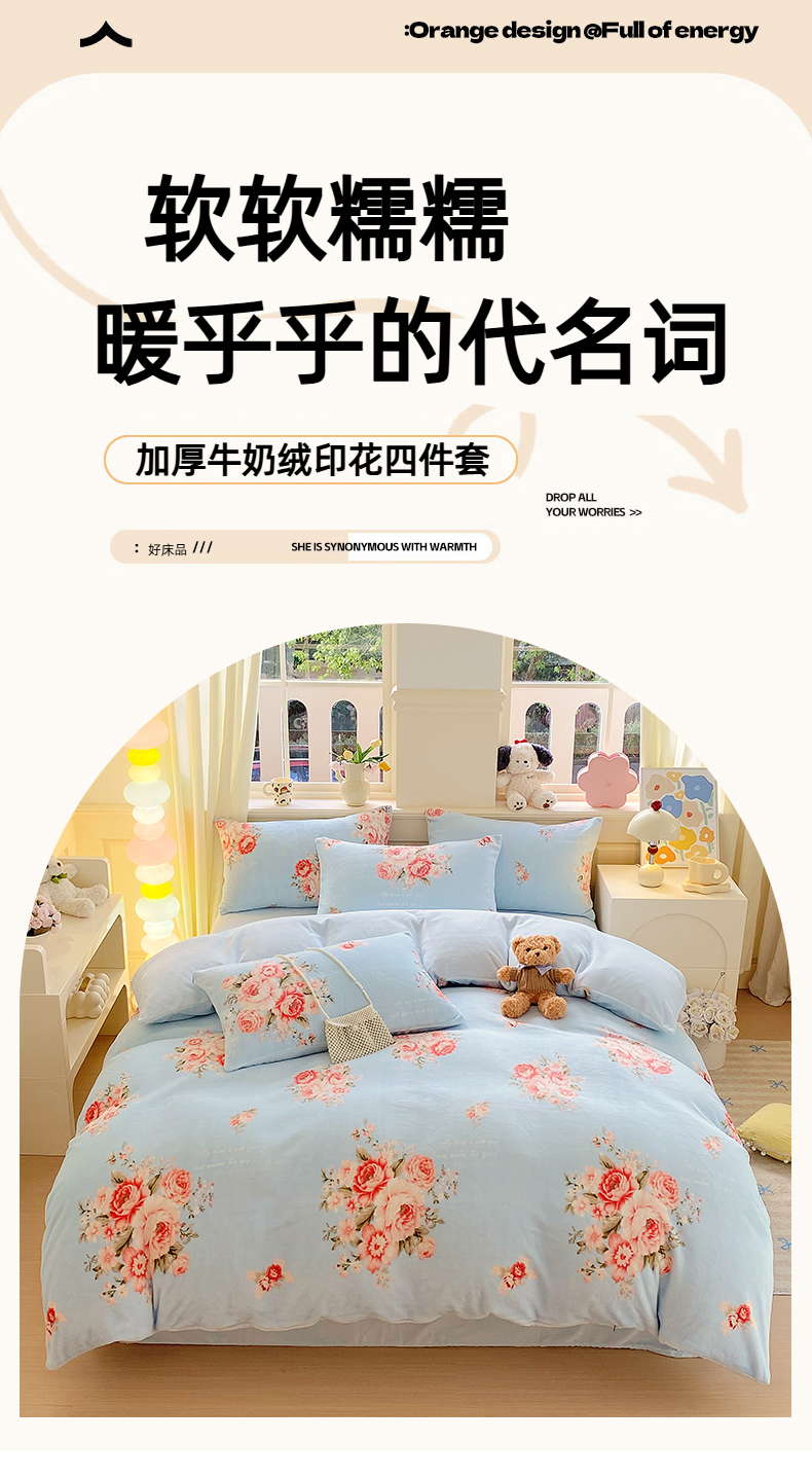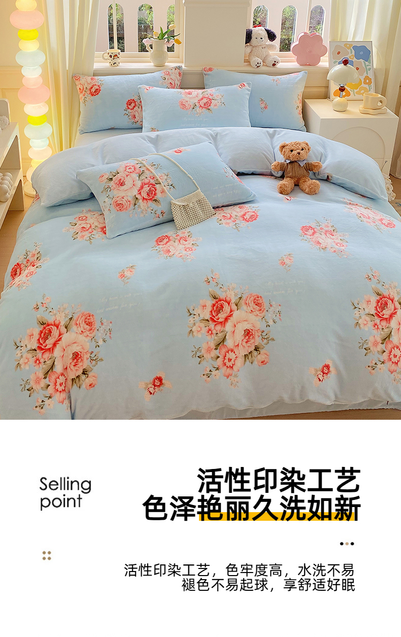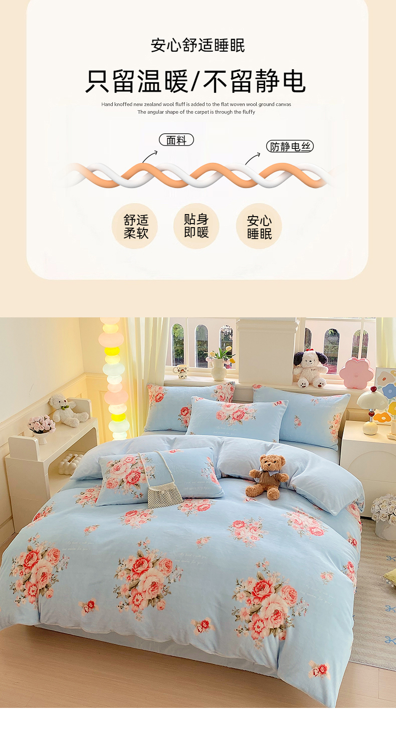 当前位置: 91家纺网 > 商品网购 > 床品套件 > 四件套 > 牛奶绒四件套 > YYDS网供 2025新款ins风牛奶绒四件套萌趣卡通三件套花卉单被套秋冬软fufu防静电 丽丝鲜花绽放