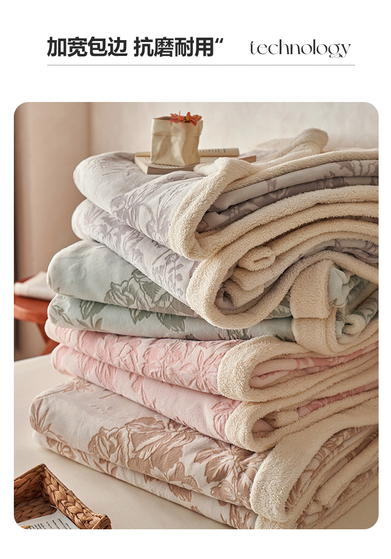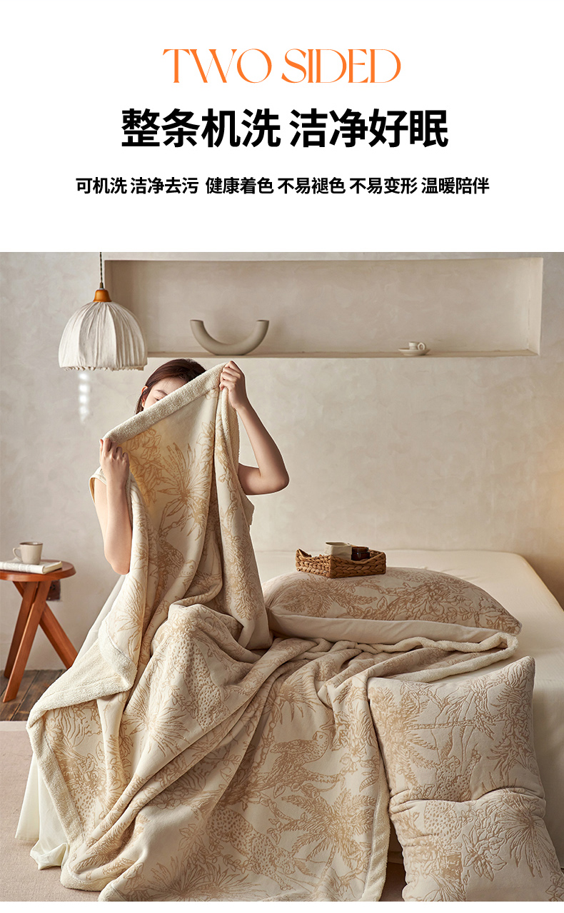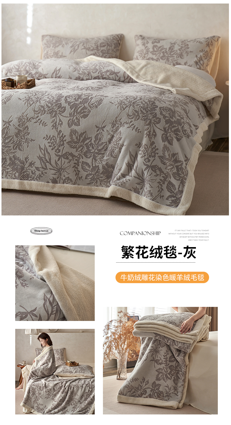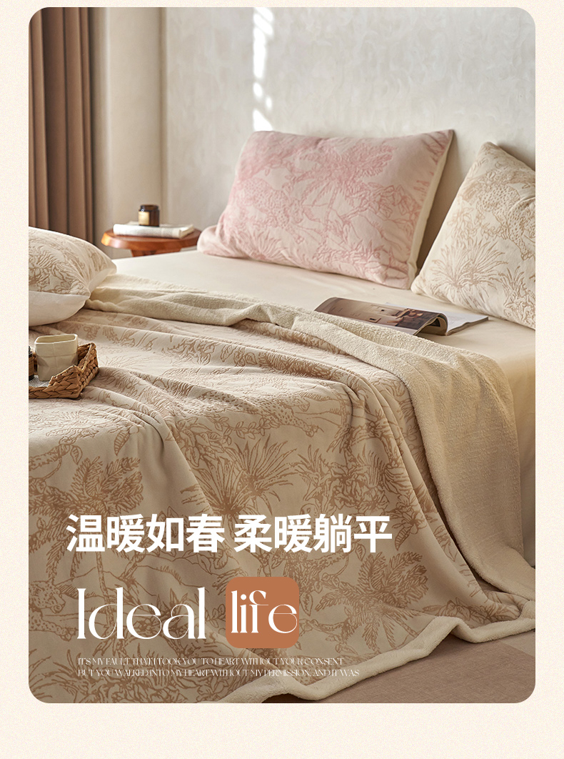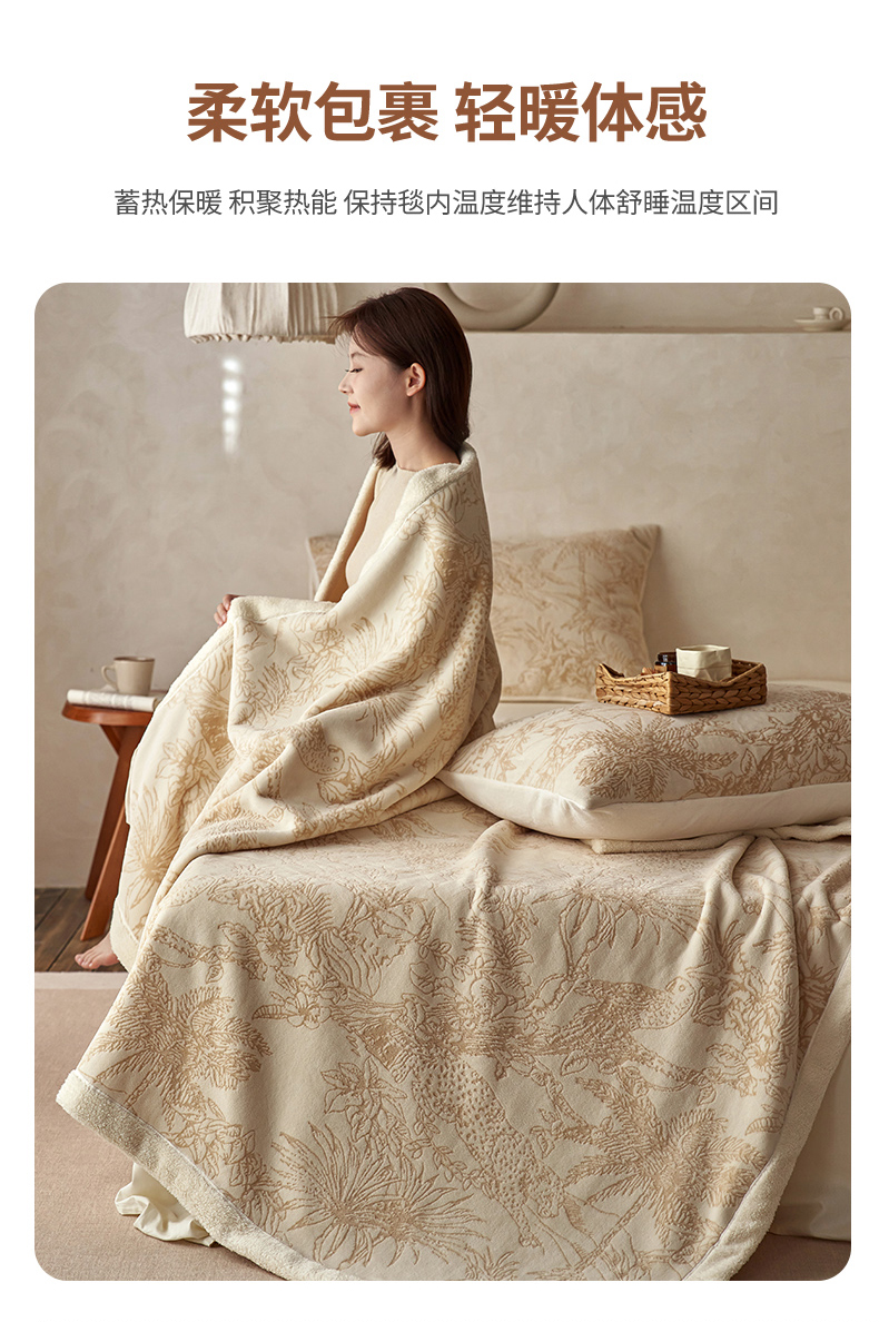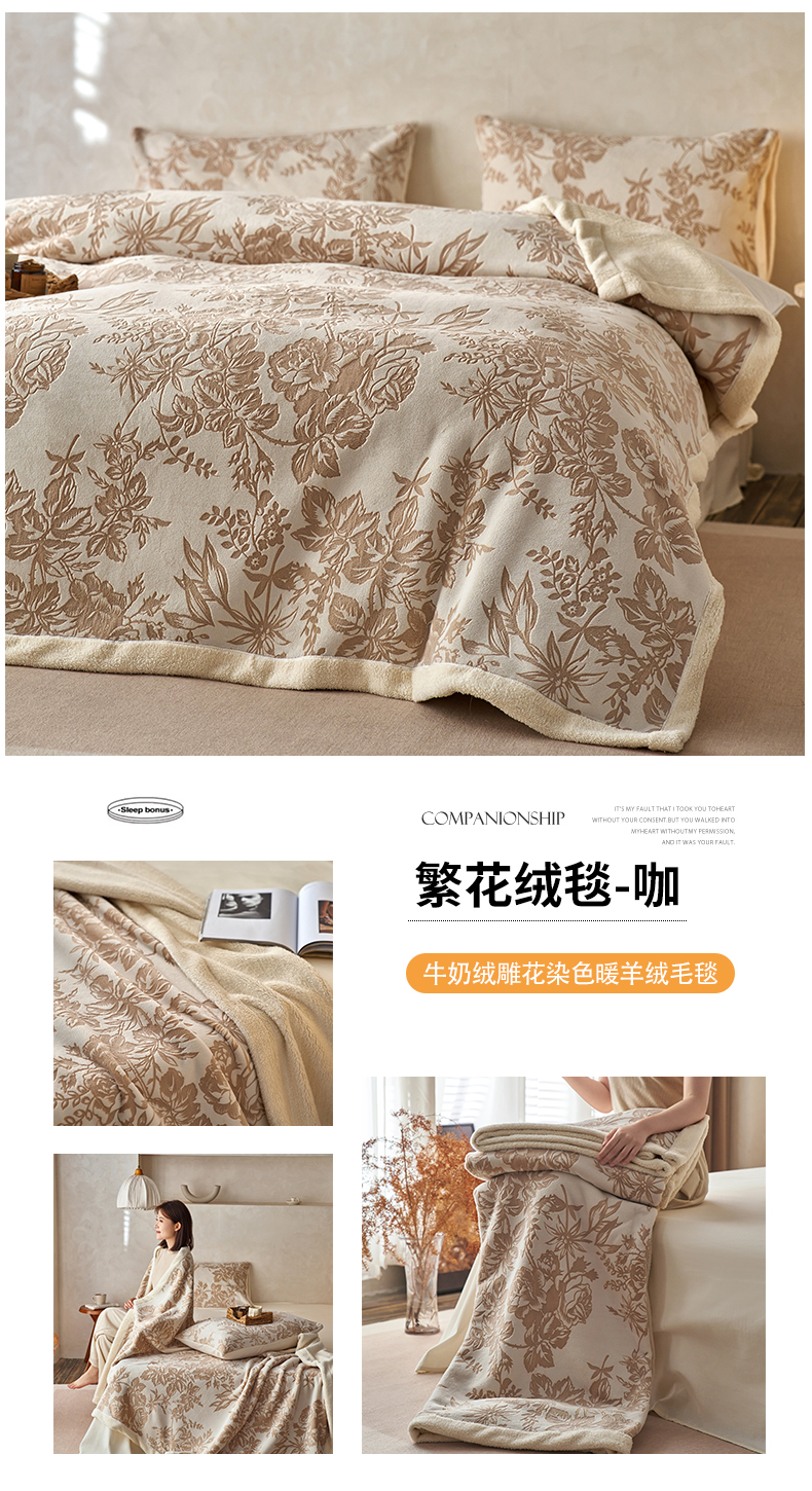 宜代光年 2025新款牛奶绒雕花复合毛毯系列 丛林绒毯-咖