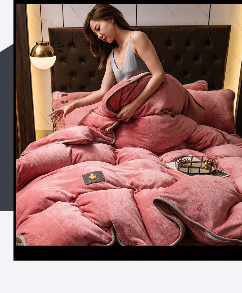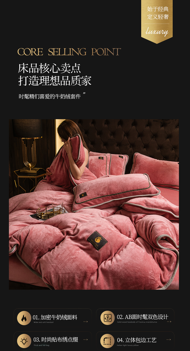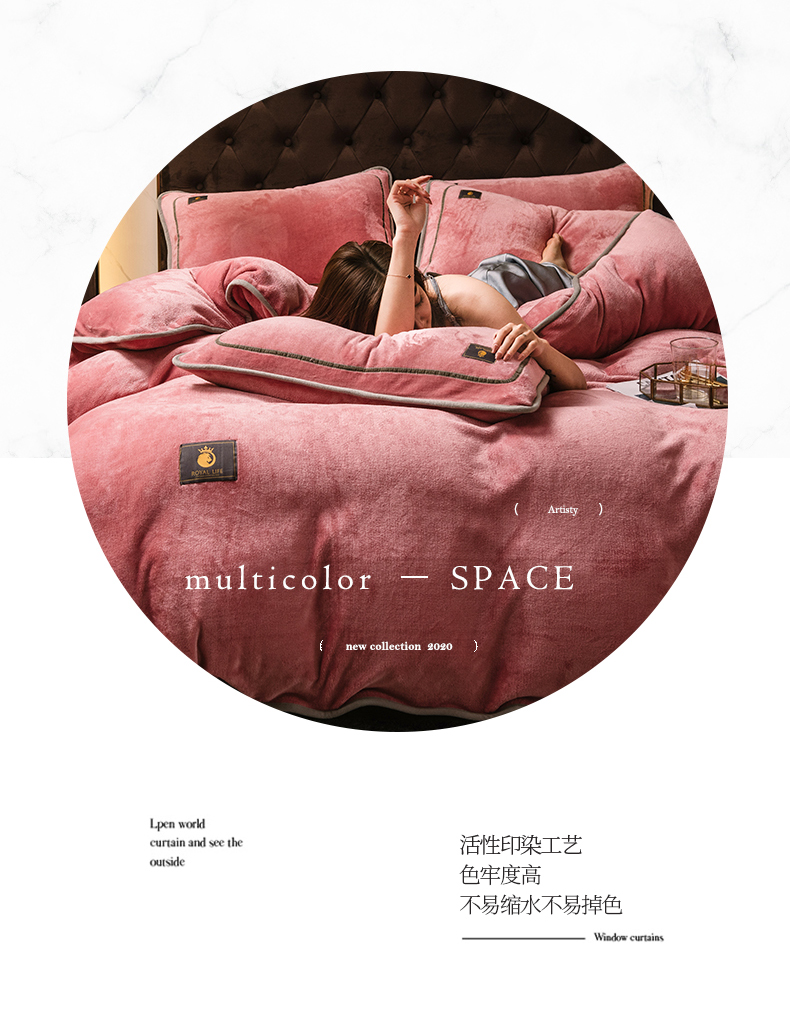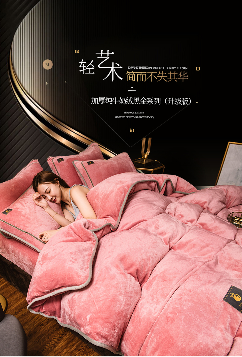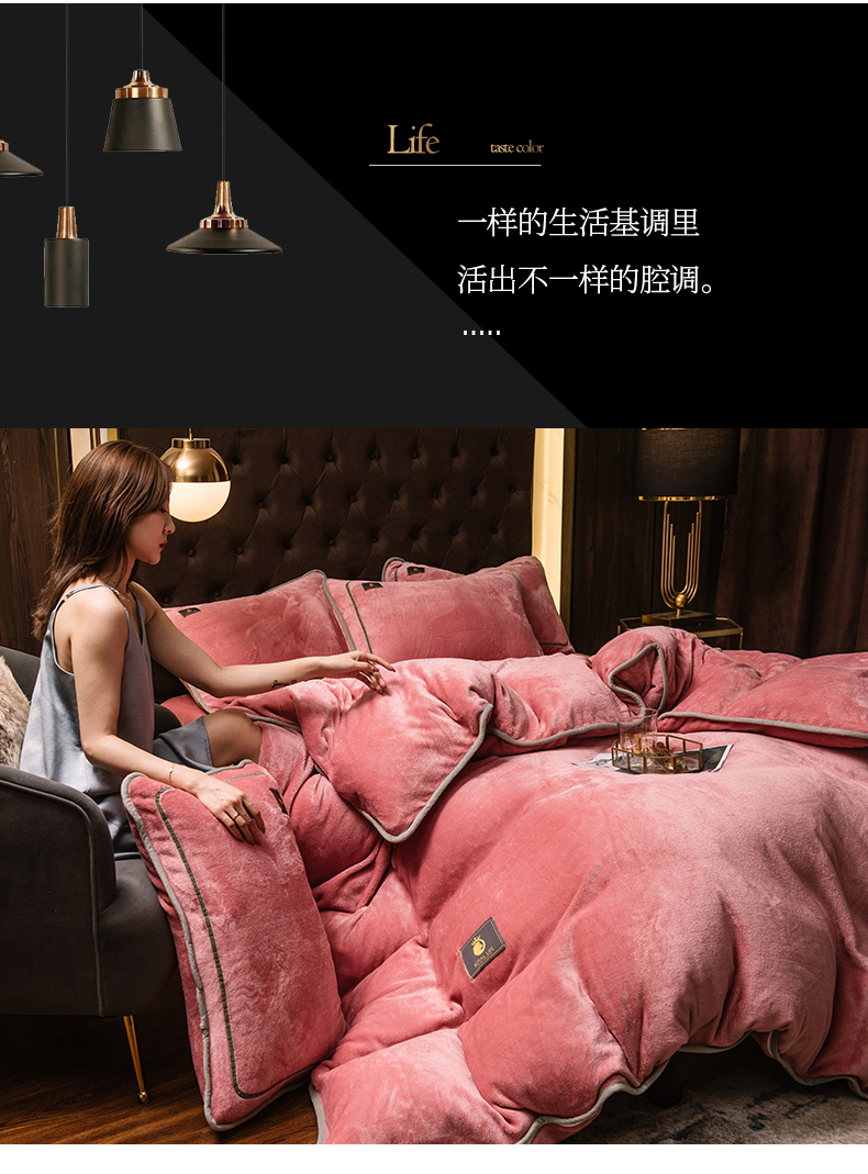 商品名称:宜代光年 2025新款加厚保暖纯色牛奶绒黑金四件套系列 胭脂红