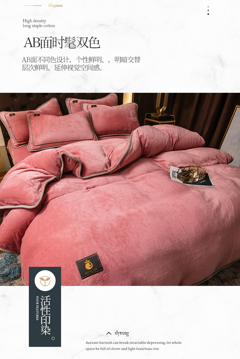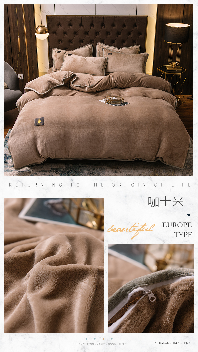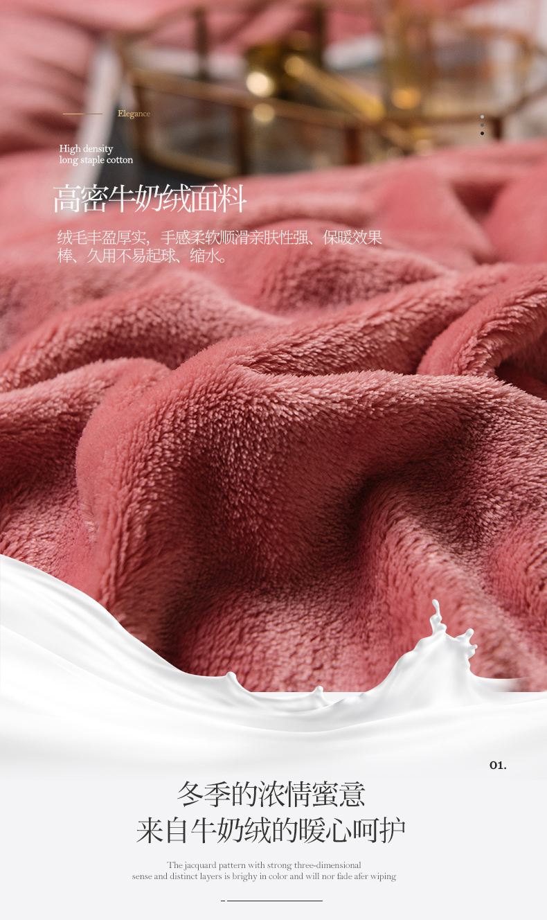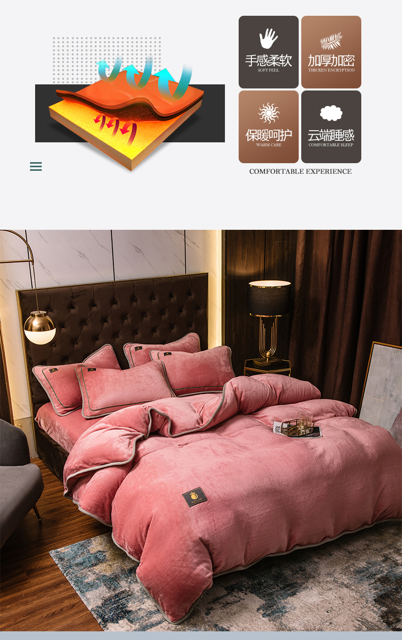 商品名称:宜代光年 2025新款加厚保暖纯色牛奶绒黑金四件套系列 胭脂红