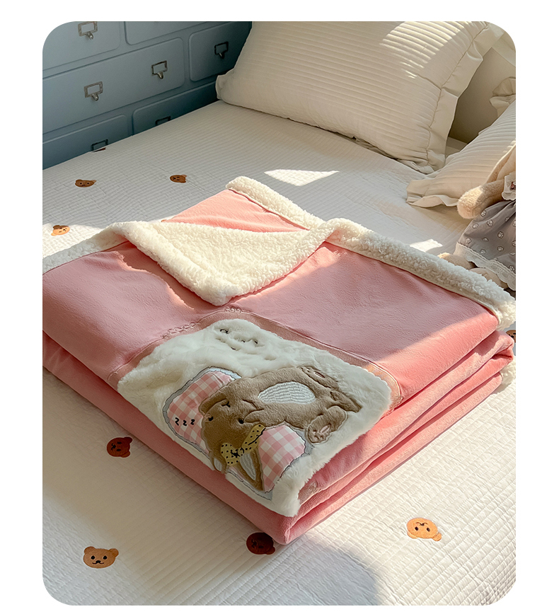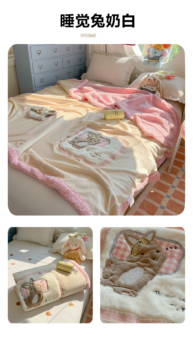 商品名称:(总)子钦家纺 2025新款秋冬加厚牛奶绒羊羔绒卡通贴布绣包边毛毯(第二波)
