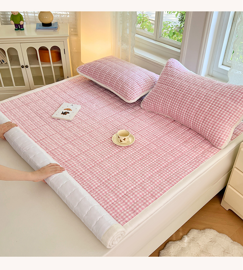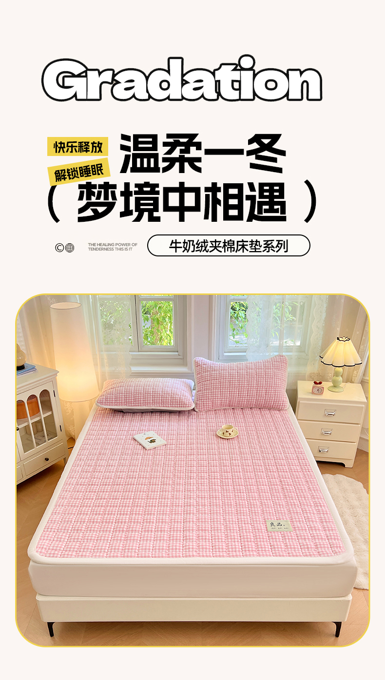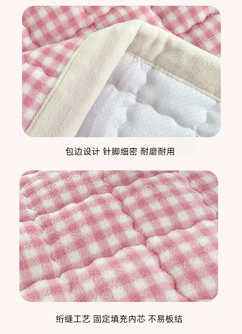 当前位置: 91家纺网 > 商品网购 > 床垫/床褥 > 普通床垫 > 三盛源 2025新款牛奶绒绗绣夹棉防滑保暖秋冬印花床护垫床褥绒床垫加厚高克重加宽包边 方格-玫瑰粉