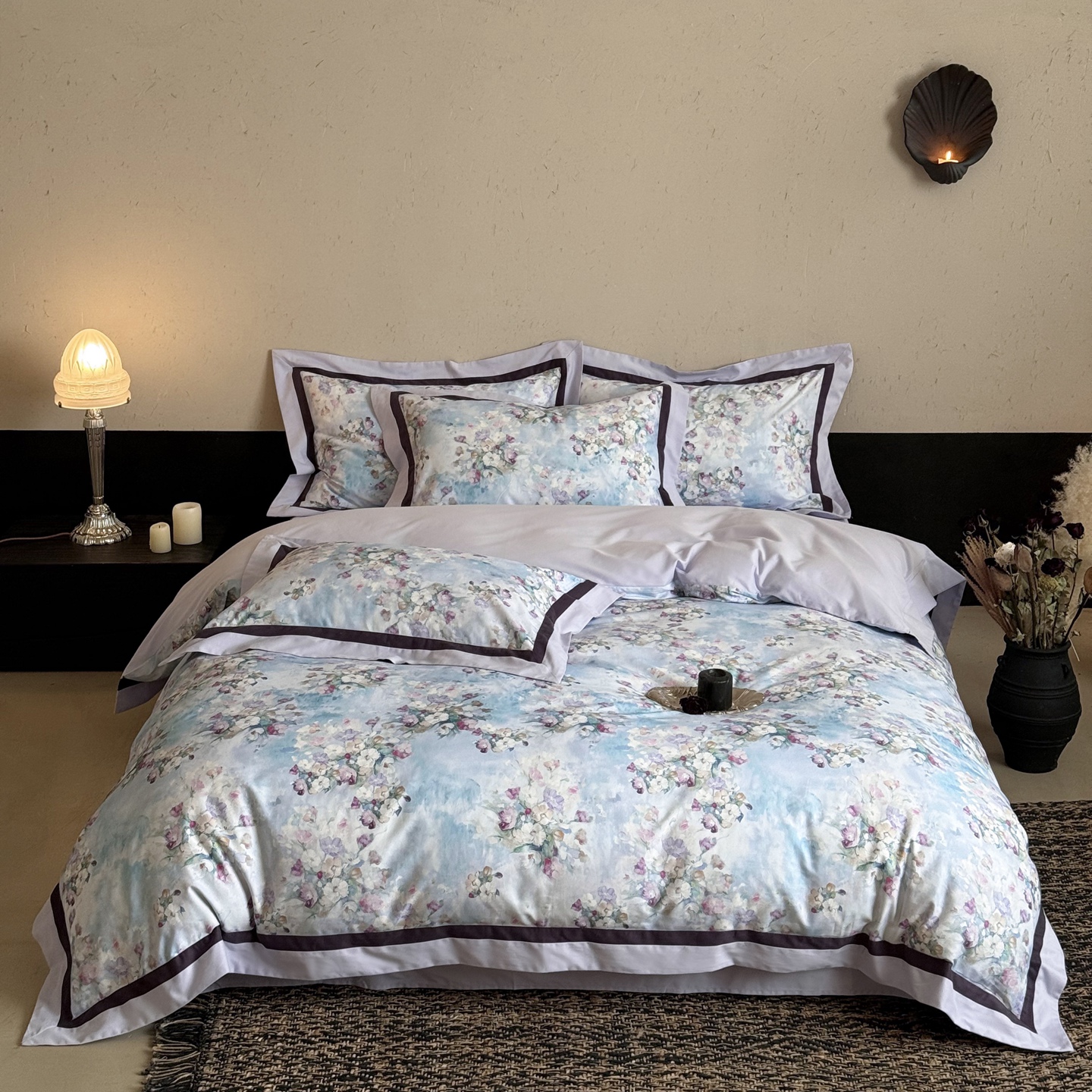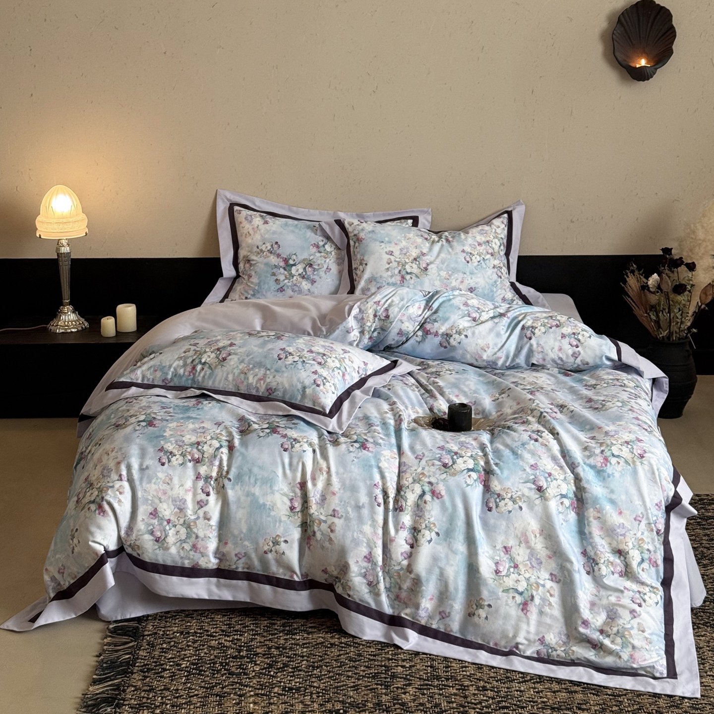 (总)多乐娜 2025年新款法式100S全棉纯棉贡缎数码印花四件套 欧若拉 场景图二,欧若拉