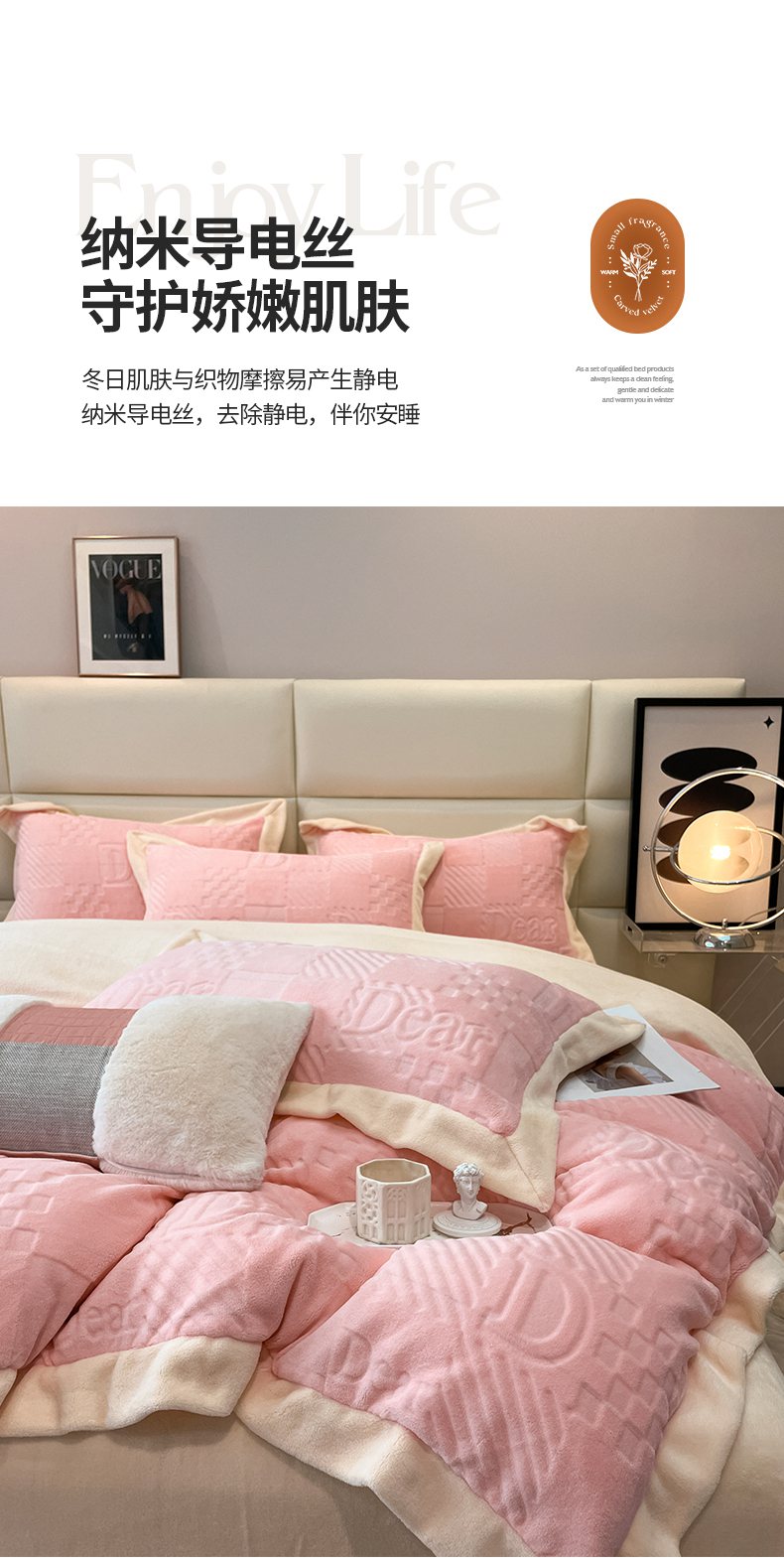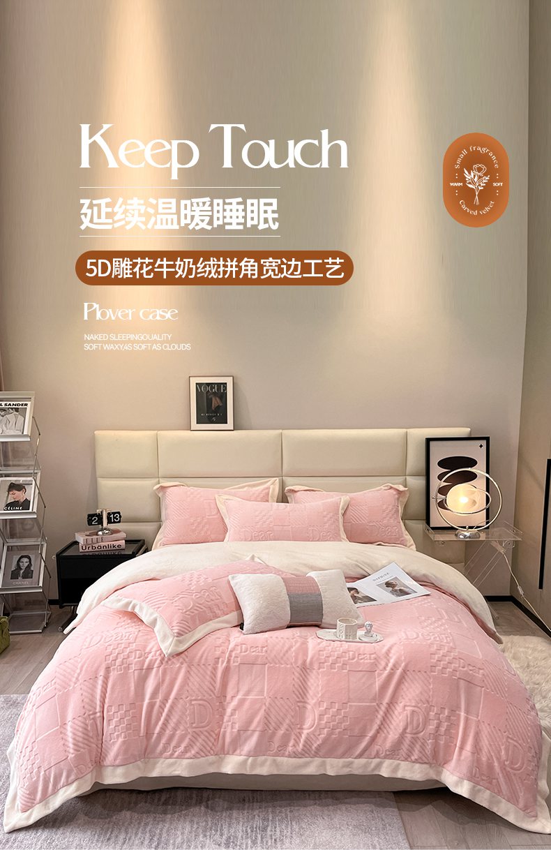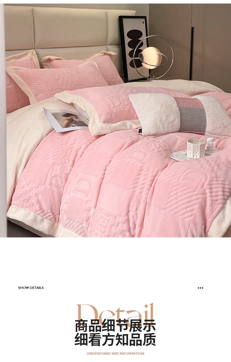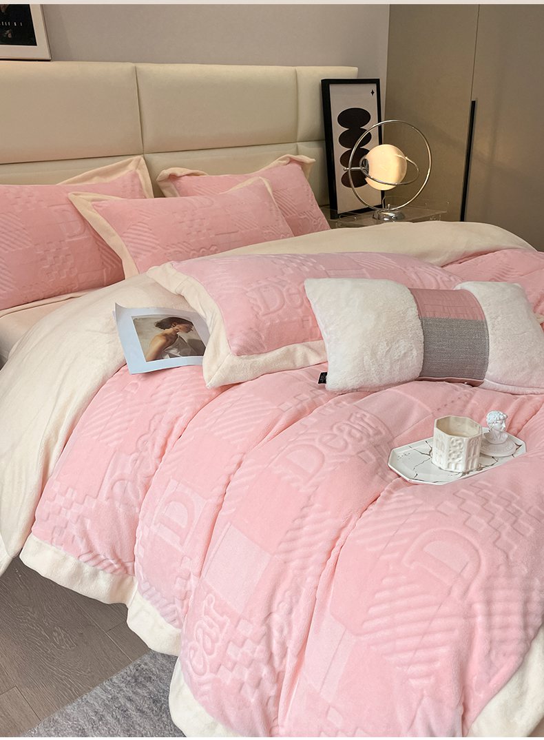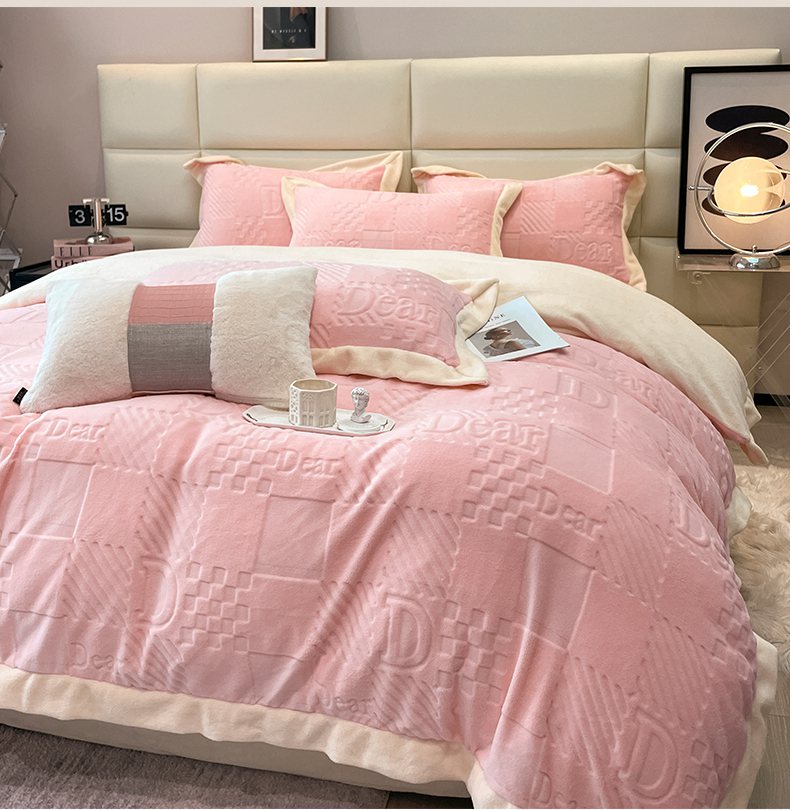 当前位置: 91家纺网 > 商品网购 > 床品套件 > 四件套 > 牛奶绒四件套 > 艾佳 2025新款5D雕花牛奶绒拼角宽边工艺四件套-唯爱系列 唯爱-蜜桃粉白