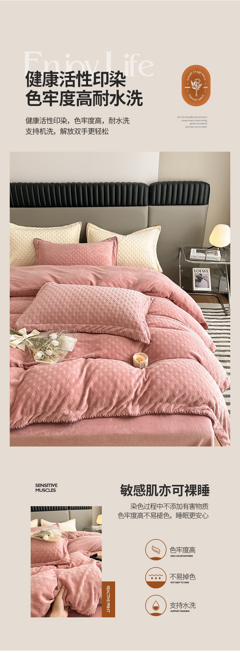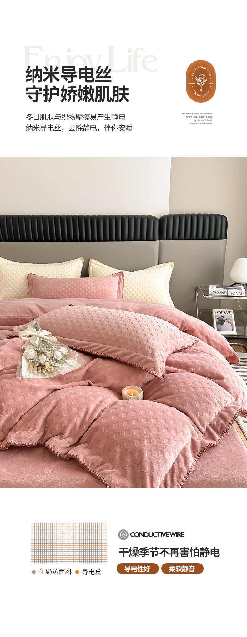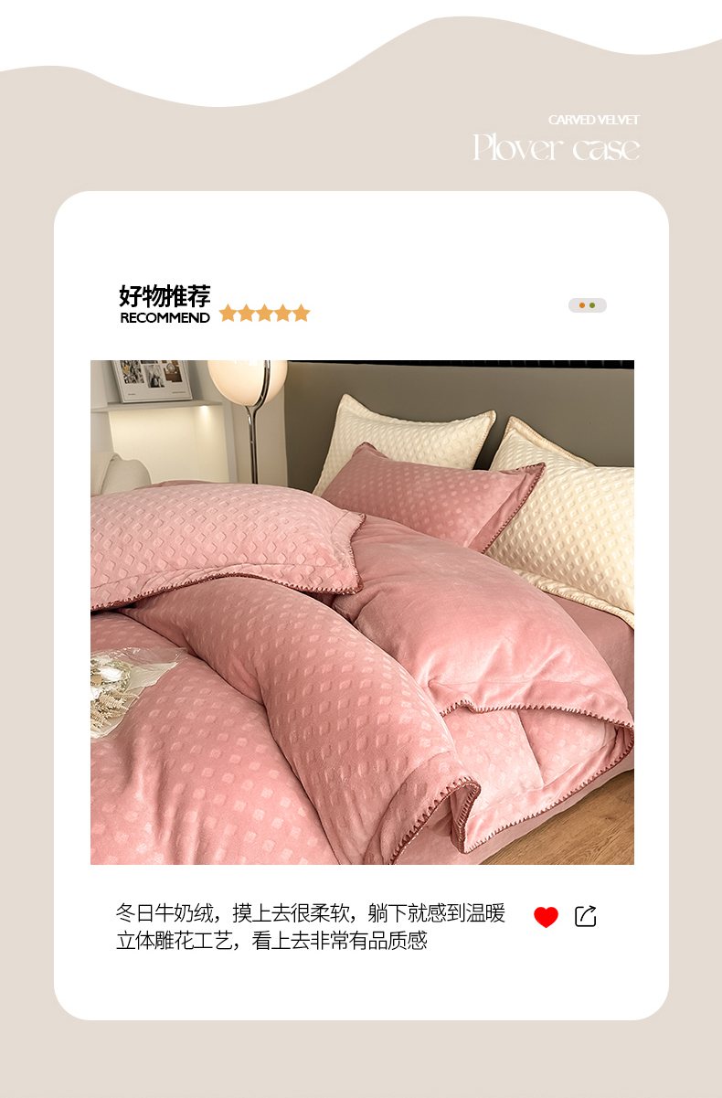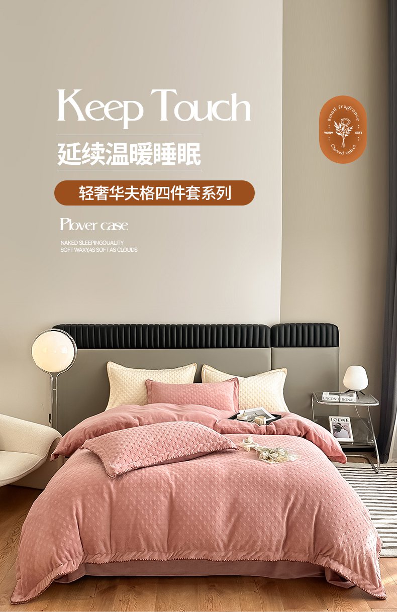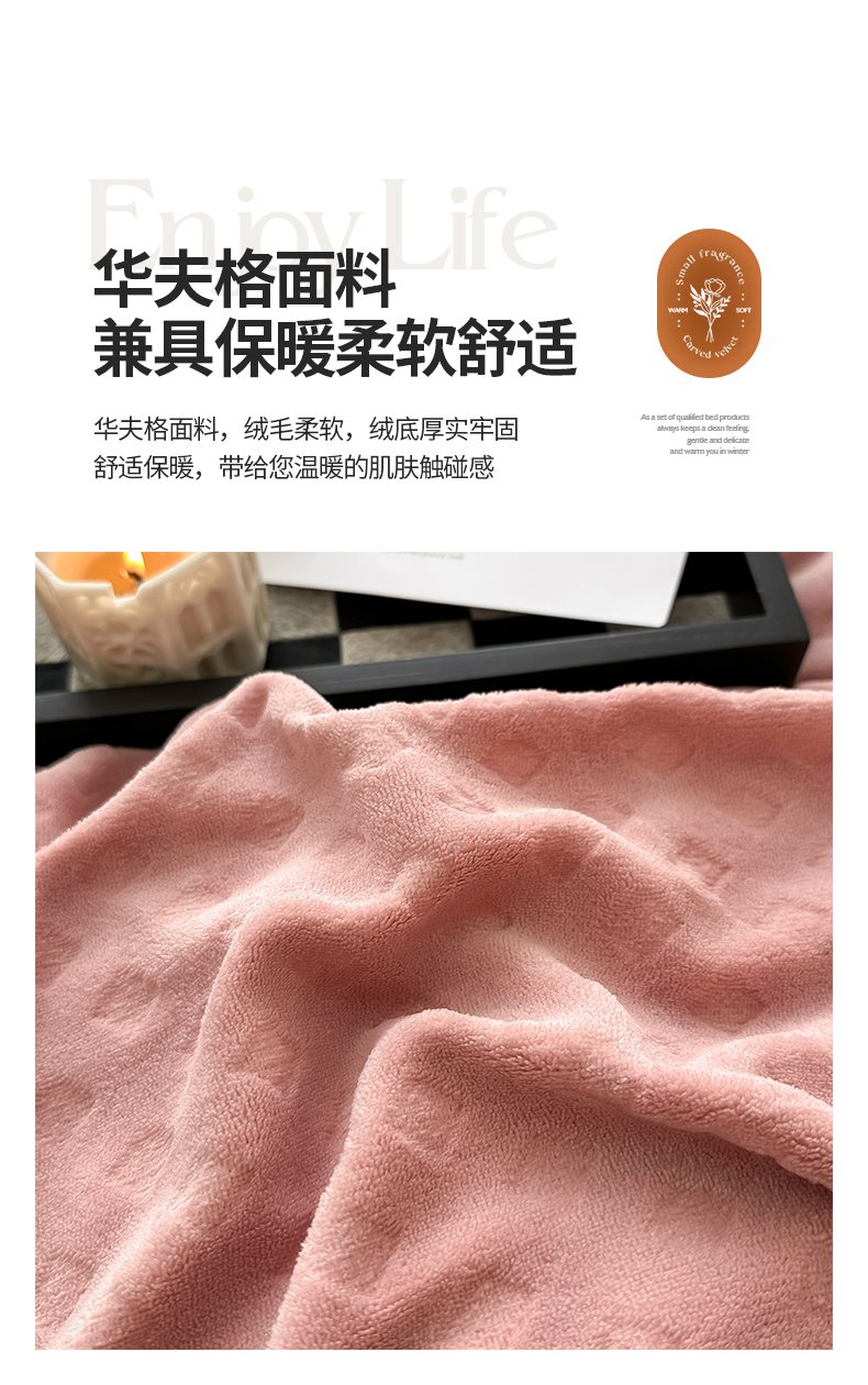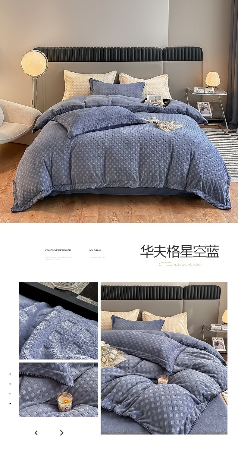 当前位置: 91家纺网 > 商品网购 > 床品套件 > 四件套 > 牛奶绒四件套 > 艾佳 2025新款华夫格高克重牛奶绒雕花三角贝壳边工艺加厚保暖四件套 华夫格藕粉