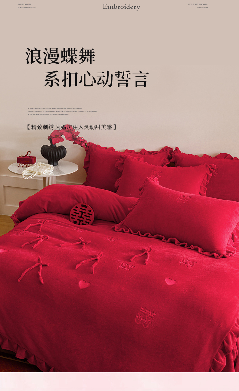 (总)苏源家居 2026 新款简单婚庆大红小logo刺绣结婚四件套,coco小姐,甜蜜蜜