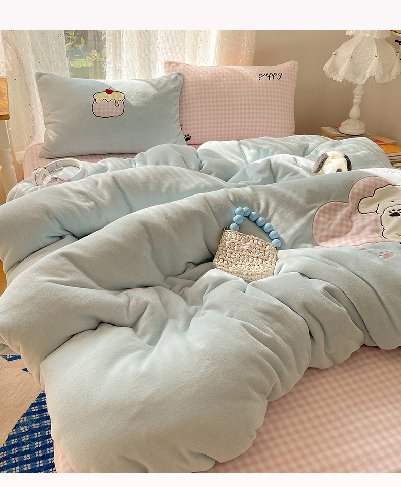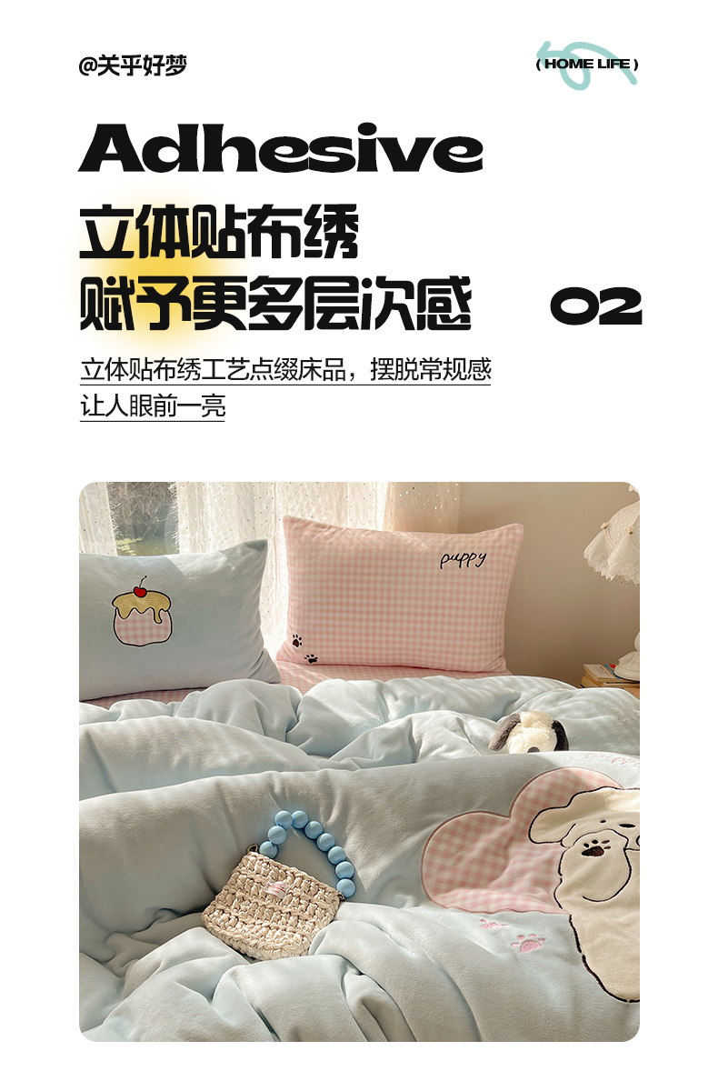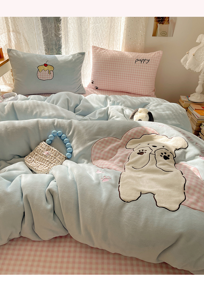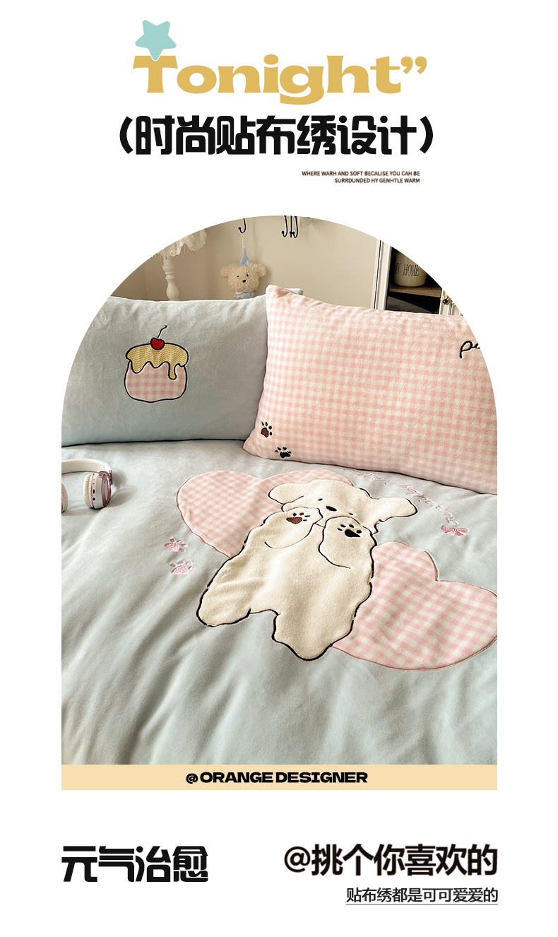 轻奢坊 2025新款牛奶绒ins可爱贴布绣四件套 爱心乖狗